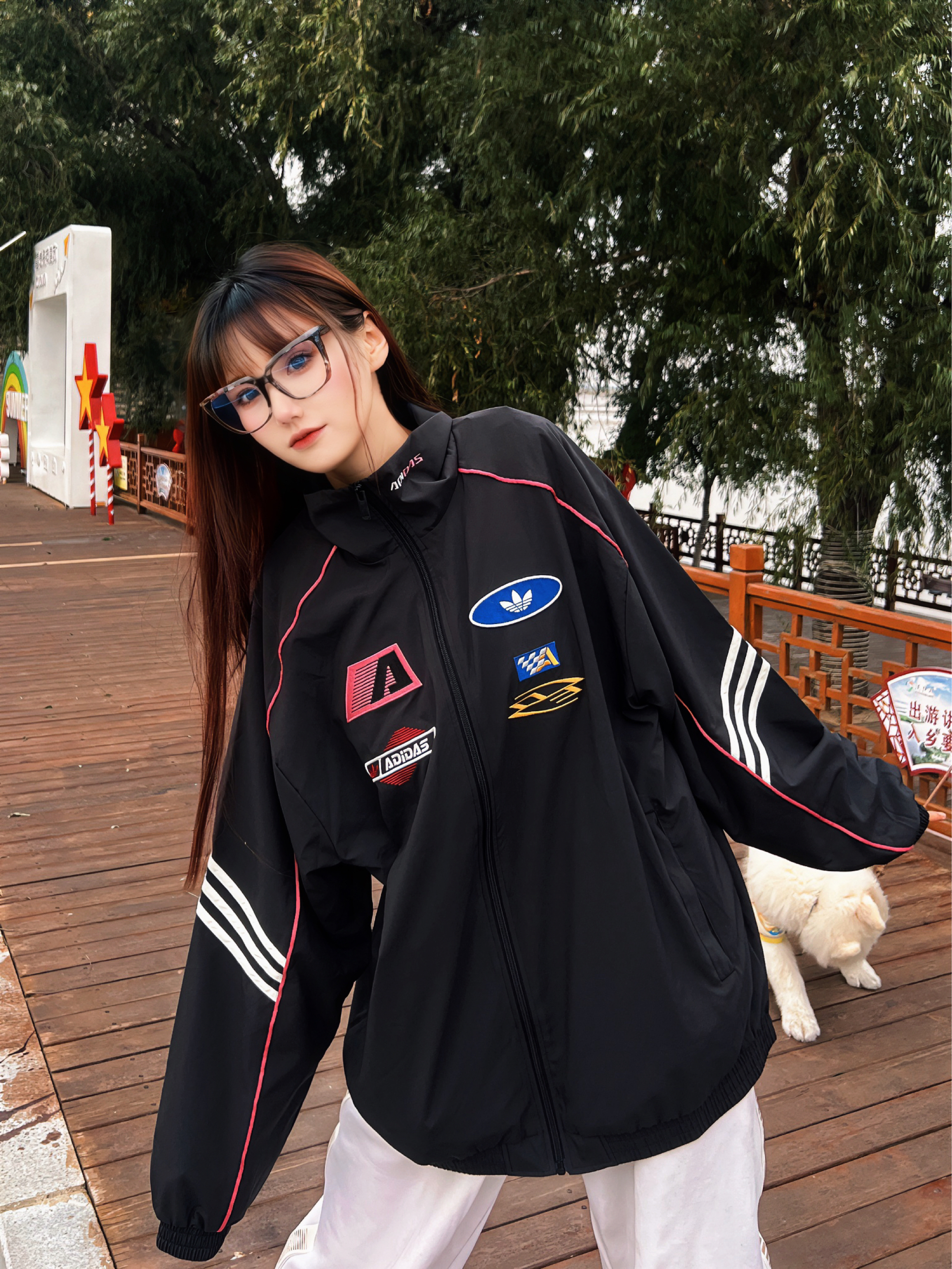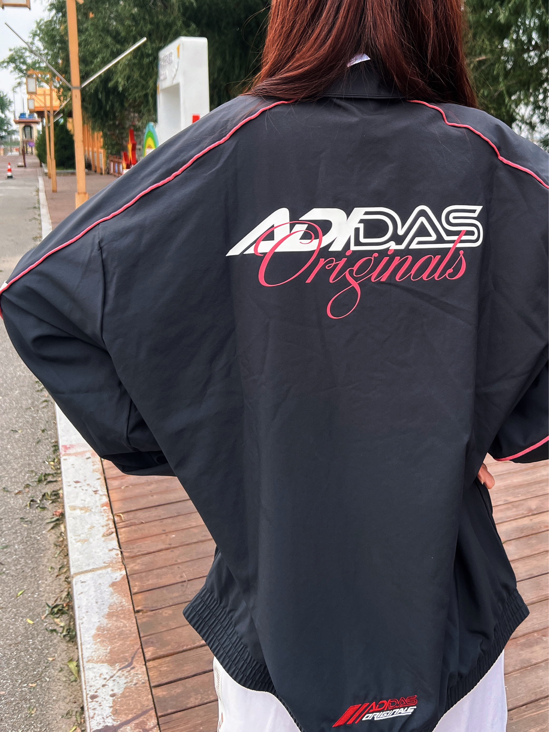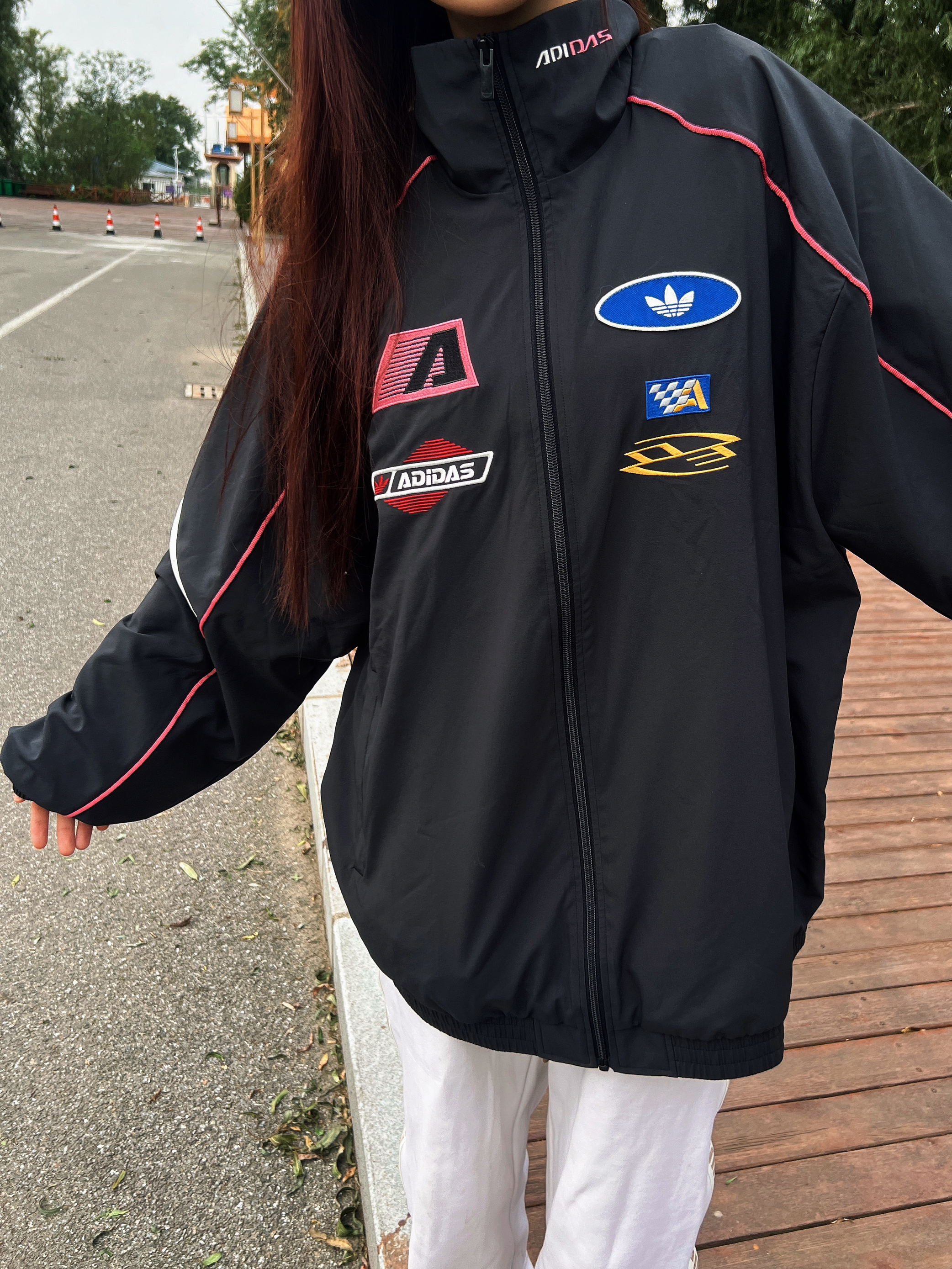 潮酷女孩出街必备! 这个赛车设计的夹克让我眼前一新 这件阿迪外套,多标设计超吸睛,黑红撞色+经典三道杠,复古又街头,宽松版型遮肉显瘦,日常出街、炸街穿搭都能hold住,穿上你就是潮流本流~