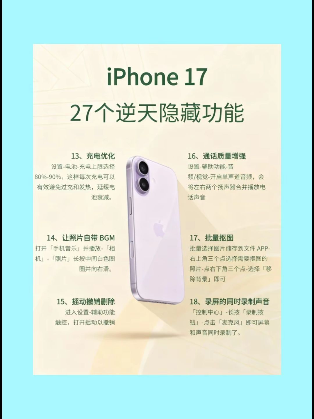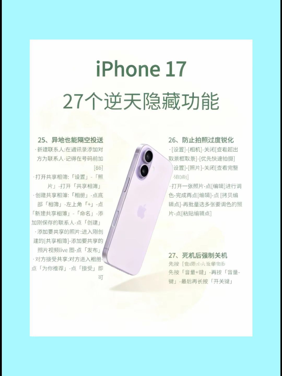 【iPhone17的27个逆天隐藏功能,你都知道吗❓】,由用户 你门家鳄鱼紫色的 分享,来自广东。这是一篇来自识货社区的真实用户分享笔记。