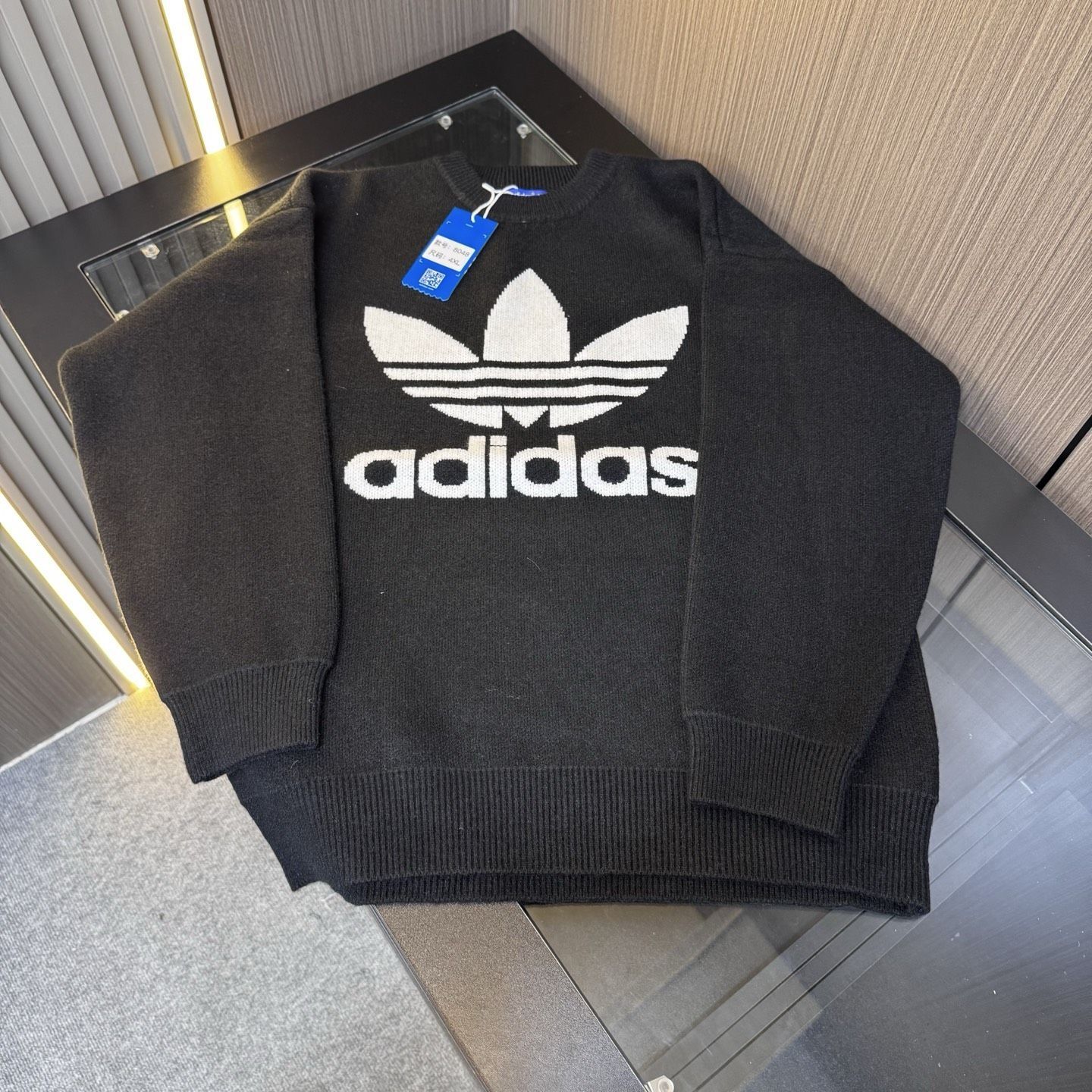 《秋冬复古风锁死!阿迪达斯三叶草大Logo毛衣,经典黑白配+重磅针织,潮人过冬的氛围感神器!》