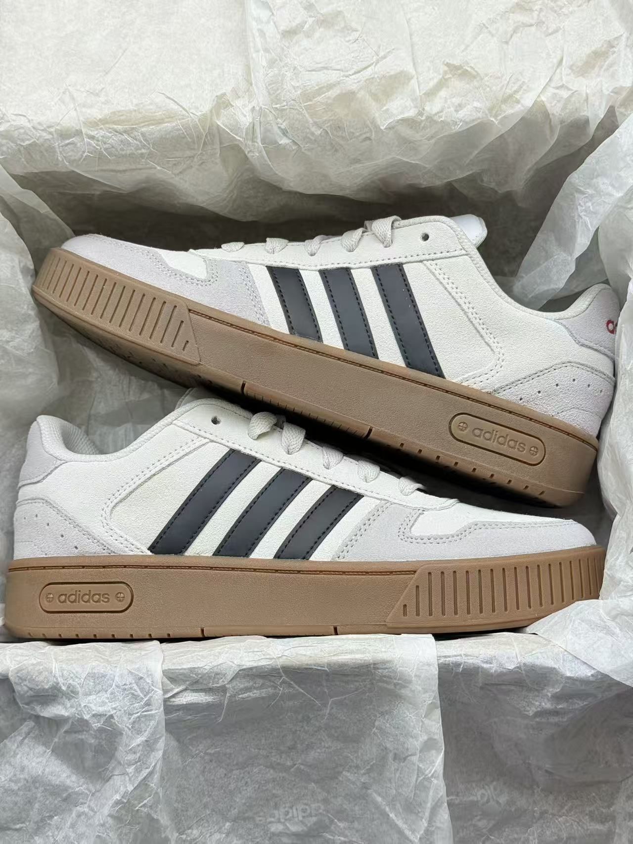这双阿迪达斯的复古款鞋,到手穿了小半个月,来聊聊真实感受。 先说穿着体验,麂皮材质摸着挺有质感,但也挺娇贵,稍微蹭一下就容易留痕迹,得经常打理,这点还挺让人头疼的😅。鞋底的脚感吧,不算特别软,长时间走路的话,脚后跟会有点累,不像那些专门的缓震跑鞋那么舒服。 不过它的复古造型是真的很戳人,搭配牛仔裤或者休闲裤都很有风格,走在街上不容易撞款。尺码倒是挺标准的,按平时的码数买就可以,不用特意选大...