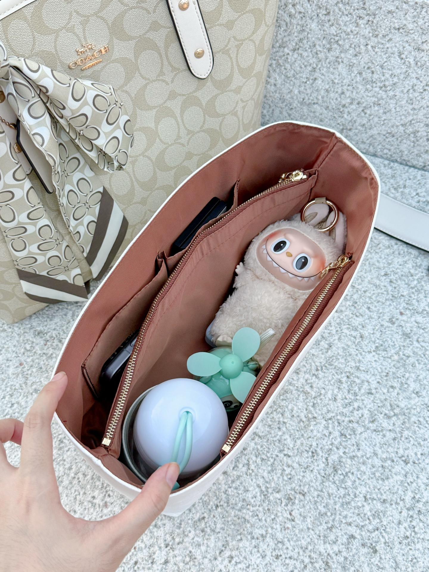 我发现这个包改造下实用性能翻倍!加个内胆后,东西分类放不会乱,还能固定咖啡奶茶,日常出门带饮品方便多啦~配个肩托,背久了肩膀也没那么累。再绑条丝巾,气质一下就上来了✨ 不过它本身没夹层,东西多了确实得靠内胆规整。国庆出游背它,装得下杂物还很有风格,平时通勤也合适,算是我挖到的秋日松弛感搭配好物啦~#匠心手工坊 #我的百搭神包 #秋日松弛背身上 #普通女孩的第一个轻奢包包 #国庆节出游好包 图...
