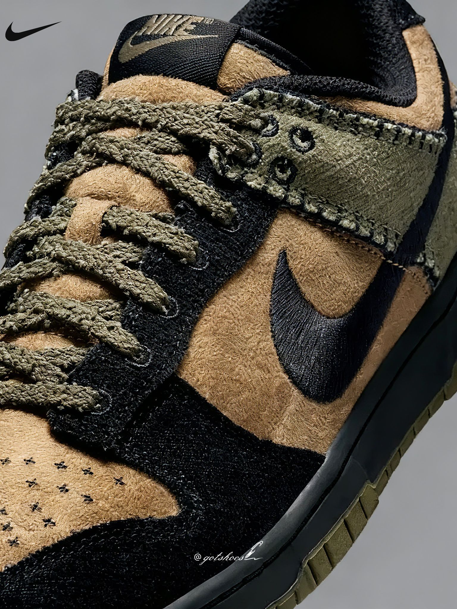 Nike Dunk Low 万圣节档期惊喜连连!在“巫师”配色惊艳亮相后,一位酷似“科学怪人”的新成员也火速加入战局。新品在细节上诚意十足,帆布与麂皮的质感碰撞,加上鞋头十字孔与鞋帮撕裂缝线的呼应设计,直接将怪诞诡异的氛围拉满。锁定十月底,敬请期待它的正式登场! 你觉得这双万圣节Dunk的设计细节中哪个最戳你?评论区让我看看