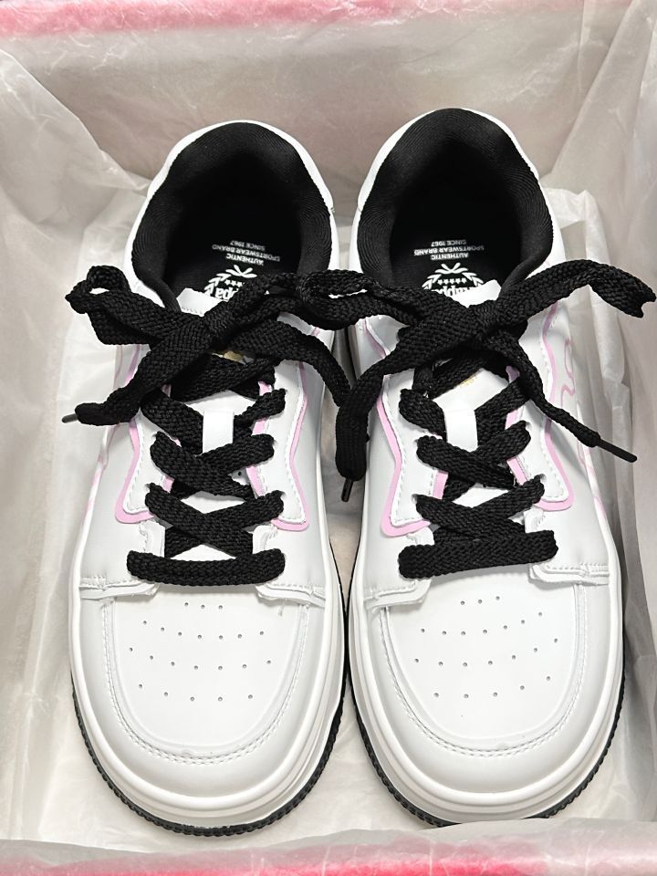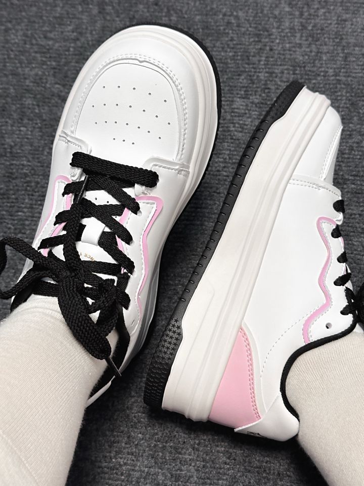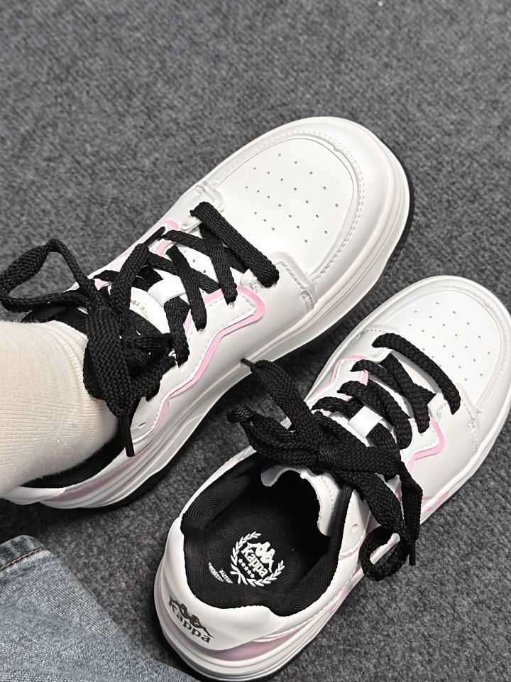 宝子们快看!Kappa这双粉白配色的鞋也太绝了🥳 粉粉嫩嫩超有少女感,厚底还能悄悄增高,秒变“大长腿”~ 皮质质感拉满,上脚舒服又好看,搭配袜子简直是甜妹天菜,家人们闭眼冲就完事!