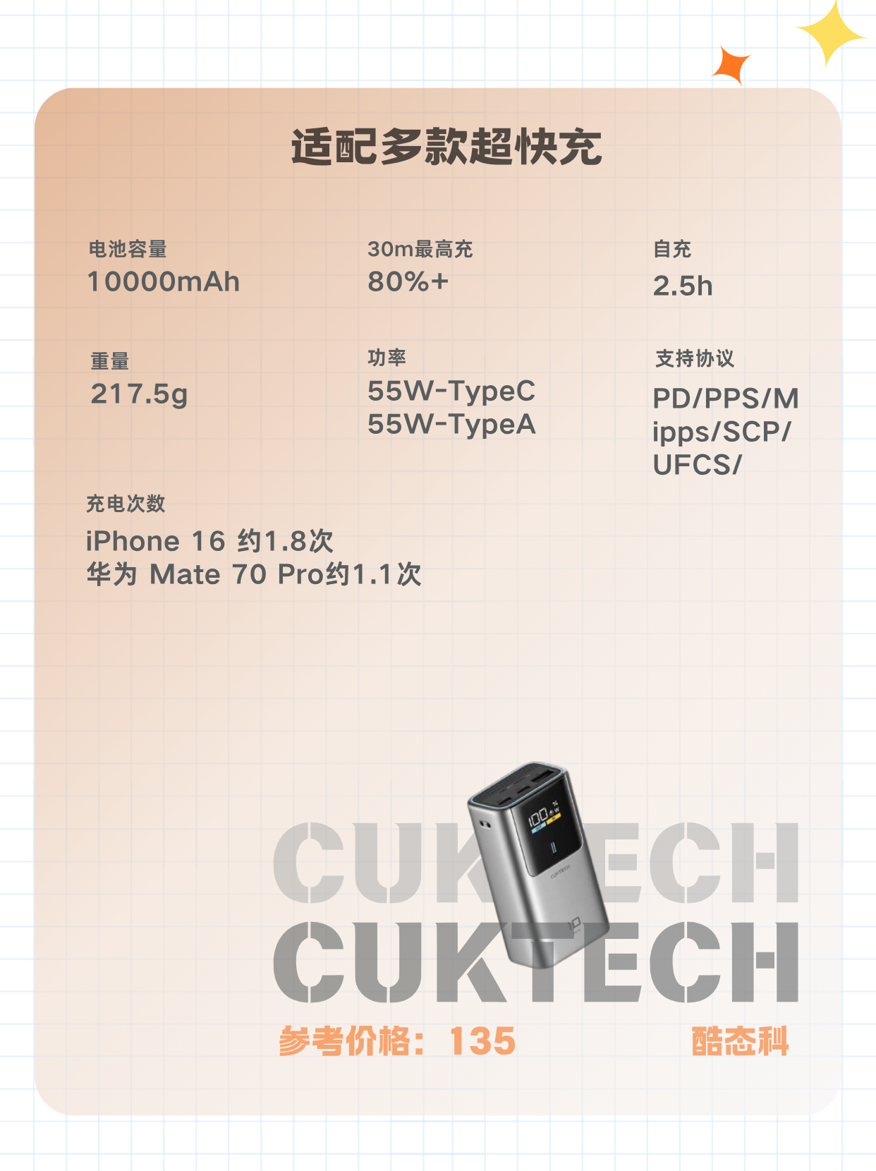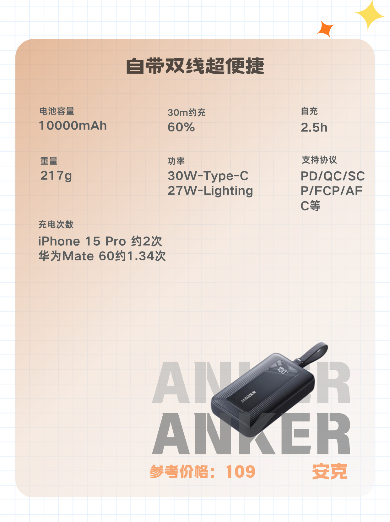 本篇笔记关联了CUKTECH/酷态科 10号超级电能充mini 120W 氮化镓充电器 双口大功率 跨品牌兼容 适用苹果17小米华为手机/笔记本 AD1203P 灰色、Anker/安克 A1688 10000mAh 30W 自带双线 移动电源 柔软编织线 大容量 便携 快充 小巧 苹果认证 可上飞机 环保材料 智能控温 暗夜黑等商品,为用户提供真实的使用体验和购买参考。