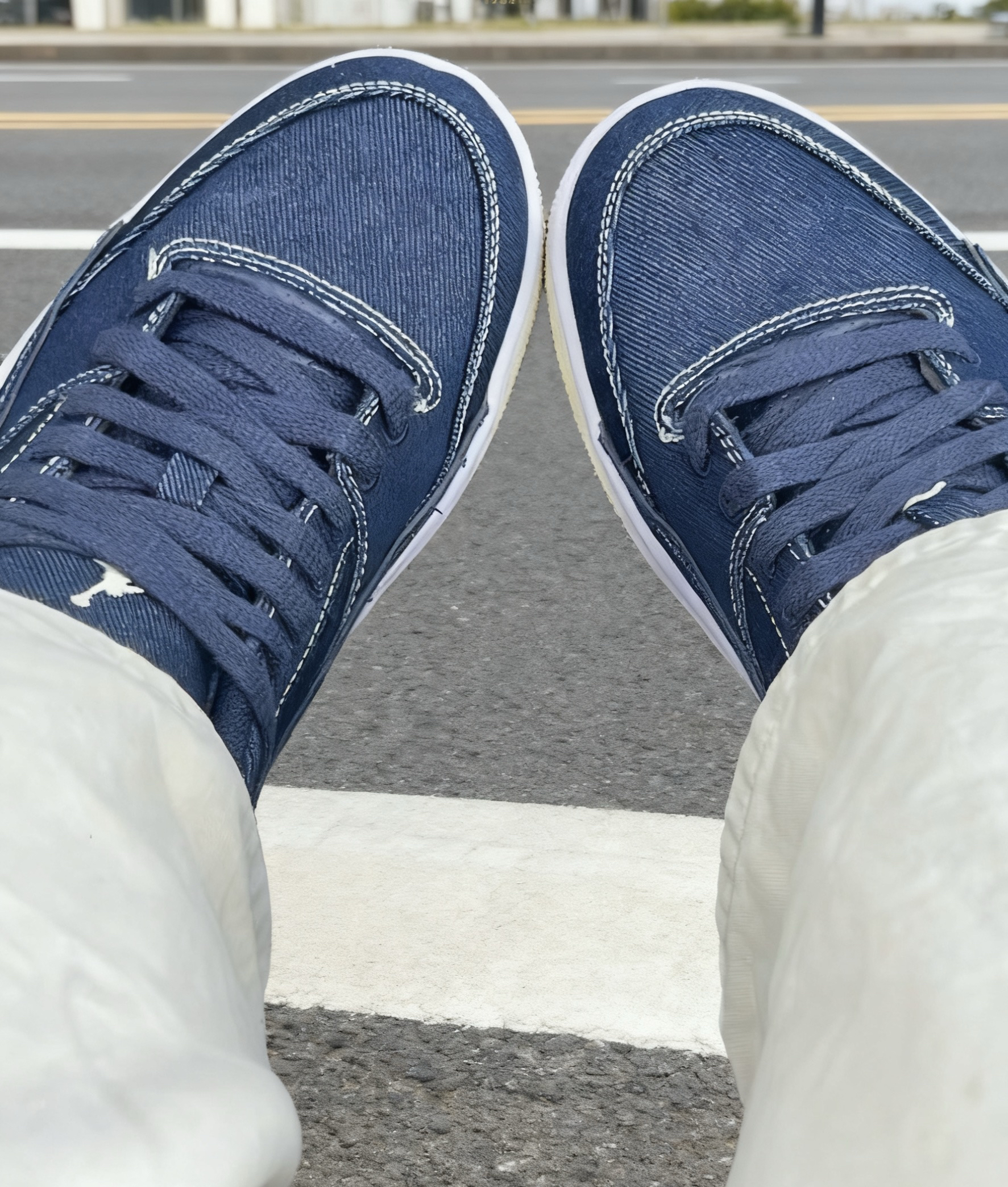 分享这双牛仔蓝的AJ,外观太对我胃口了!牛仔布料的鞋面,带着复古质感,缝线细节也很精致,整体色调低调又有层次。上脚试了下,脚感舒适,走路久了也不会累。搭配方面,不管是牛仔裤还是休闲裤都能轻松驾驭,日常出街或者和朋友约着逛,穿它都很合适,属于那种百搭又耐看的款~