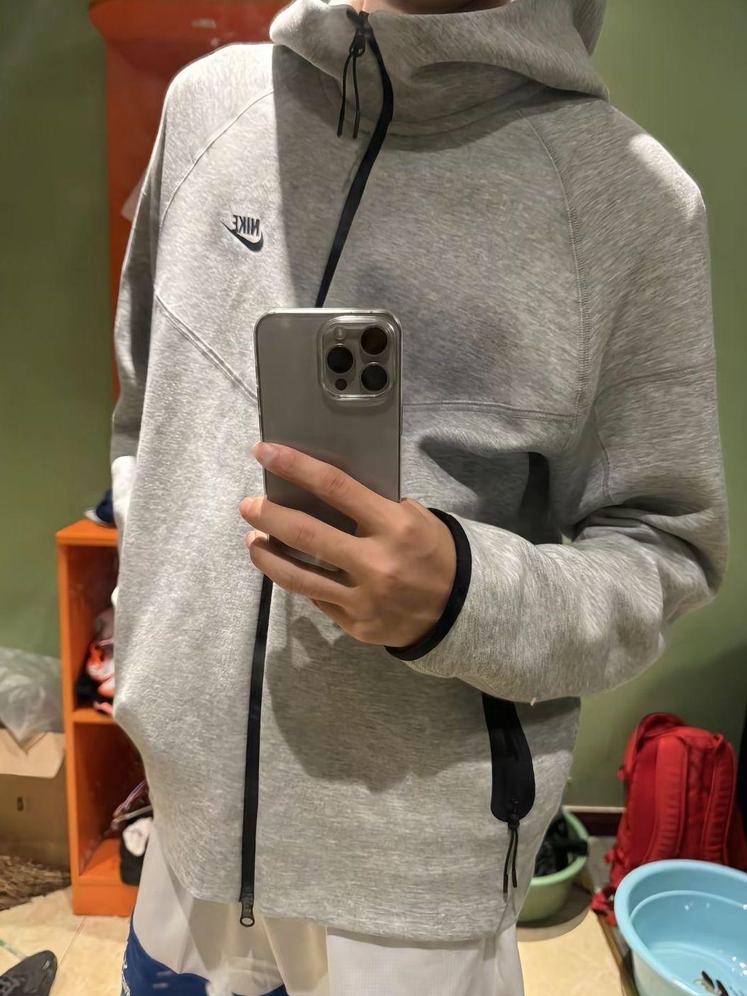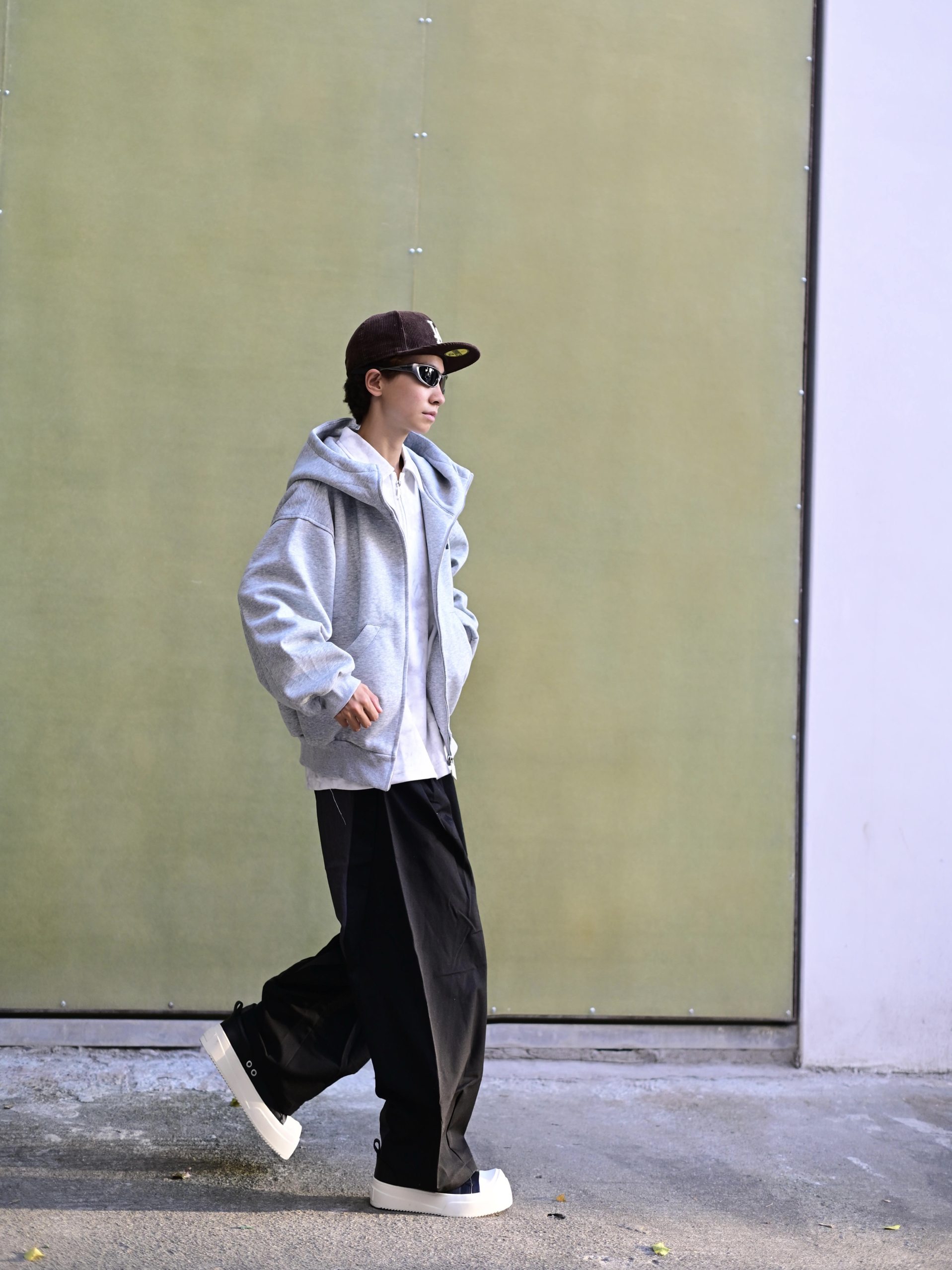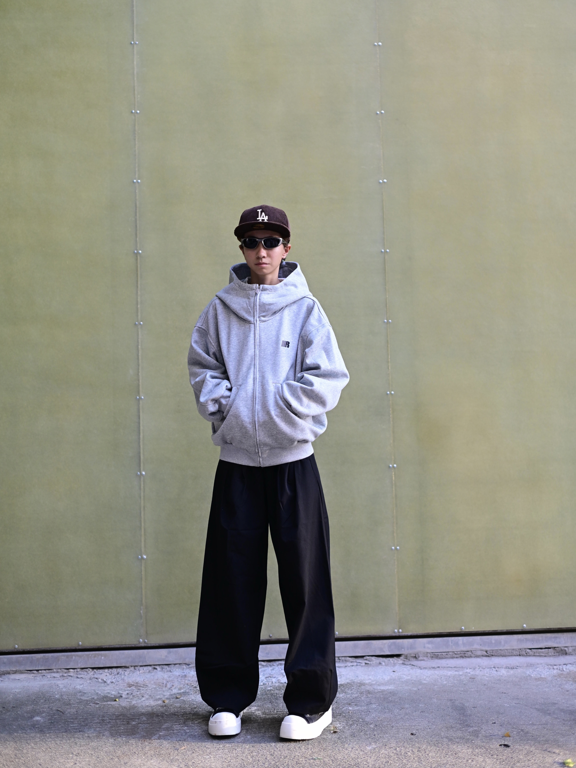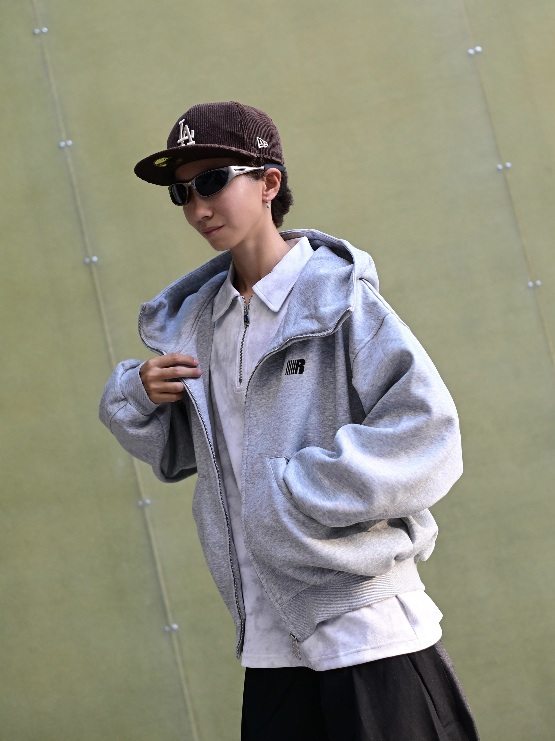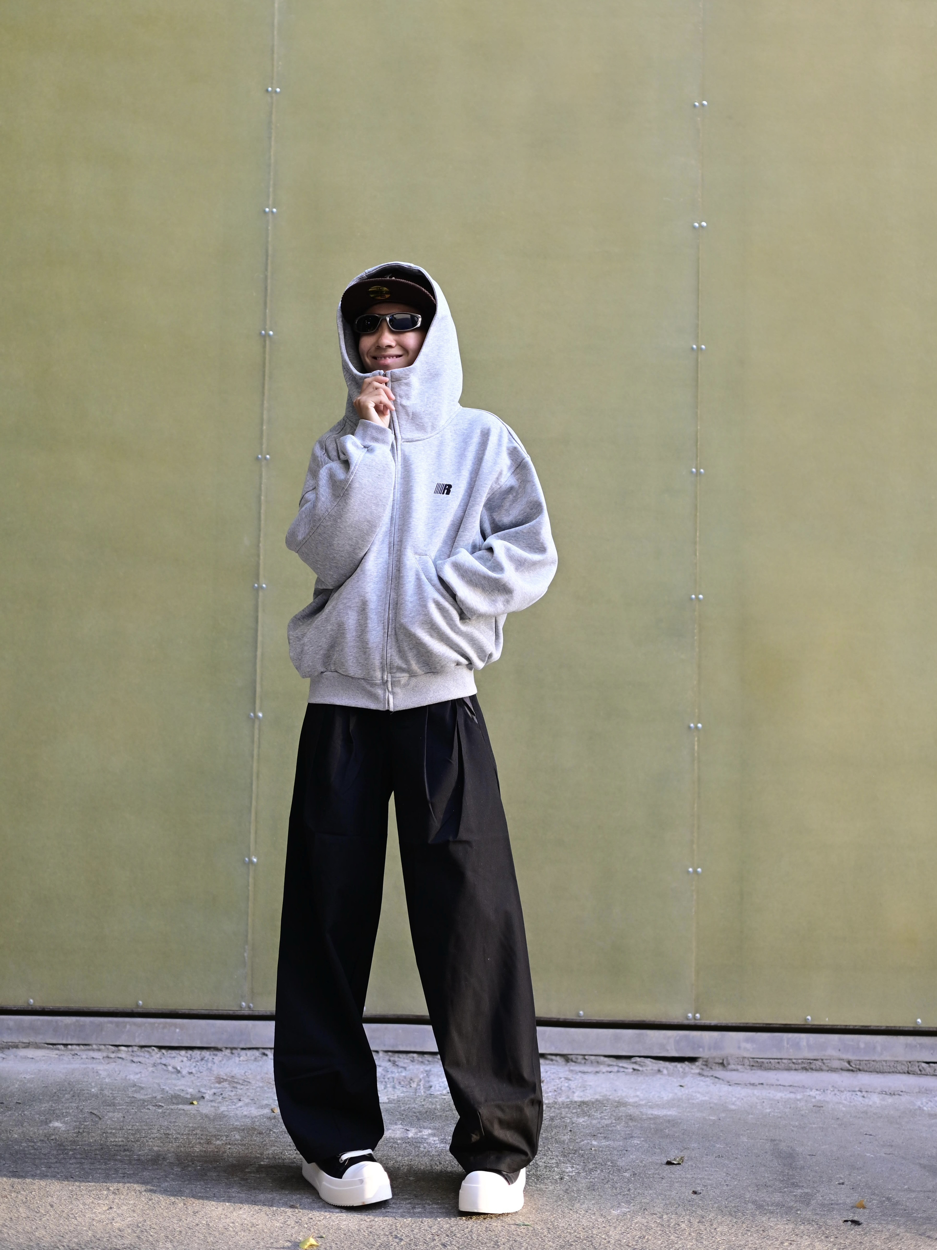 172CM|55KG 👔:m👖:m|👟:39 滴滴滴 今日份潮流感穿搭来咯 上身降温必备的FDR白色卫衣外套来了!✨空气层加厚技术让保暖不显臃肿,R字logo简约有辨识度。 奶白色调自带打光效果 秋冬穿不沉闷 连帽设计增加街头感 单穿+黑色西装裤+板鞋,打造Cityboy!