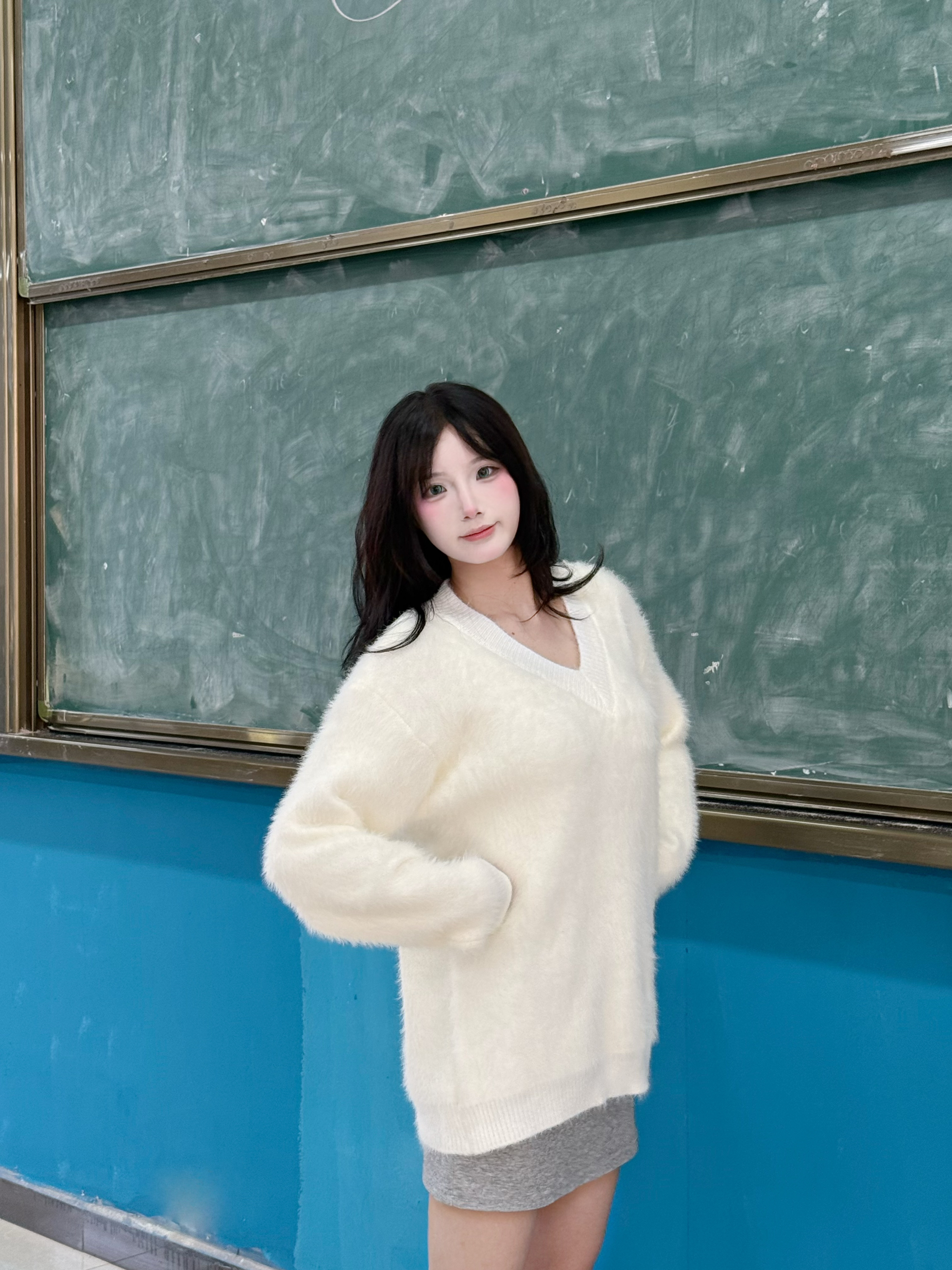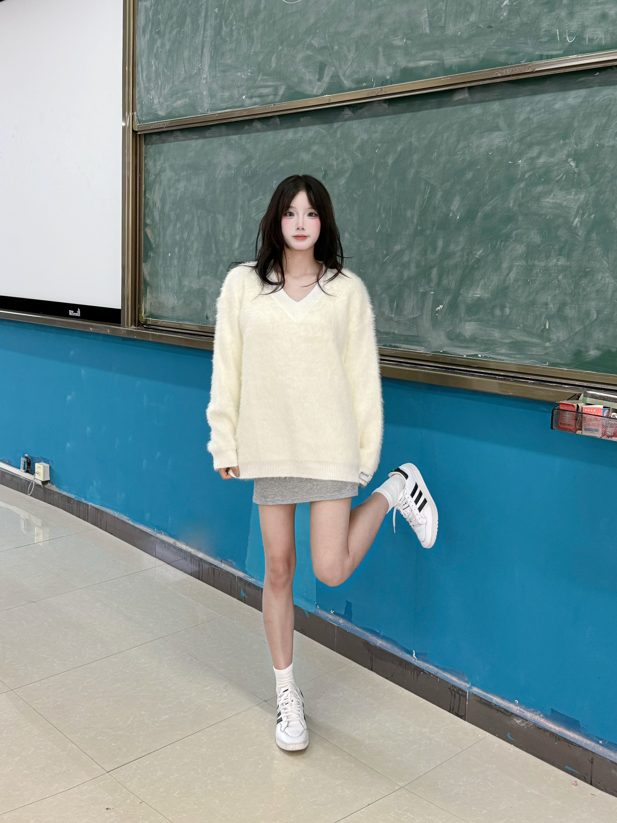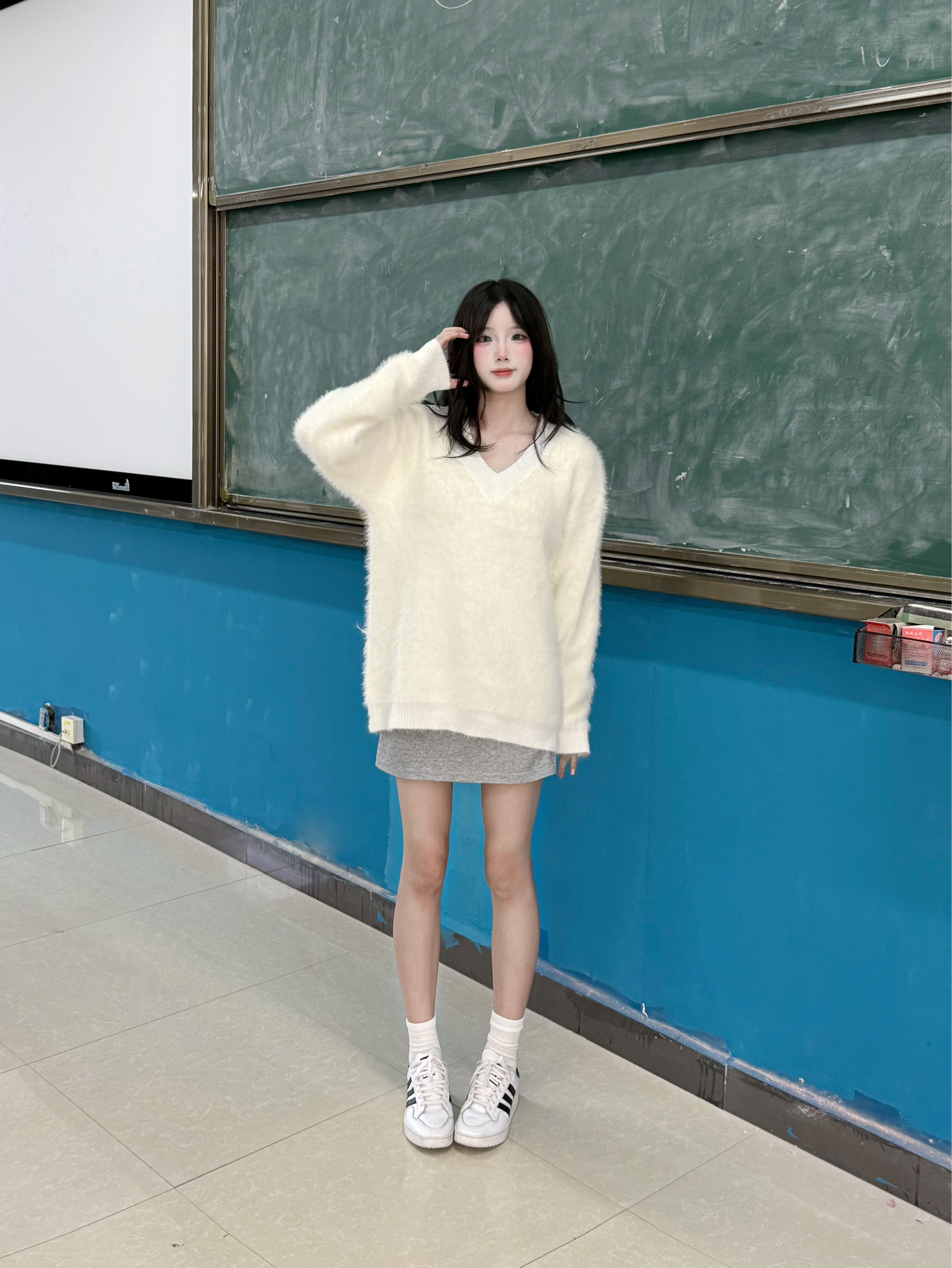 今天穿什么 今天穿 白色毛衣 ➕ 灰色短裙 今日份秋日甜美穿搭 ☆*:.。. o(≧▽≦)o .。.:*☆ 秋冬氛围感神衣呢嘿嘿 160/90穿的m