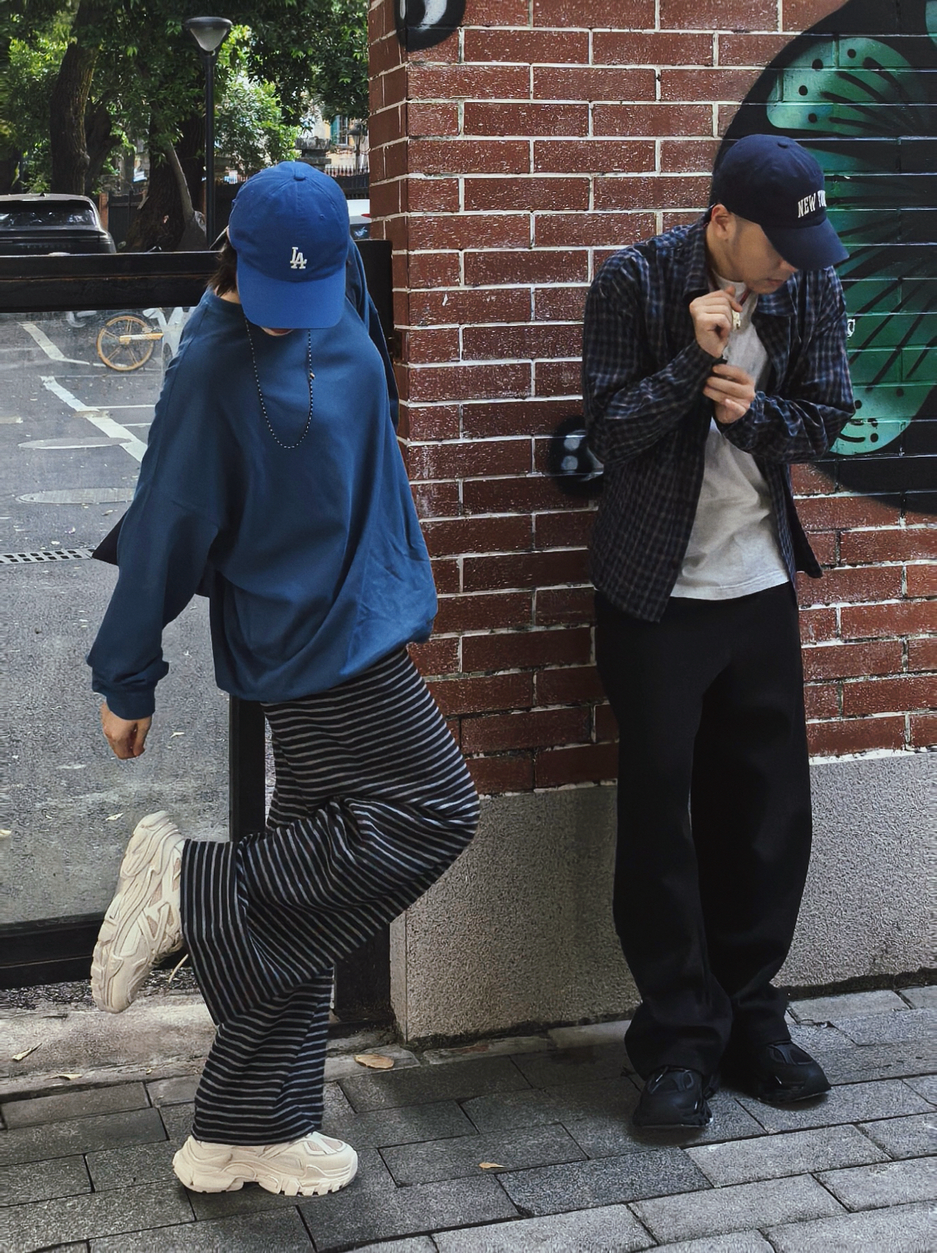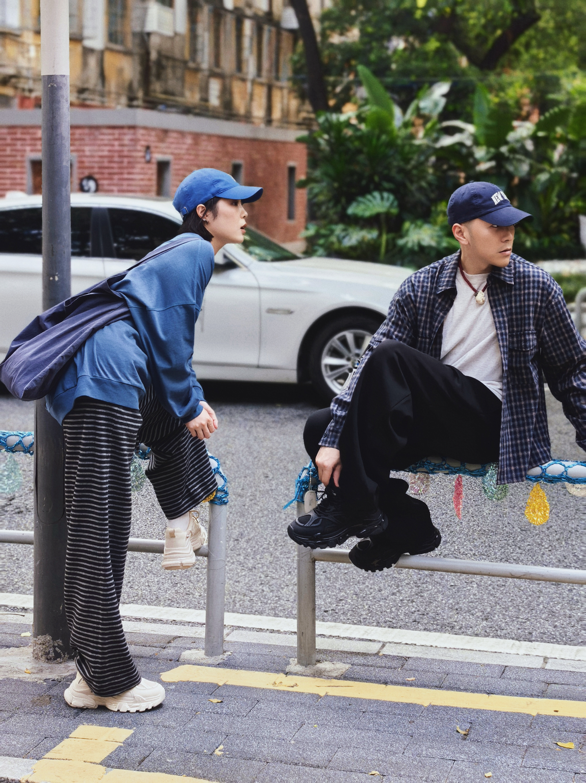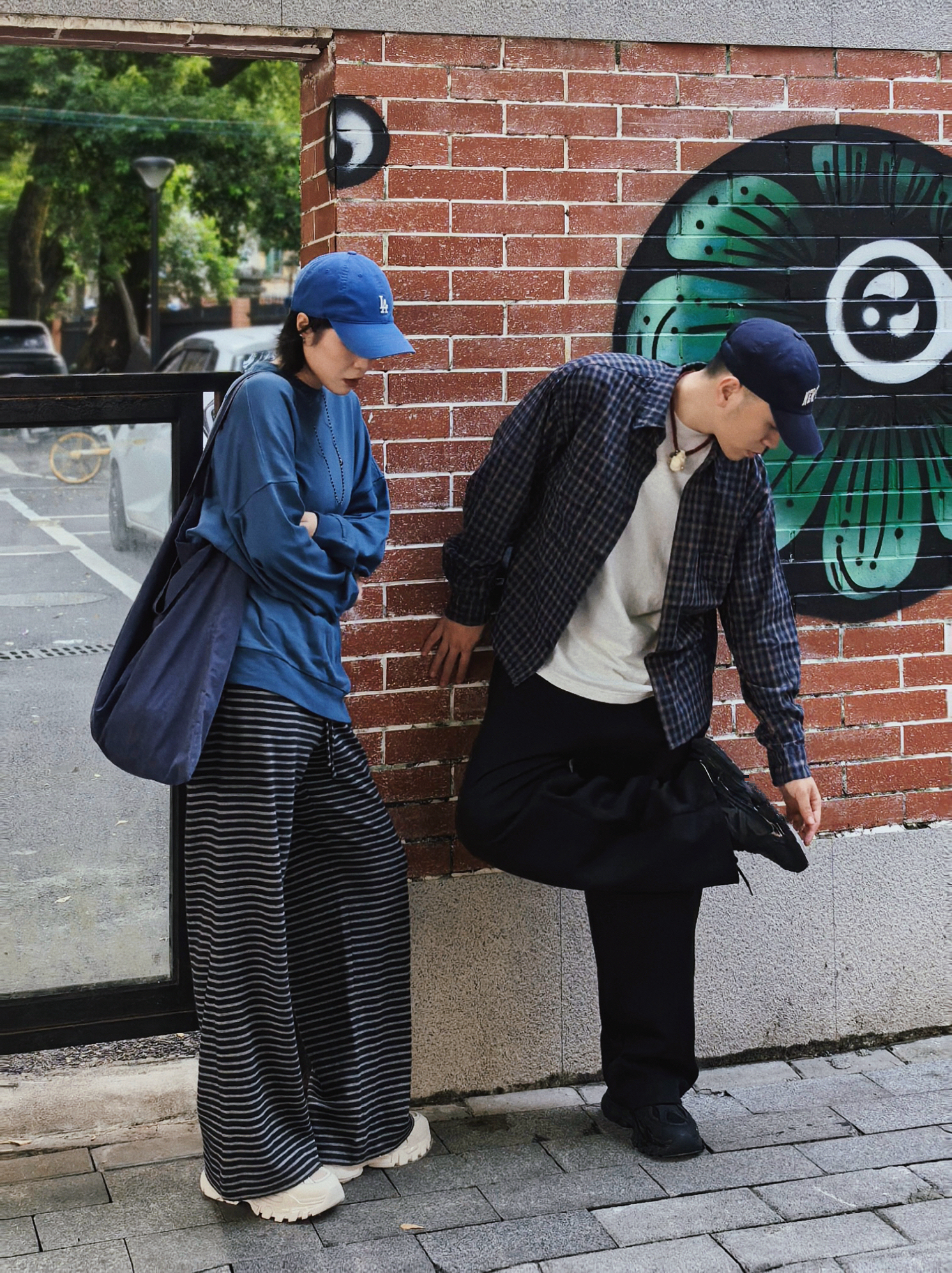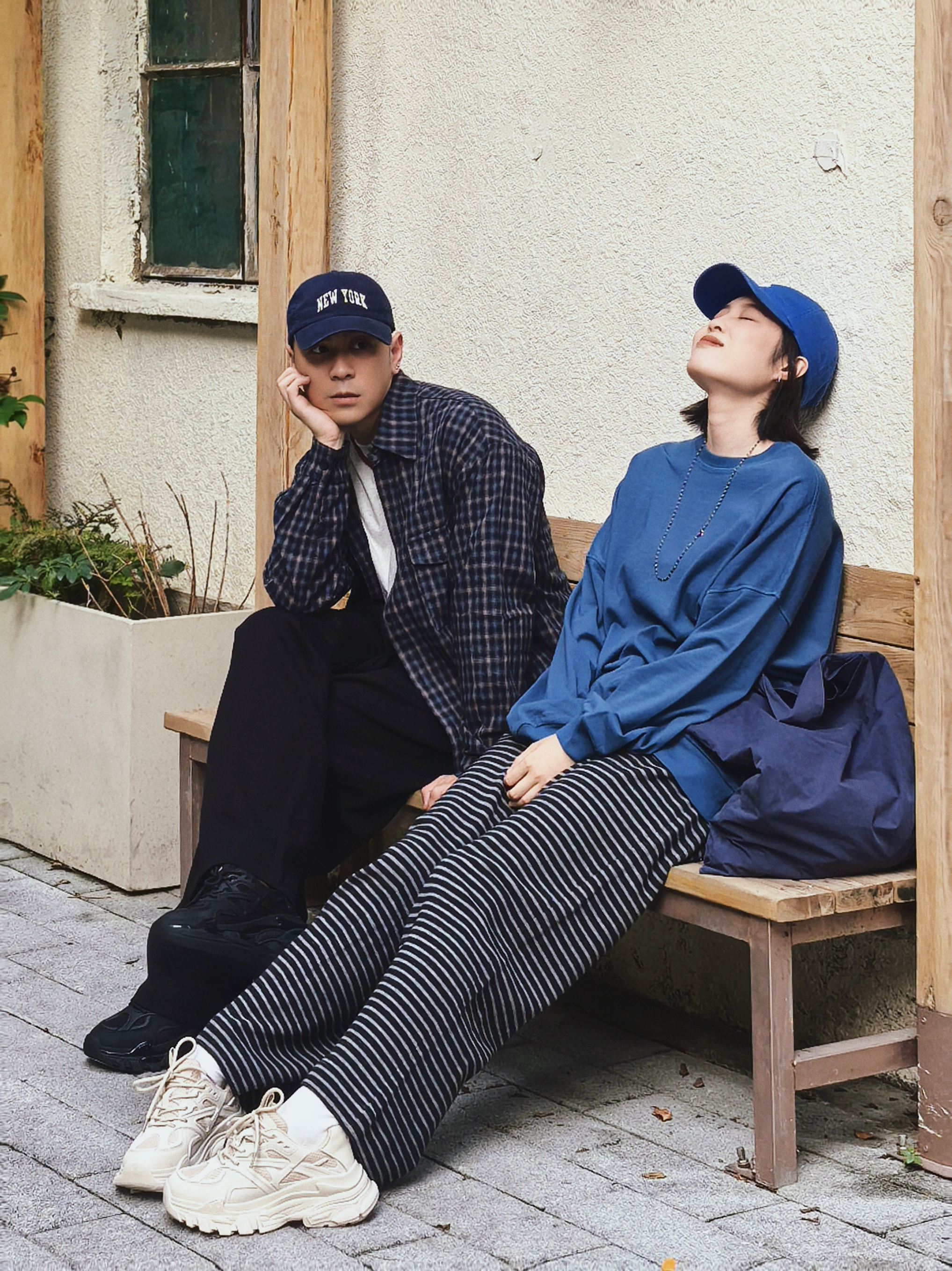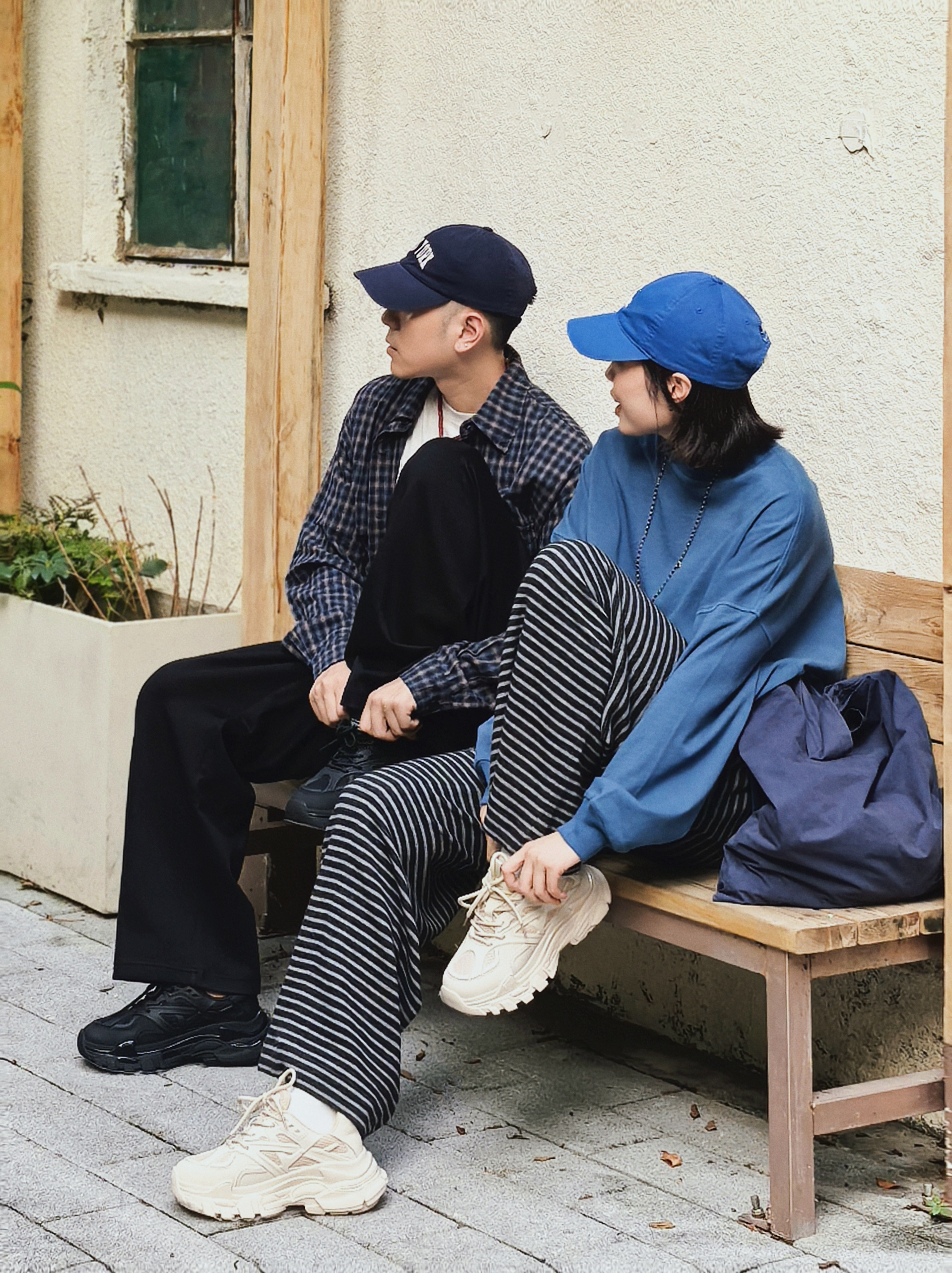情侣的爱情日常要松弛✌️ 恋爱的日常里总要藏点浪漫的气息 💗 不需要刻意的浪漫 例如一样的口味一样的默契一样的爱好一样的配饰😎 就像今天的我们👫 蓝色和黑色格子和条纹 百搭又增高的复古的老爹鞋👟 站一起哪里都贴着情侣的标签🏷️ 这不用刻意这是属于我们松弛的浪漫大片📷