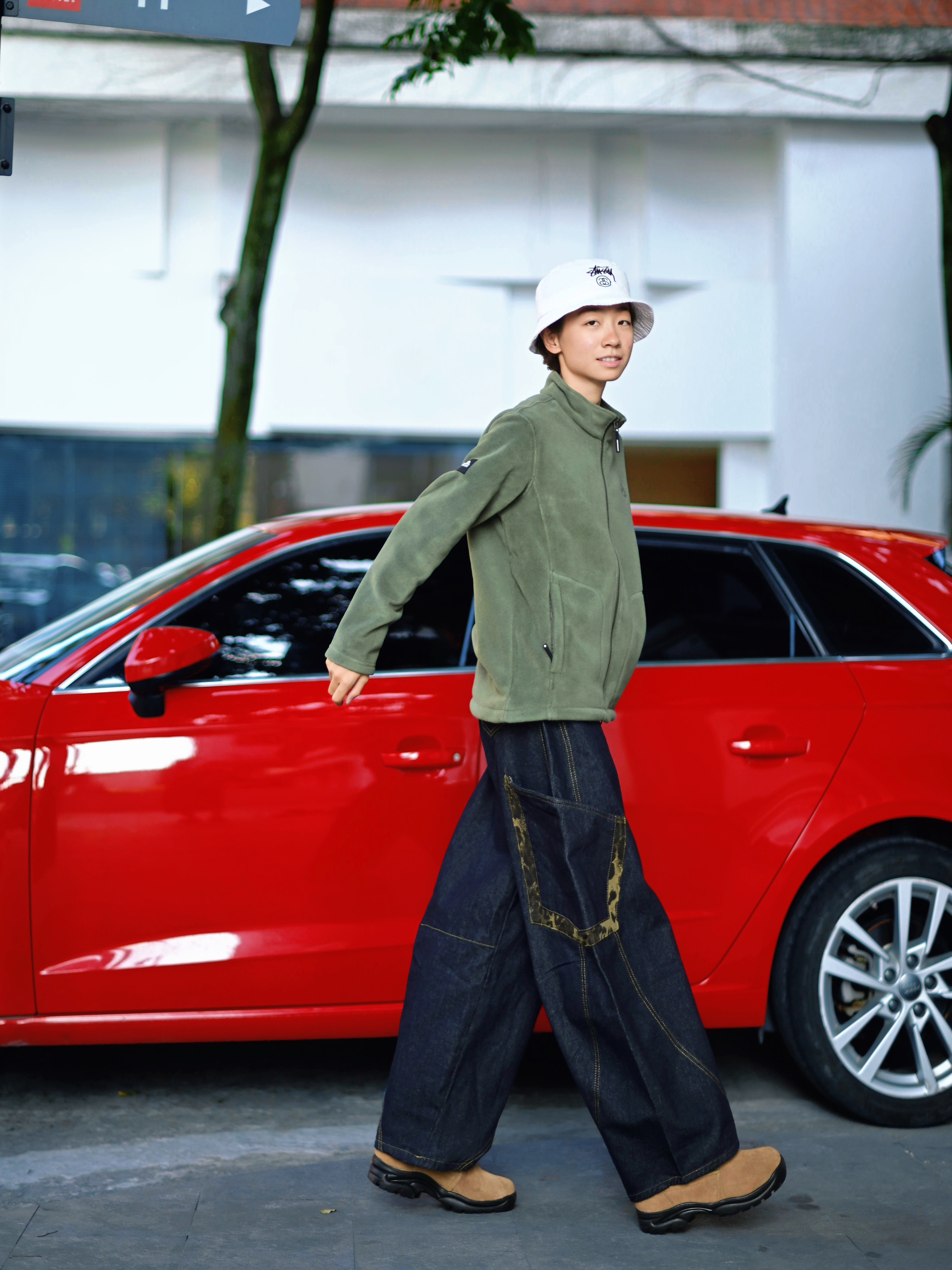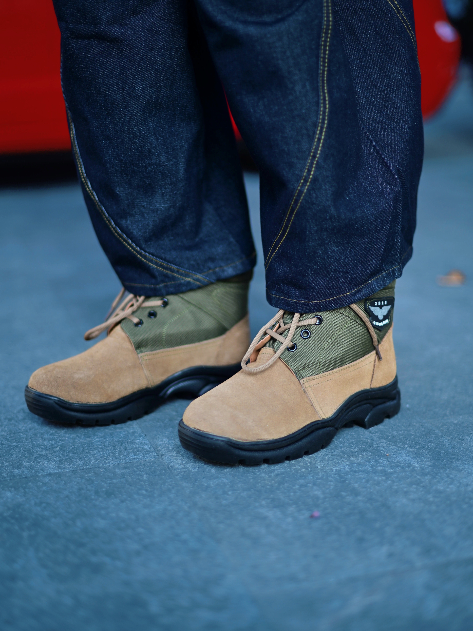 欢迎进入哇哇哇的穿搭分享频道 172CM|55KG 👔:m👖:m|👟:39码 今日份上脚强人3515黄色大头棉鞋!保暖性能拉满,翻毛鞋面自带复古质感。 亮眼的黄色在秋冬街头轻松成为视觉焦点。 搭配上选择军绿色立领外套强化硬朗感,下身用深蓝色工装裤衔接 裤侧的迷彩细节与鞋子的户外属性呼应。 随手一拍就是氛围感十足的秋冬型录。