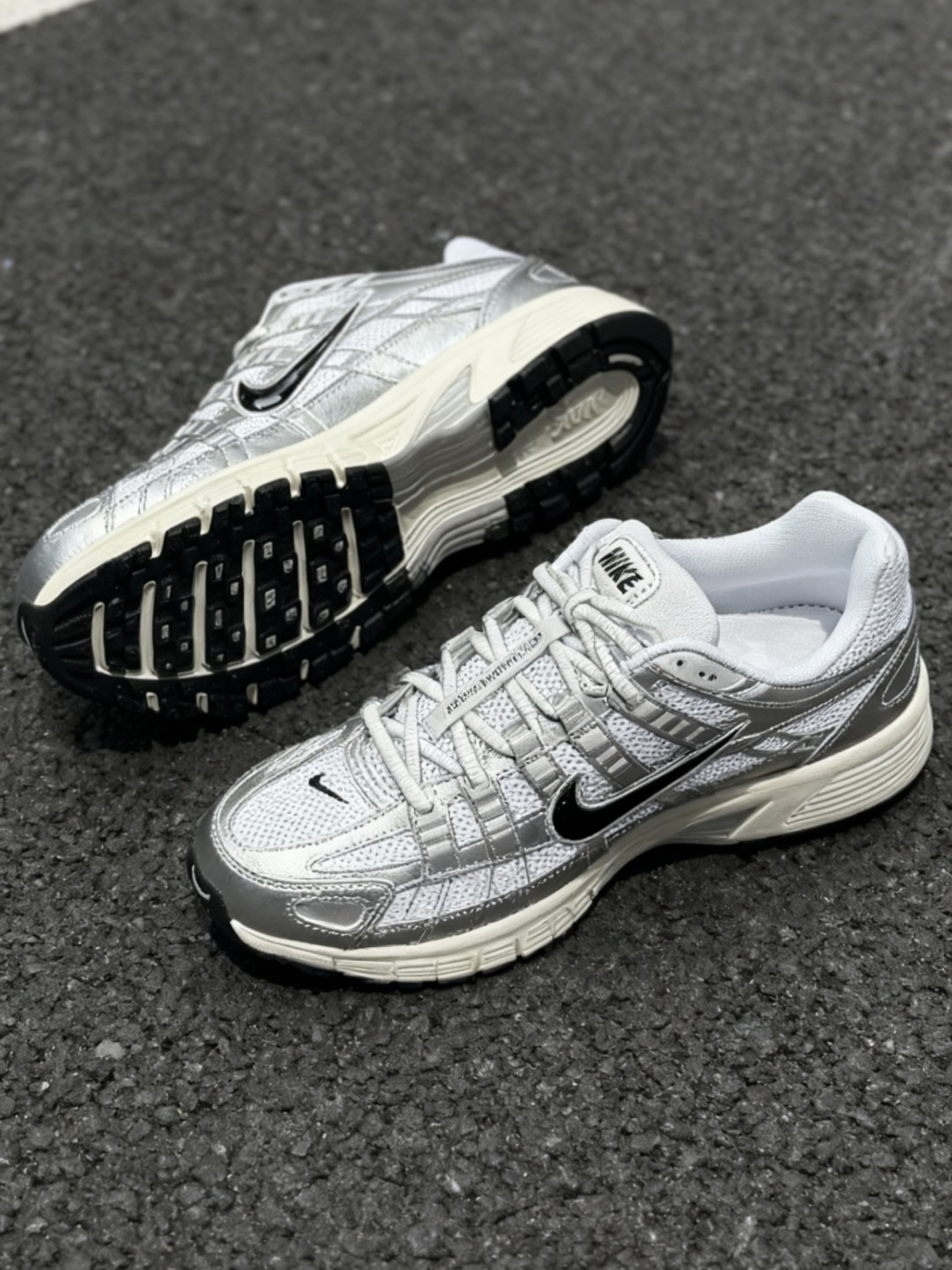 复古风是真的好看🤩 经典百搭又耐看的P6000 鞋身全是大孔网面设计 透气性真的好 周围采用渐变光亮银色皮革 拼接很特别