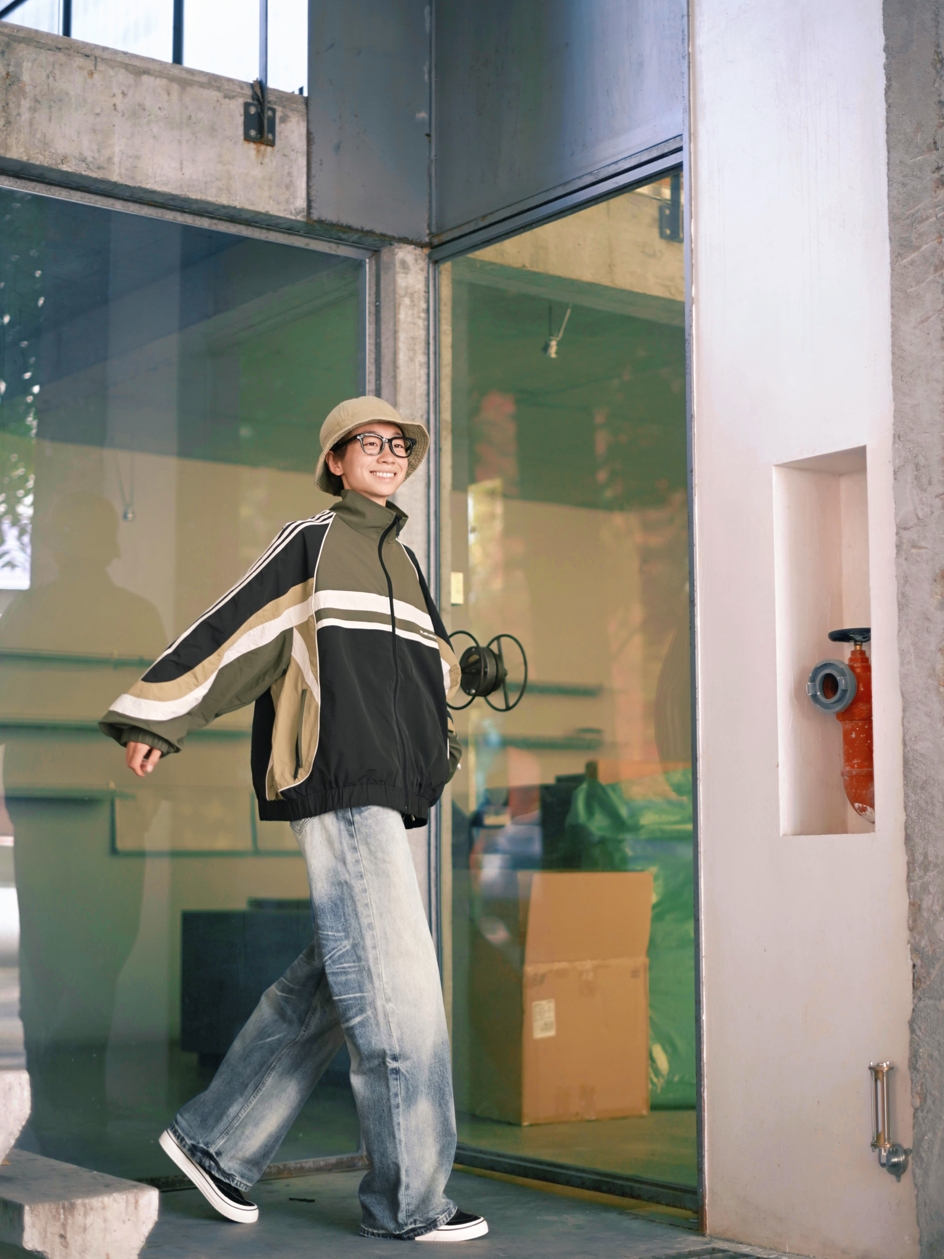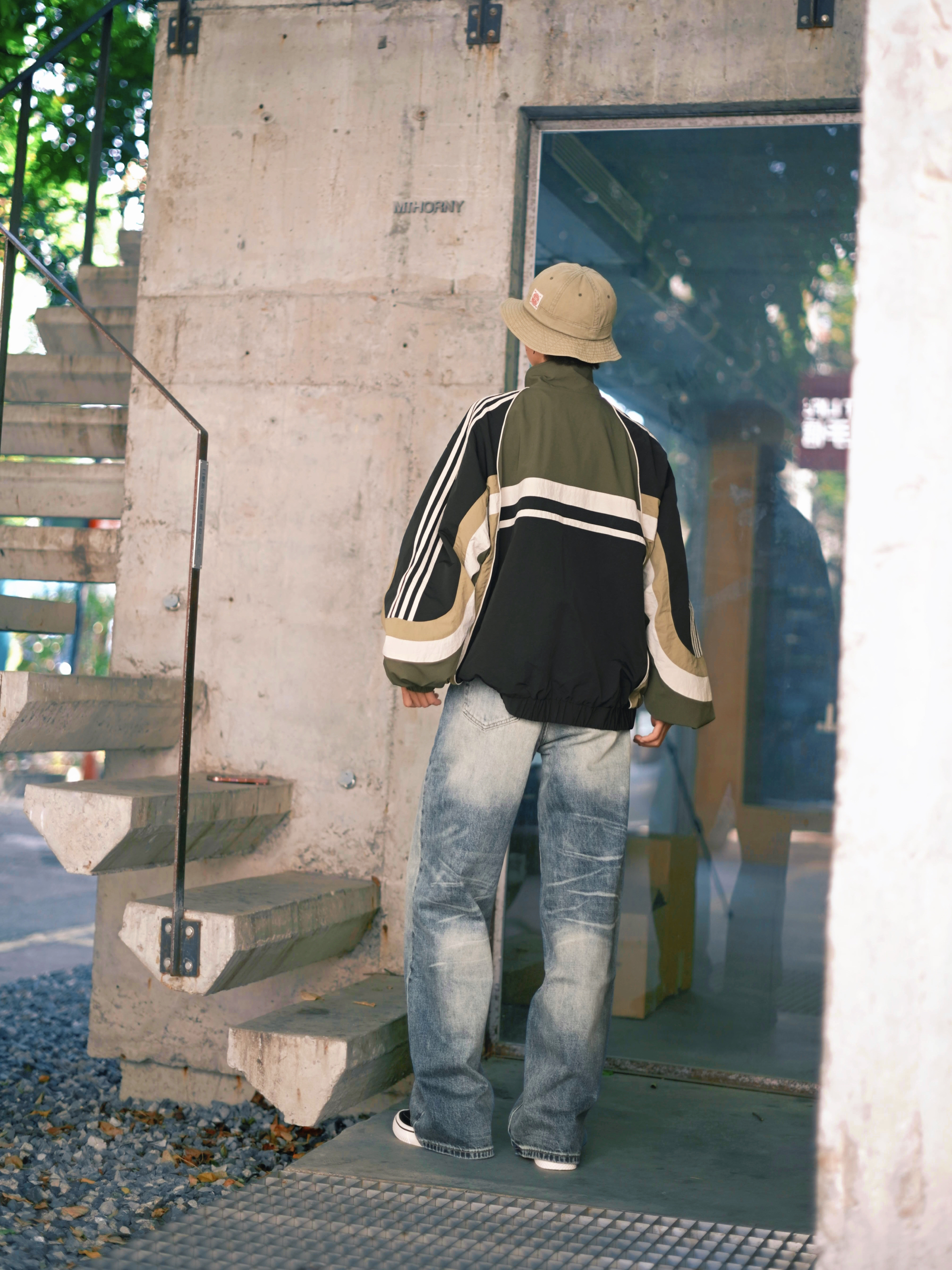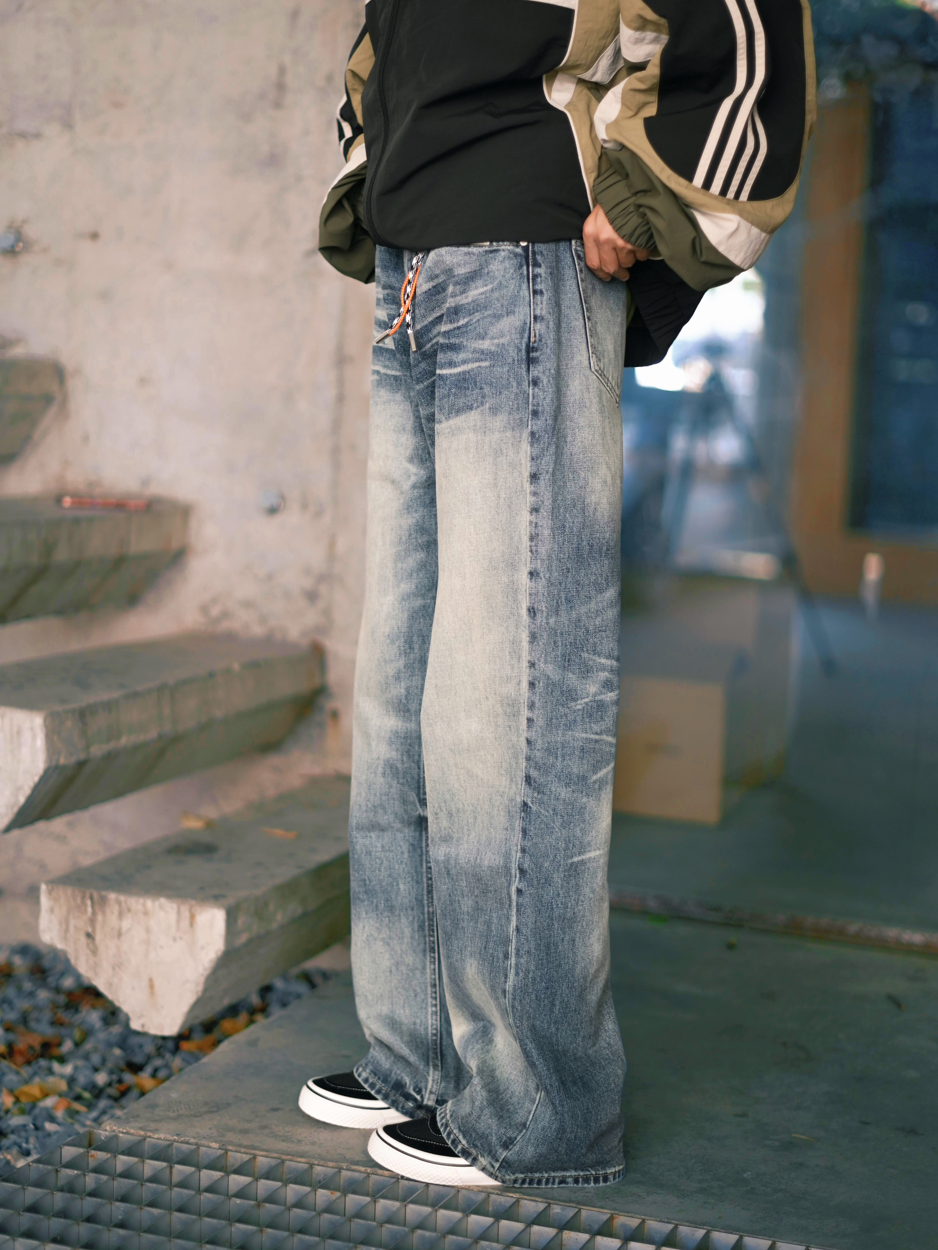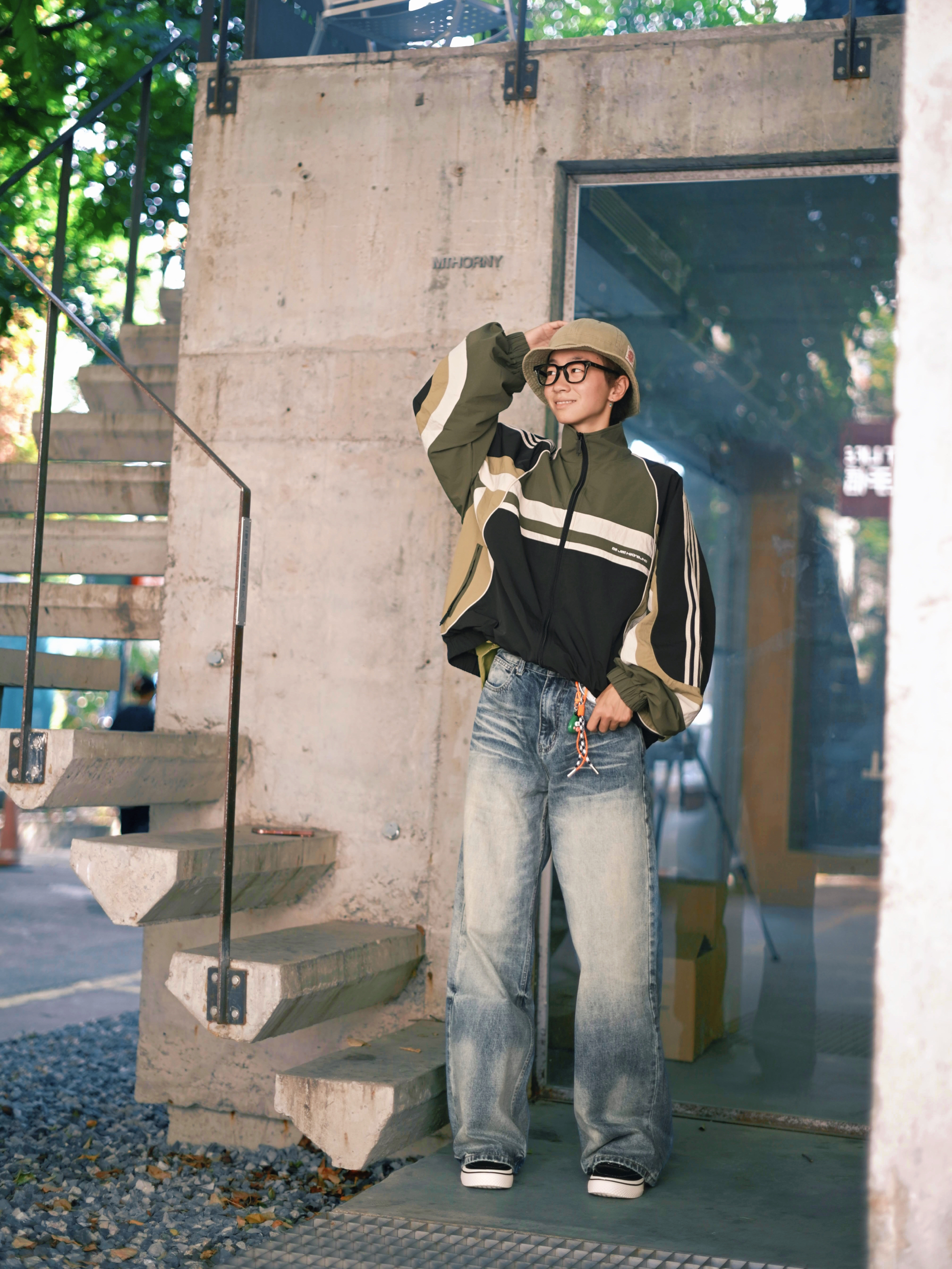欢迎进入哇哇哇的穿搭分享频道 172CM|55KG 👔:m👖:m|👟:39码 秋冬先帅一步啦~ 上身新因素25FW的猫须水洗牛仔裤 潮流街头感觉拉满 美式复古水洗工艺让扎花纹理自然立体,褪色效果自带故事感 Clean Fit玩家可以直接抄作业 搭配条纹复古外套+复古跑鞋 轻松拿捏那种懒懒的时髦感
