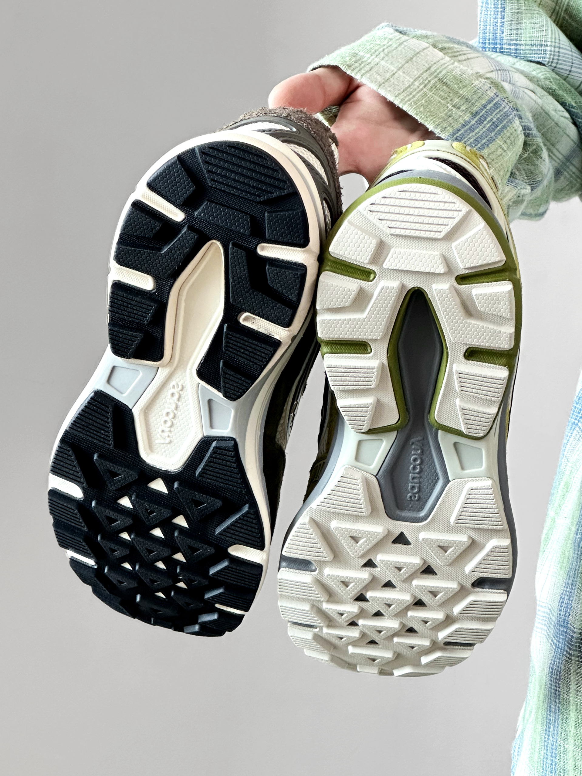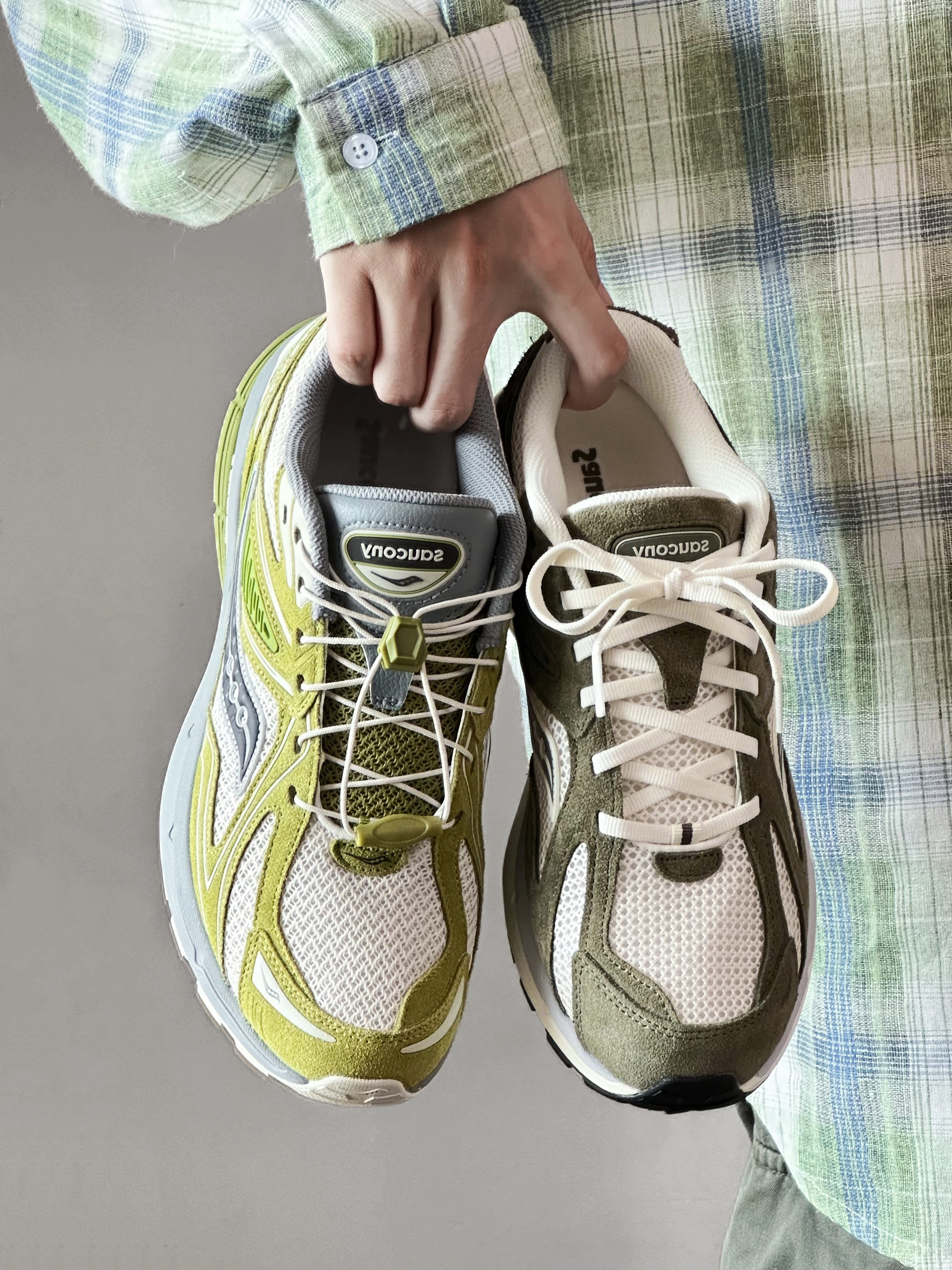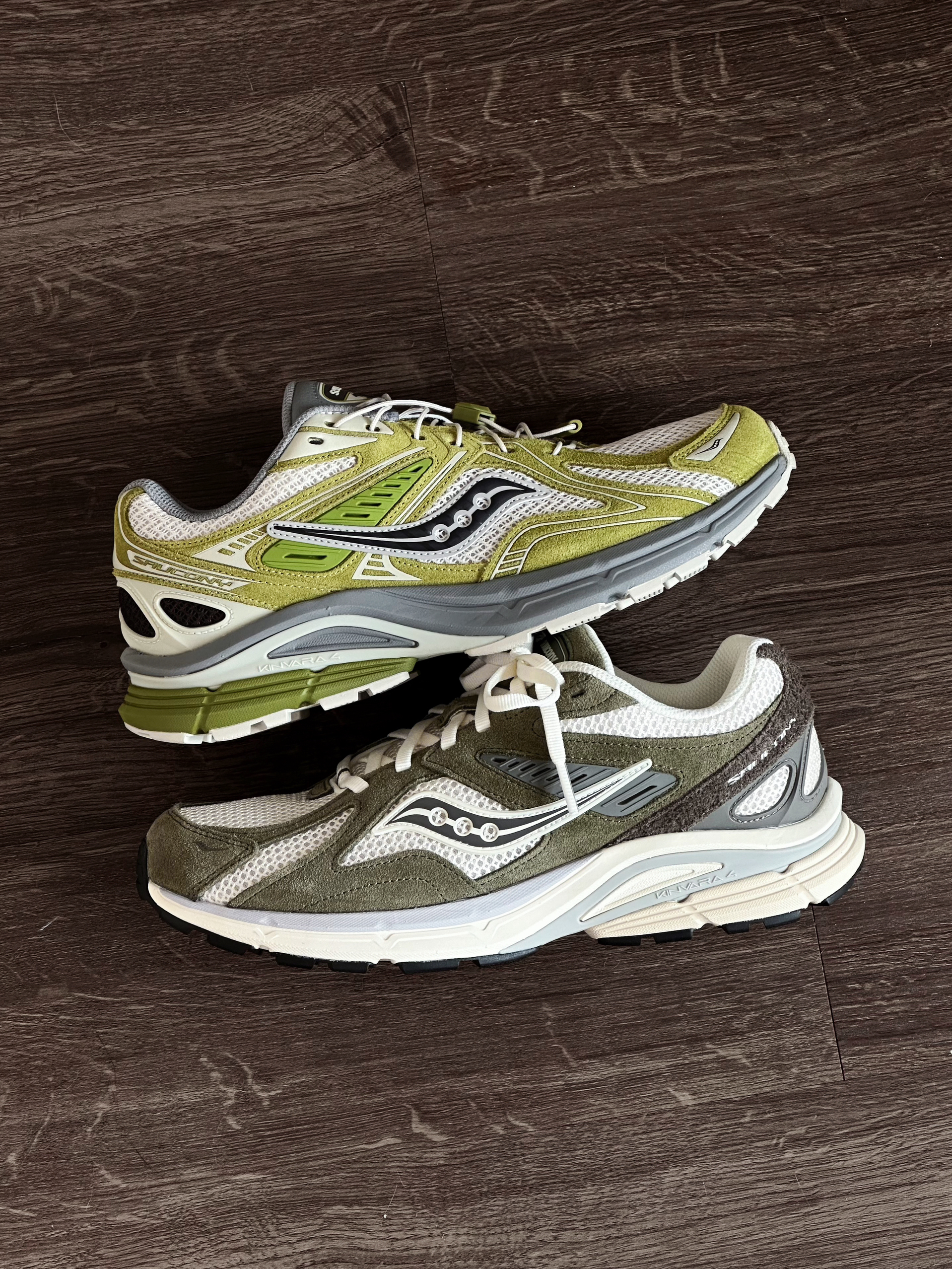 一眼爱上索康尼 KINVARA 4 RE 两个绿色系配色都很好看 各有特点 ▪白绿色自带复古氛围感 透气网面和翻毛皮拼接鞋面 层次感十足 暴走全天也不闷汗 中底TPU搭配EVA材质 上脚轻盈软弹 同时又很有支撑力 日常通勤周末旅游逛一整天都完全OK ▪米绿色户外机能感十足 抹茶绿和米白色搭配很有辨识度 复古基调中又融入了几分机能感 收束式鞋带穿脱方便 3.5cm的鞋跟隐形增高 拍照更出片 ...