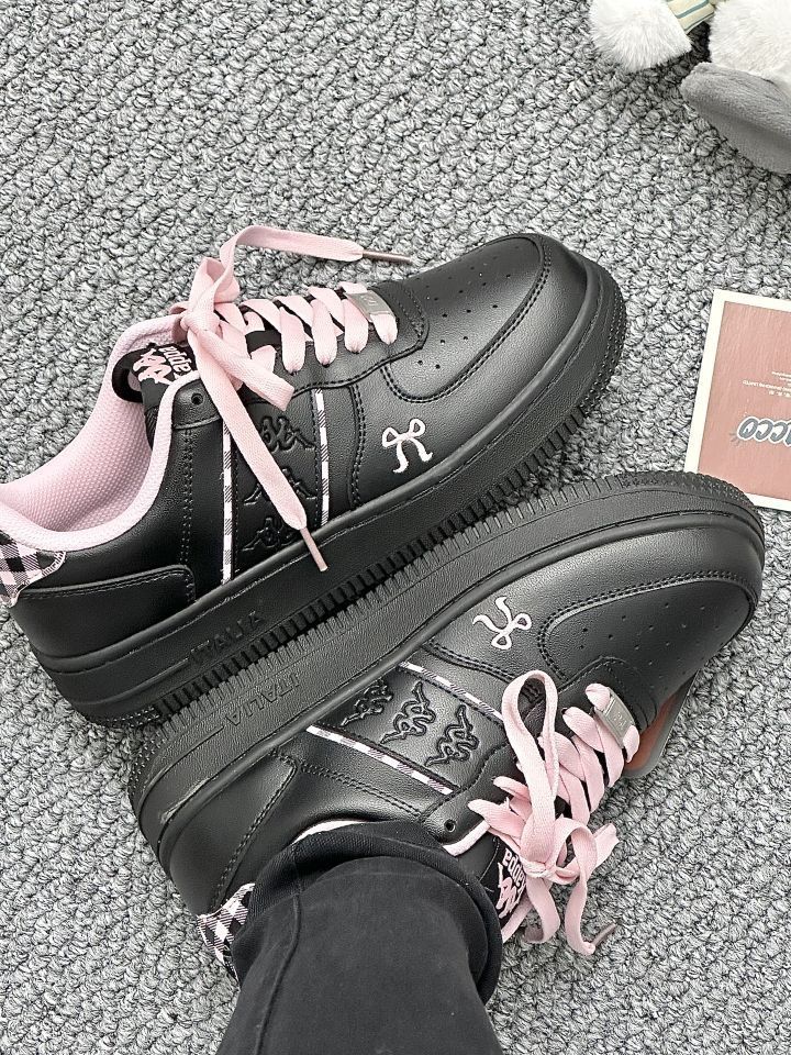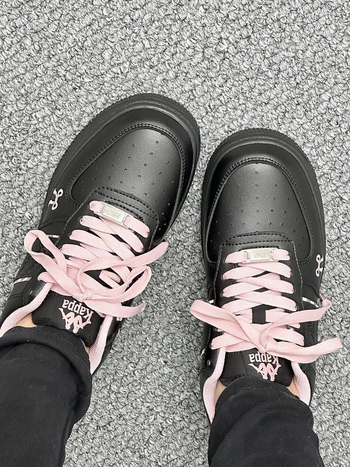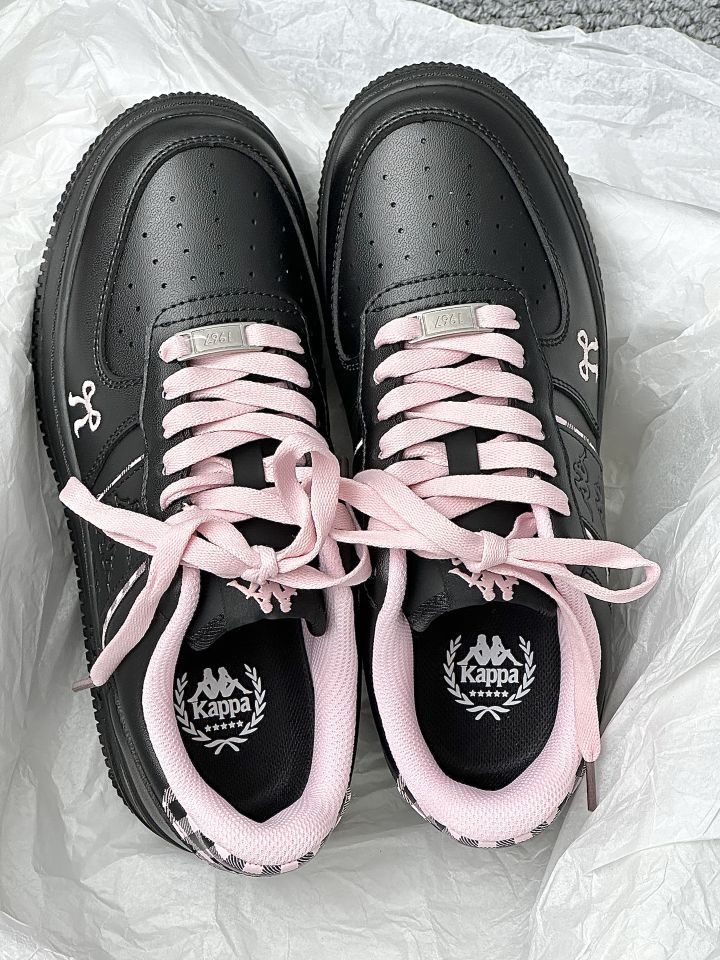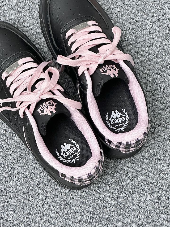 宝子们!Kappa这双黑粉配色的鞋太绝啦😎 酷黑主调搭粉鞋带,又甜又飒!皮质细腻有质感,厚底还能悄悄增高~ 上脚舒适又吸睛,出街妥妥炸场,甜酷女孩闭眼冲,入股不亏~
