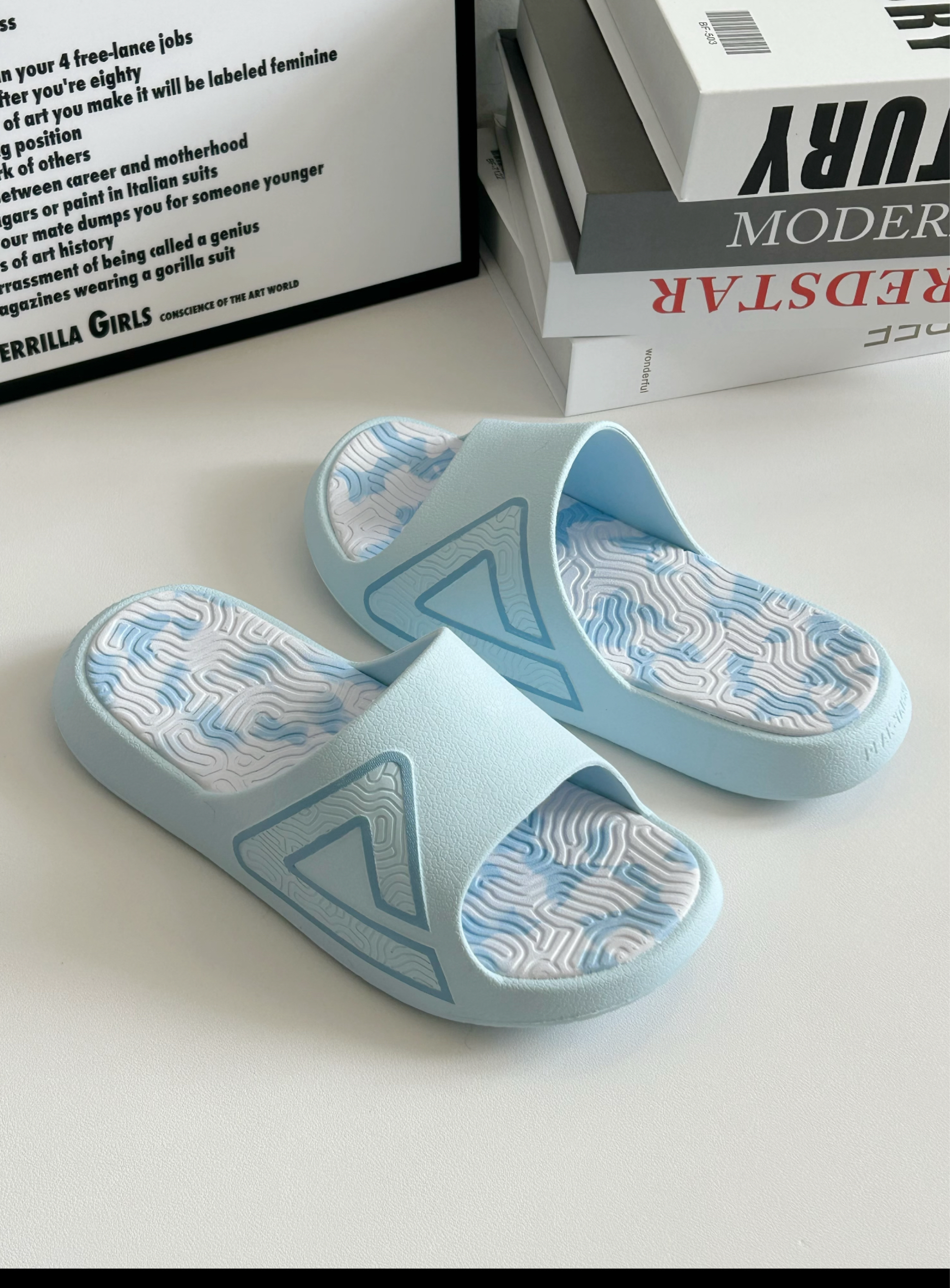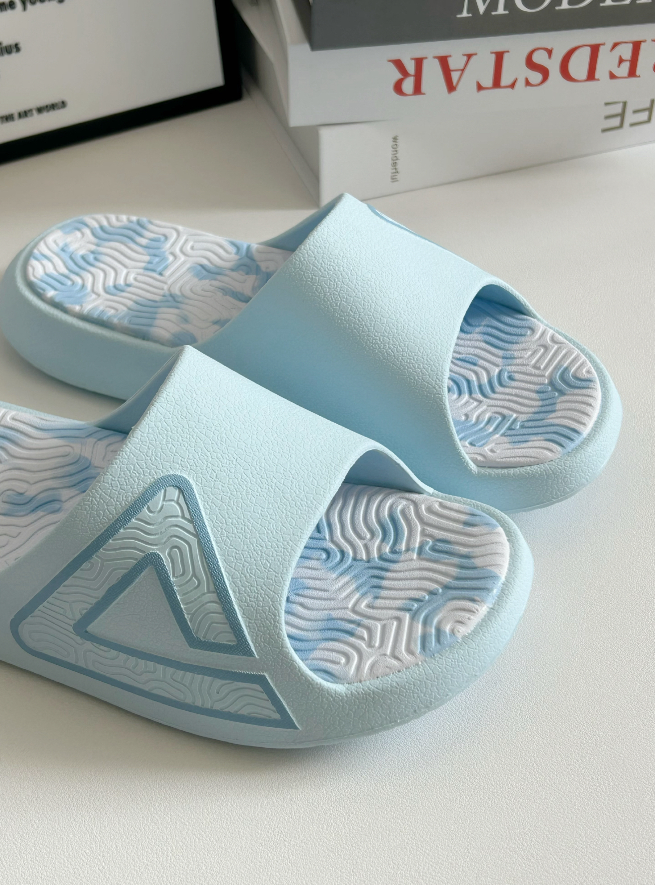 匹克天空之城海盐蓝 好清纯的颜色!不管什么季节搭配都好清爽 居家外穿都可以 个人觉得挺防滑的 它这个系列就很多款颜色和款式 但这款海盐蓝一眼相中 码数可以买大0.5码 可能更舒服一些 (这个系列的款式 设计很有特色!很难不爱啊!