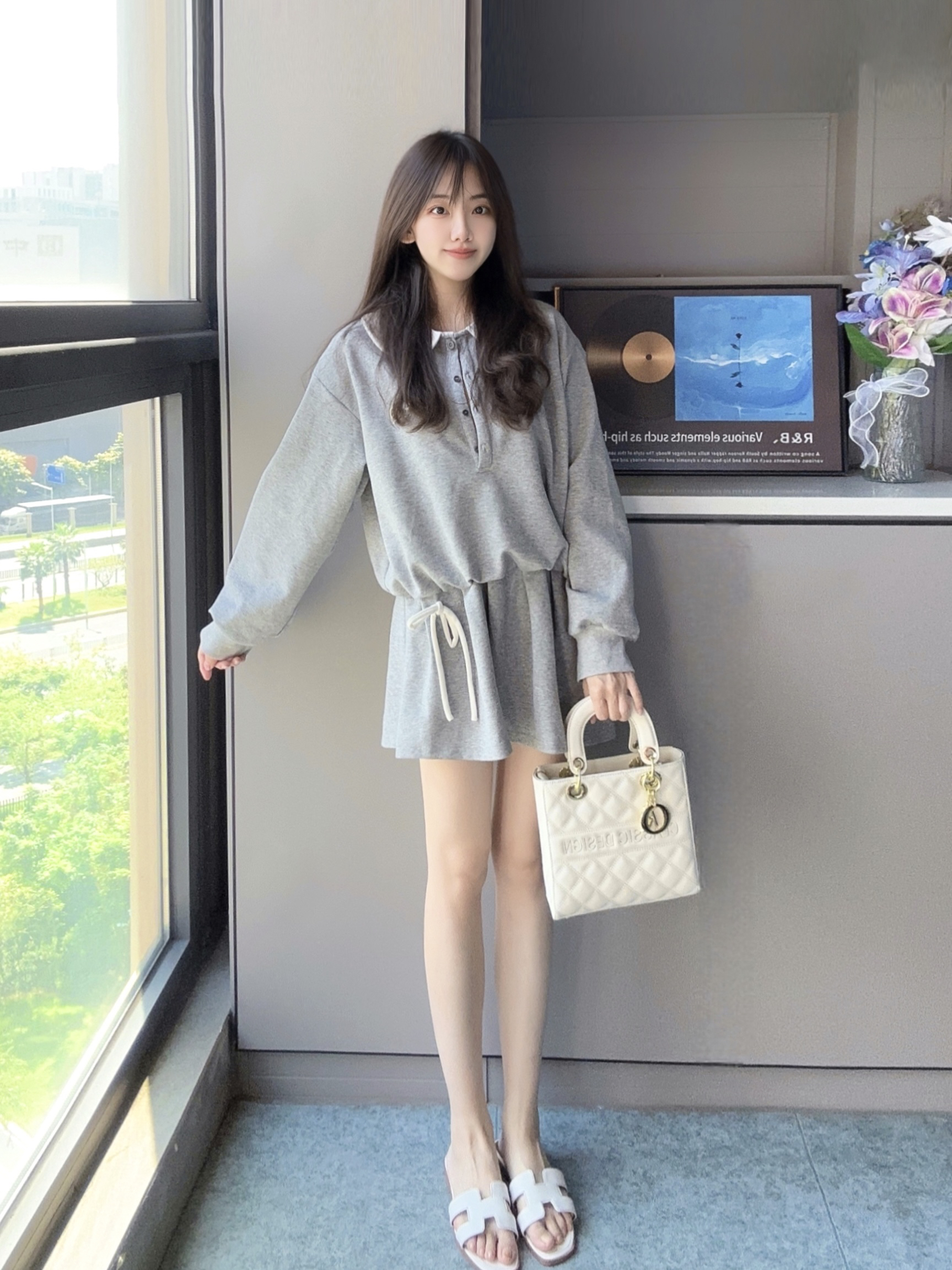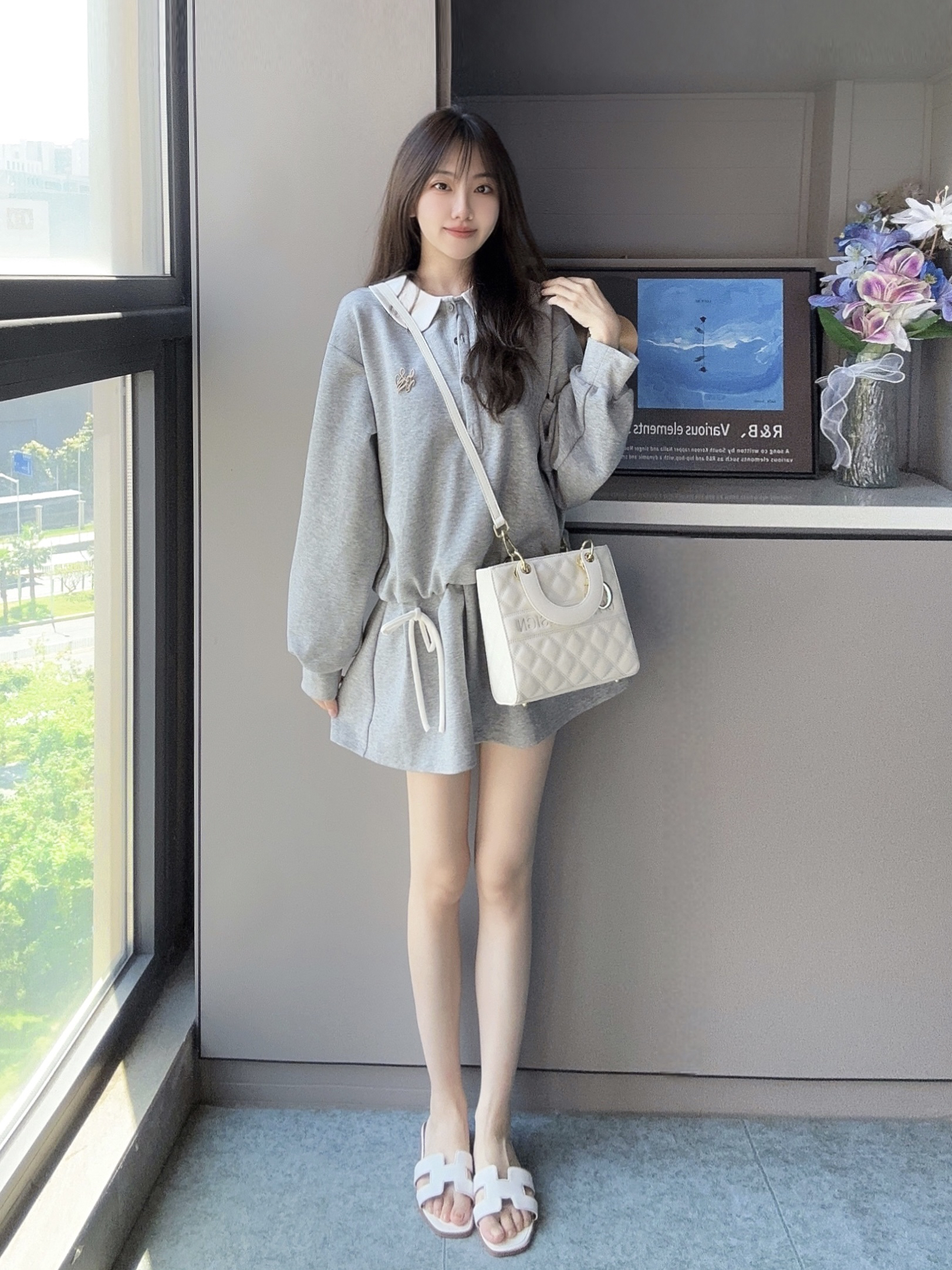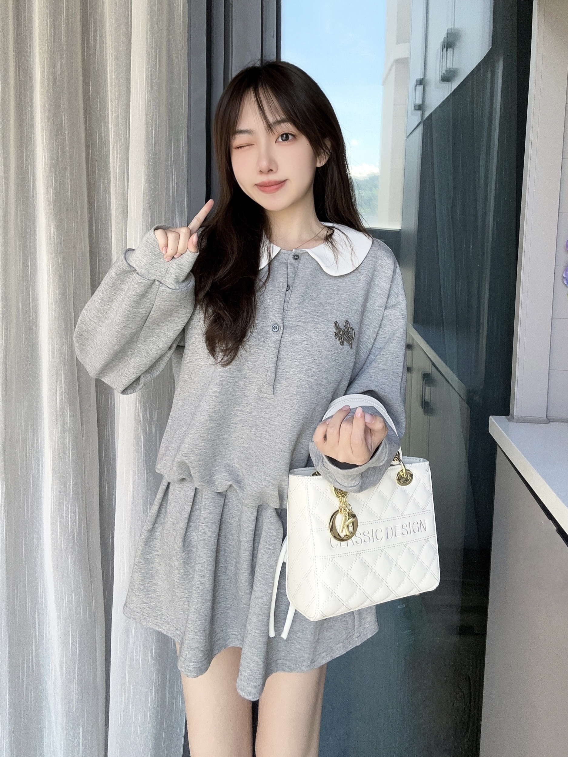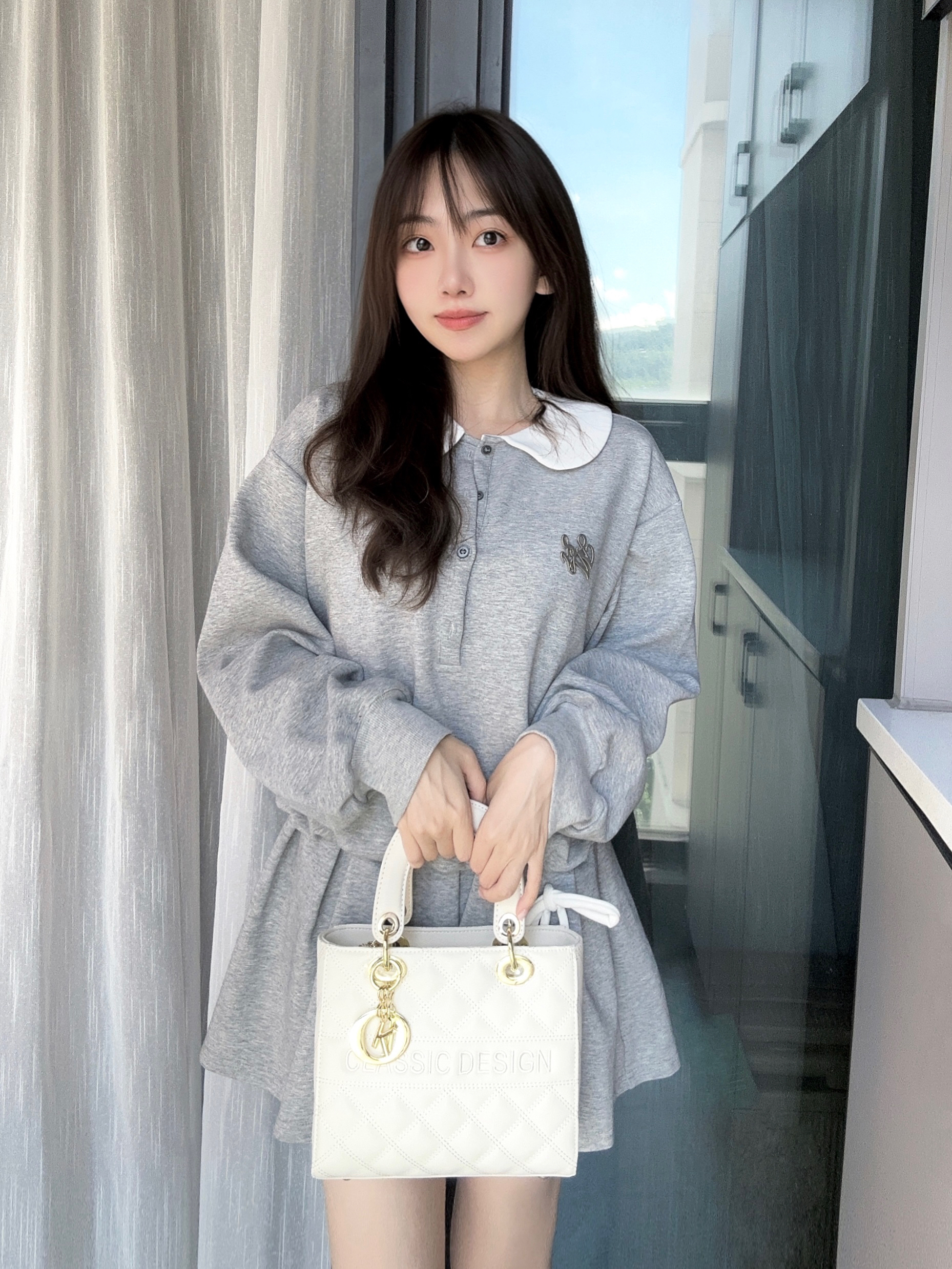 今天是减龄的元气女孩👧🏻 一身灰色的连体裙套装 搭配 白色戴妃包包 很显气质又温柔的感觉我好喜欢 这款包包👜容量还是不错的,很能装 日常通勤背它也很适合呢~