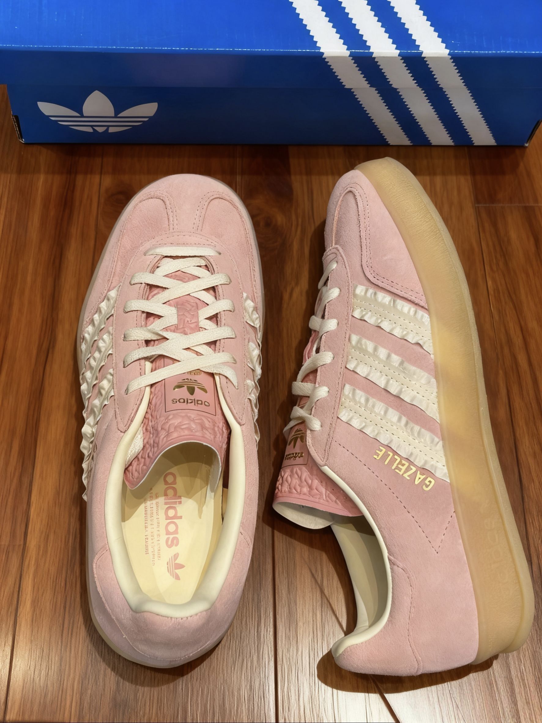 本篇笔记关联了【马思纯同款】 adidas Originals Gazelle Indoor T头鞋 德训鞋 板鞋 舒适缓震防滑耐磨绒面革 奇迹紫粉色/乳白色/树脂黄等商品,为用户提供真实的使用体验和购买参考。