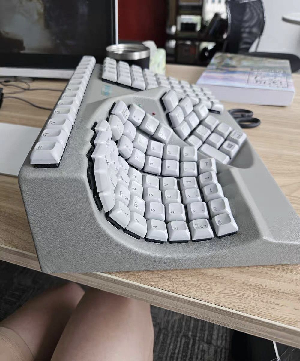 这键盘造型也太奇特了,跟普通键盘完全不是一个路子,看着就跟个“键盘怪物”似的。按键布局这么个性,估计用它打字的人,手得先适应好一阵,不过说不定用习惯了还挺舒服,主打一个“不走寻常路”,在键盘界绝对是特立独行的存在!