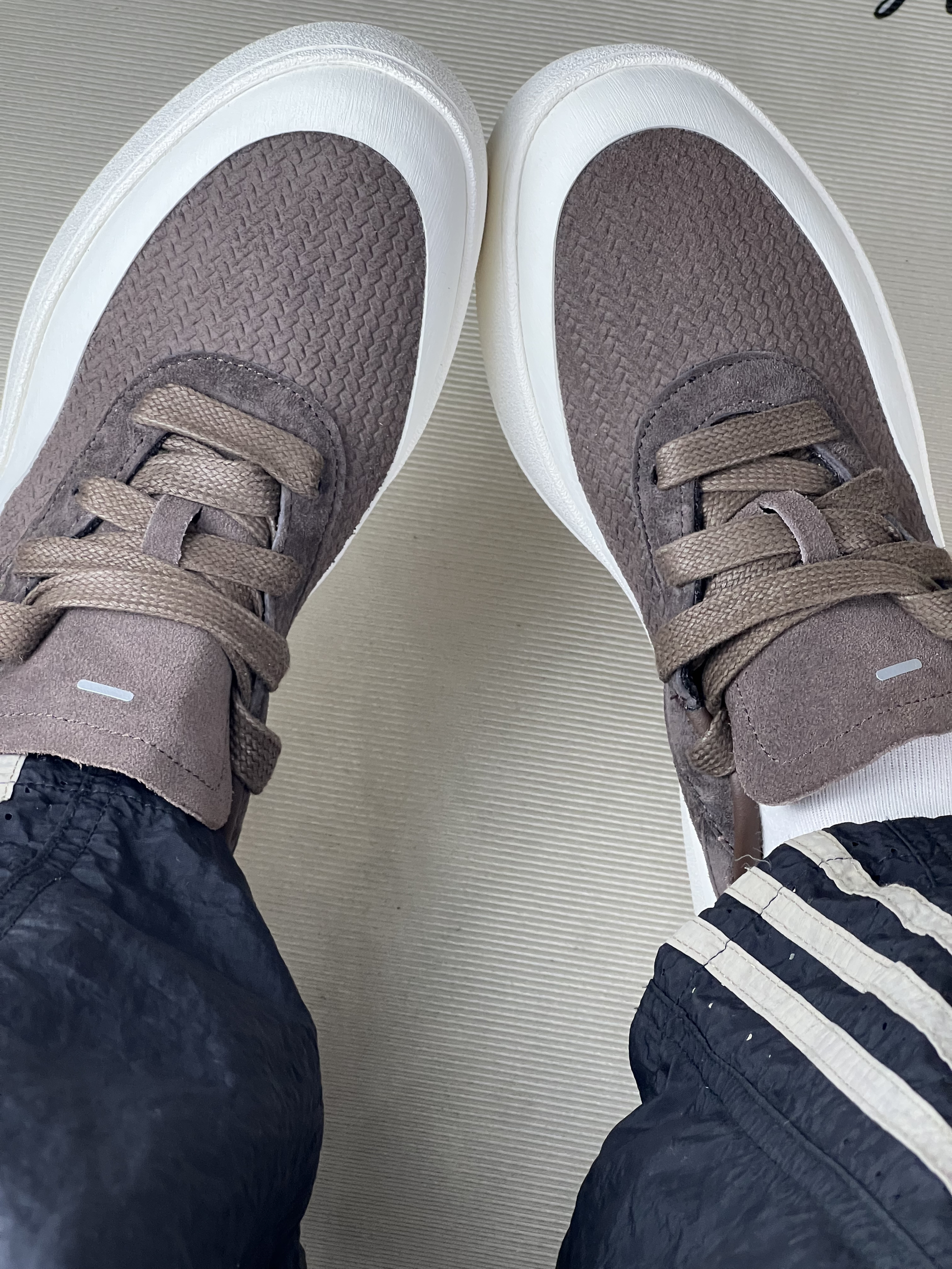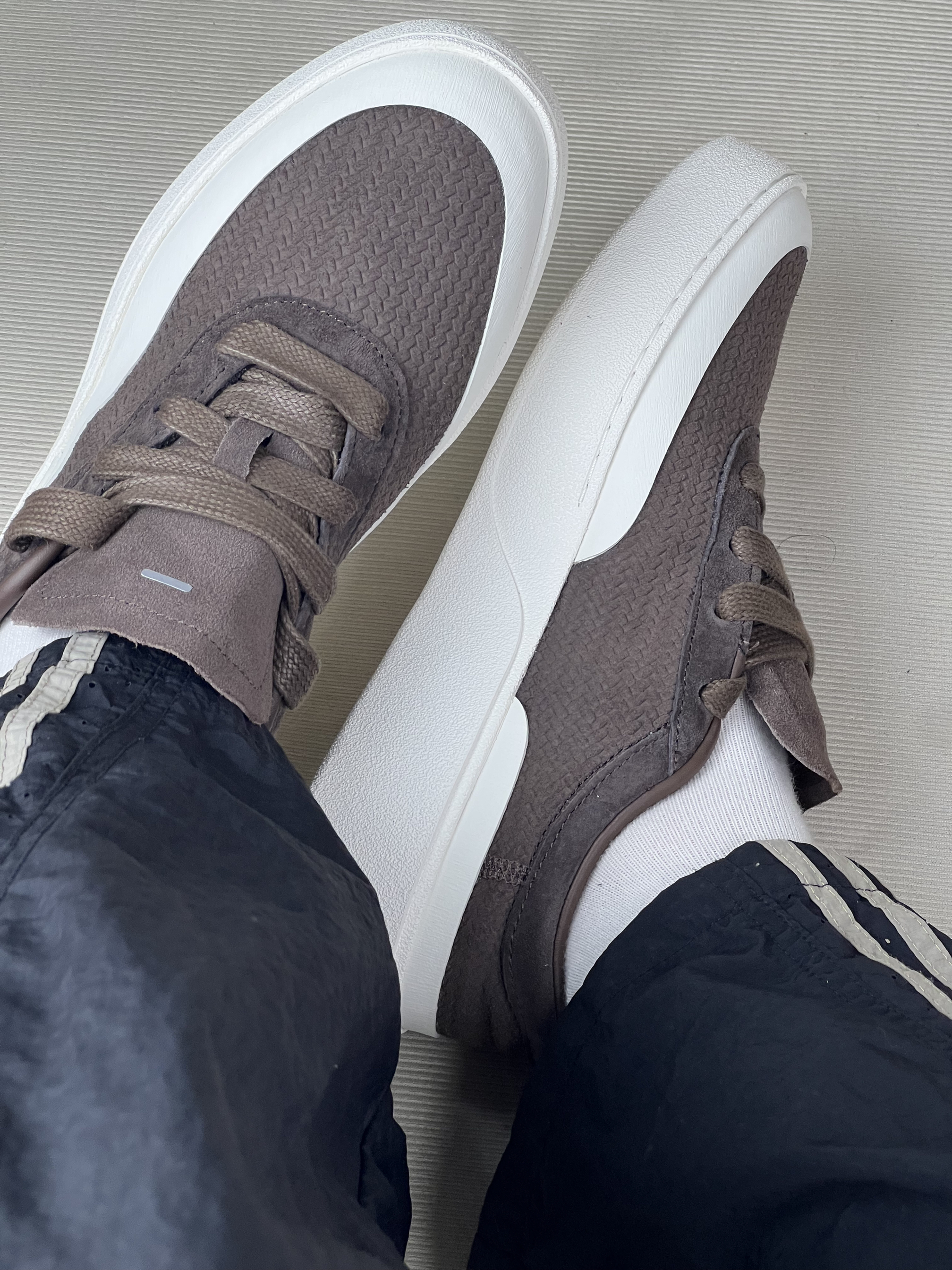 这双鞋到手穿了快半个月,先说穿着感。鞋面的质感摸起来挺特别,是那种带点纹理的料子,日常搭配休闲裤还挺搭的😌。 但缺点也很明显,鞋底虽然看着厚实,可长时间走路的话,脚底板会有点累,支撑性一般。还有这鞋带,得系紧点,不然走着走着容易松,得时不时低头系一下,有点麻烦🙃。 尺码我感觉有点偏大半码,我平时穿这个码数,这双鞋穿上后脚趾前面空了一截,得垫个薄鞋垫才舒服。 整体来说,日常短时间出门遛弯、买个...