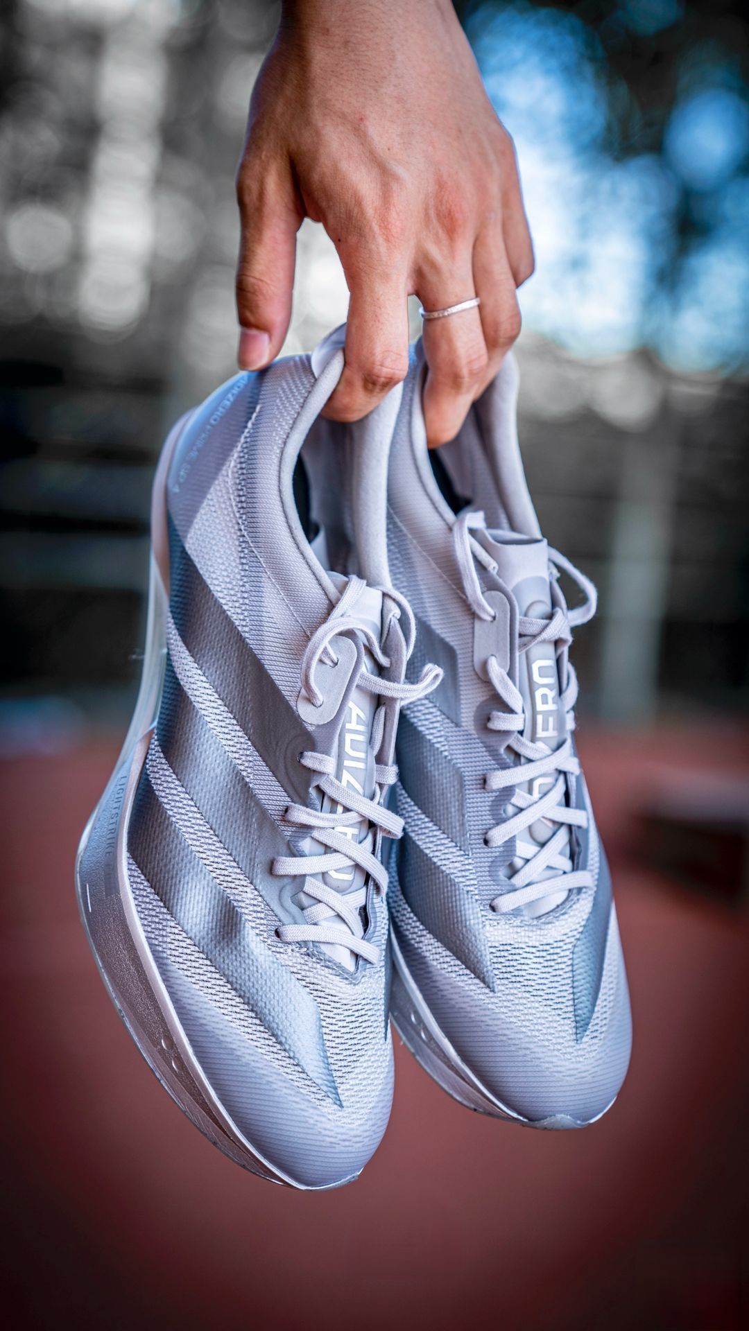 全网独家"国内唯一Sample!I Adidas 大蝉翼4 纯银配色 这款来自adidas的大蝉翼4依旧是目前国内唯一一双这个配色的,并且在未来也不知道会不会发售的sample版本,相信屏幕前99.99%的人都没有见过 整体以全银色的鞋身为主,颜值真的非常的好看,鞋底采用了一个内置的泼墨效果,还有特点,并且这个配色的前后坡差以及后跟的弧度也是有所调整的是所有目前我拿到的配置当中后跟坡差最低的 大蝉...