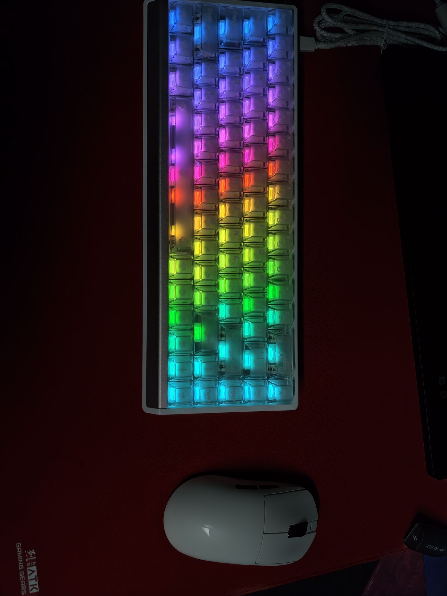 我的第一套外设,ATK首发A9Ultramax+RX68,整套装备白色搭配非常不错,使用体验也是非常丝滑好用,打游戏什么的完全够用,键盘轴声也很好听,必须支持!