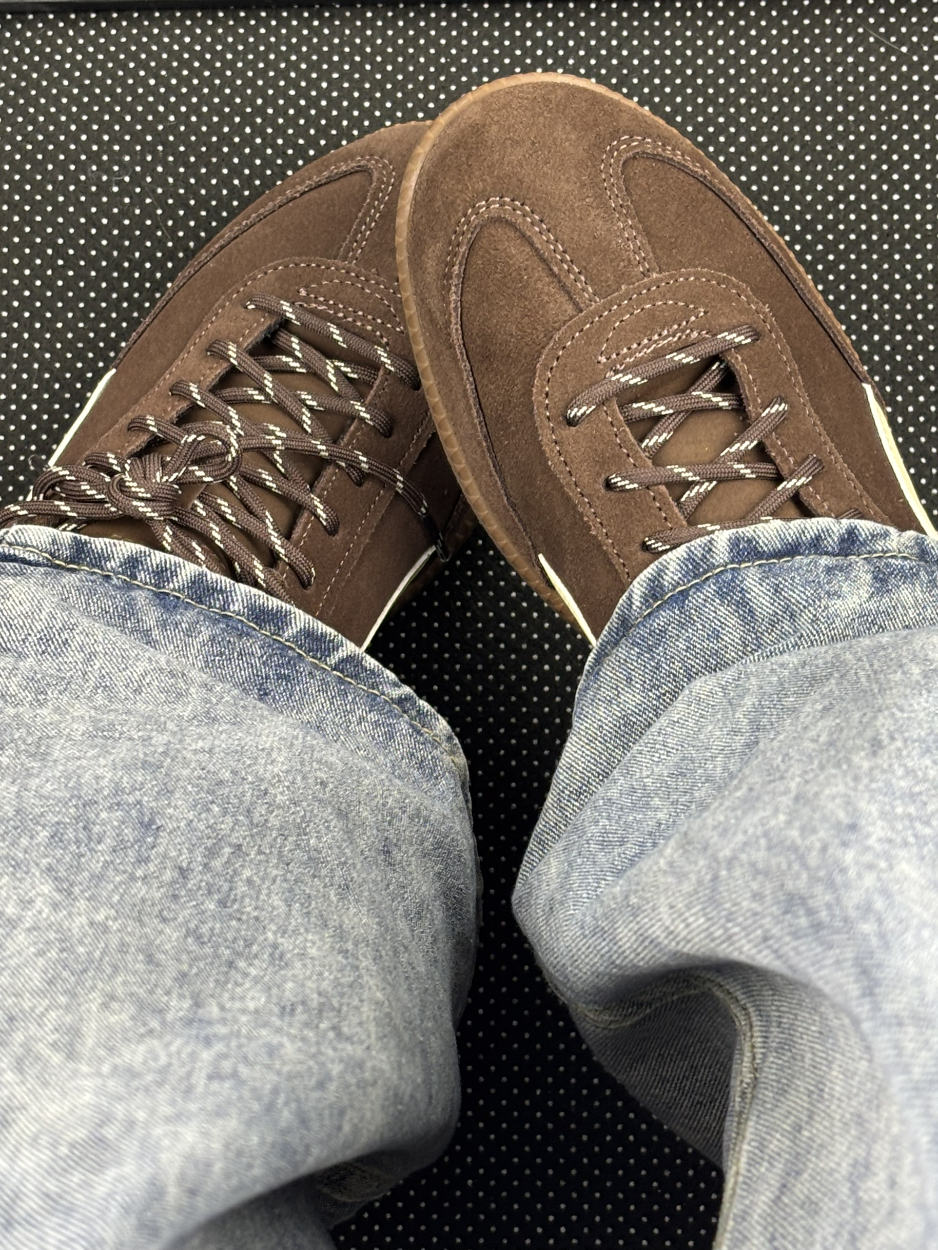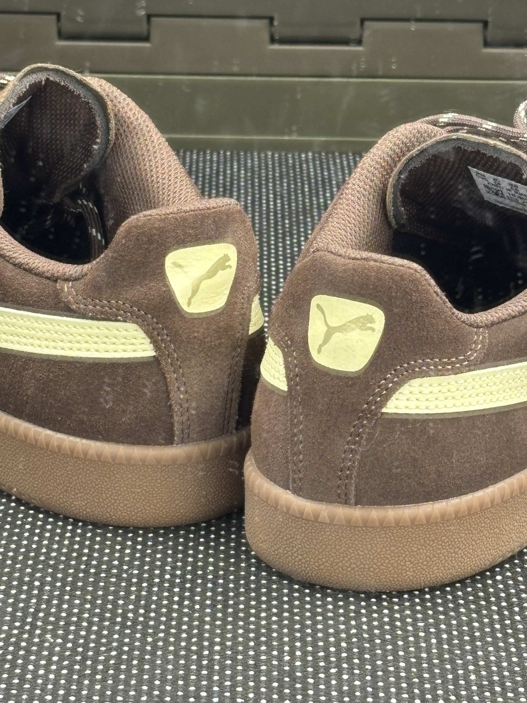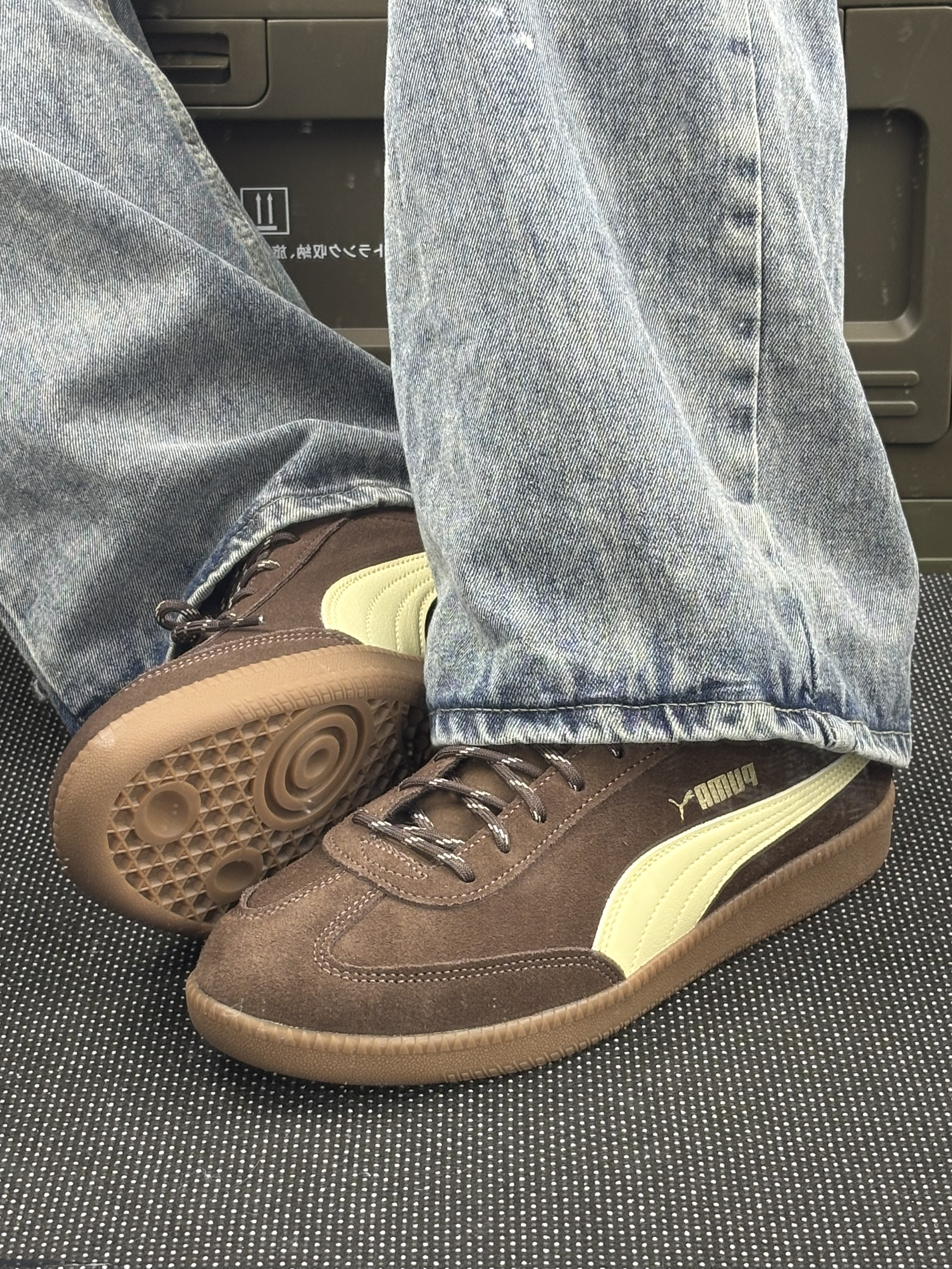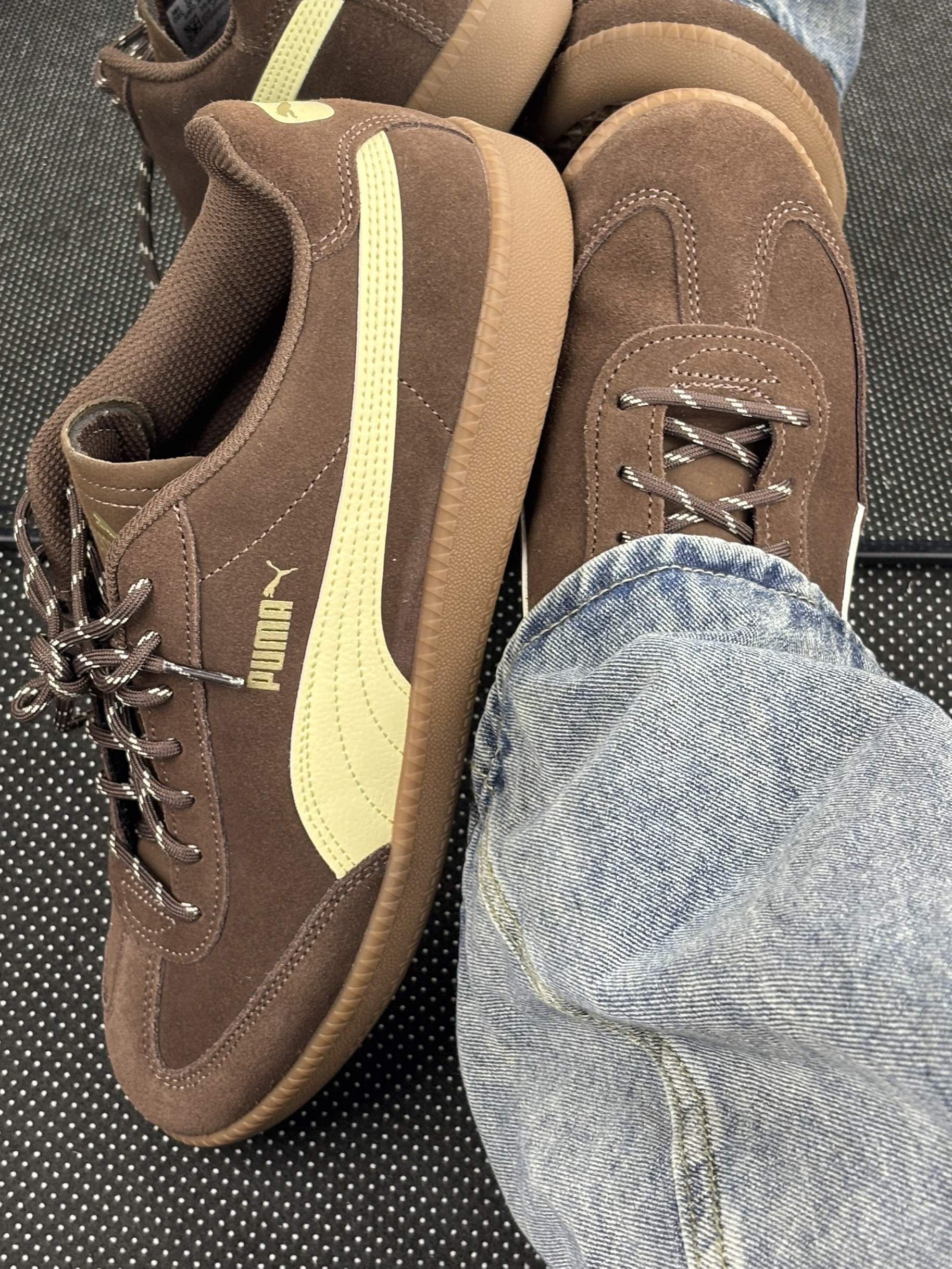 这双PUMA的棕棕鞋到我手上一周啦👟 上脚第一感觉是绒面摸起来软乎乎的,但有点吸灰,穿两天鞋头就沾了点小毛絮,得拿粘毛器滚一滚~ 鞋型是偏秀气的那种,配牛仔裤刚好露出侧面的浅黄条,乖乖的不扎眼✨ 脚感是“刚好舒服”,走半小时逛街不硌,但久站的话后跟会有点软塌塌的,得垫个薄鞋垫~ 鞋带是细细的那种,系紧了容易松,出门前得double check一下🎀 缺点是鞋边的浅棕色橡胶容易蹭脏,昨天不小心...