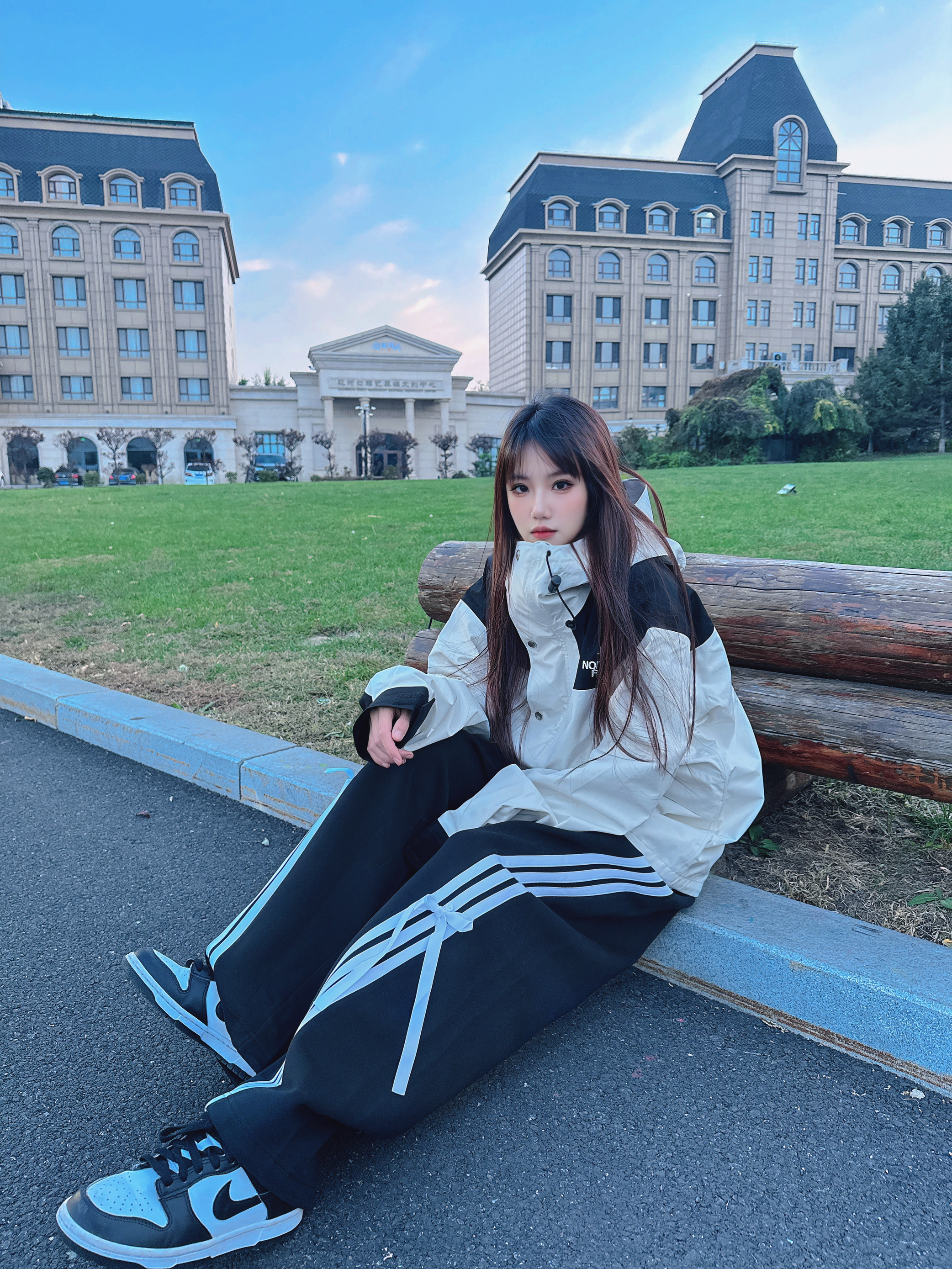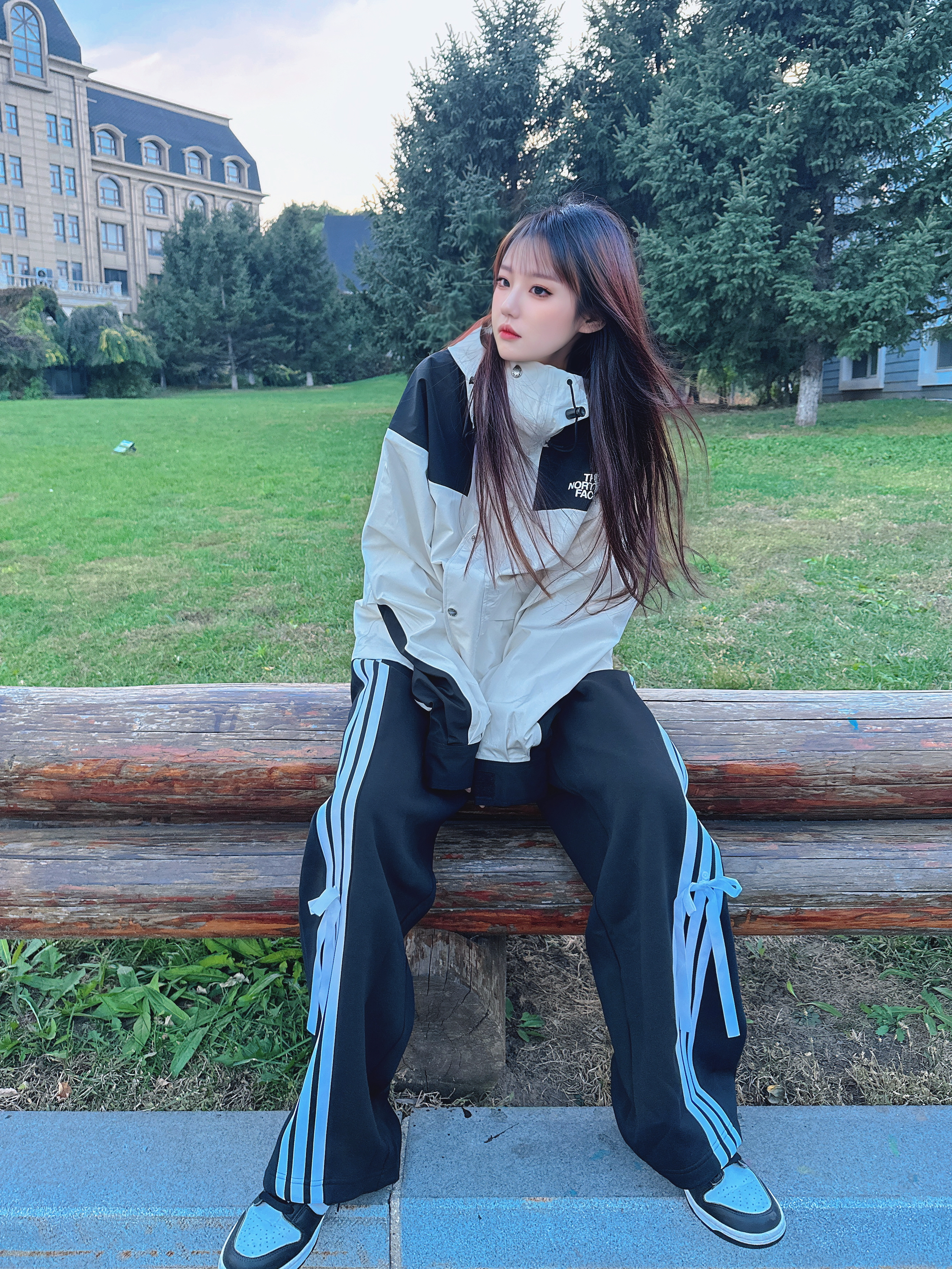 天气冷的时候男朋友的衣柜就是我的啦! 北面的拼色冲锋衣也太绝了吧,黑白撞色贼吸睛,版型宽松还显瘦,春秋穿防风又帅气~ 搭配这条阿迪的蝴蝶结运动裤,侧面的条纹+绑带设计,小众又有个性。
