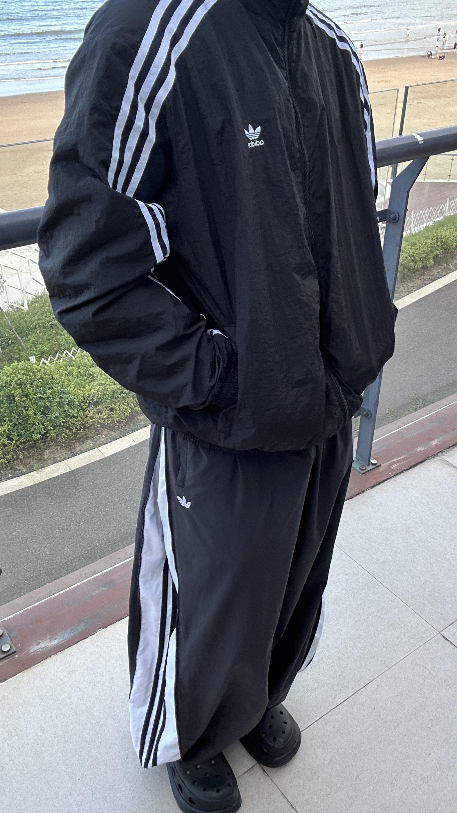 来了 今日分享 @adidasOriginals @丝瓜穿瓜皮 175/65 衣:Essentials 纯黑短袖 裤:Adidas 馋了很久的一条休闲裤 很多明星上身的同款 面料软切薄凉 裤子侧边拉开有白底条纹 设计感很强适合拍照 拉链拉起来较简约 适合日常通勤 不愧是俺的梦中情裤 又好看又好穿😎