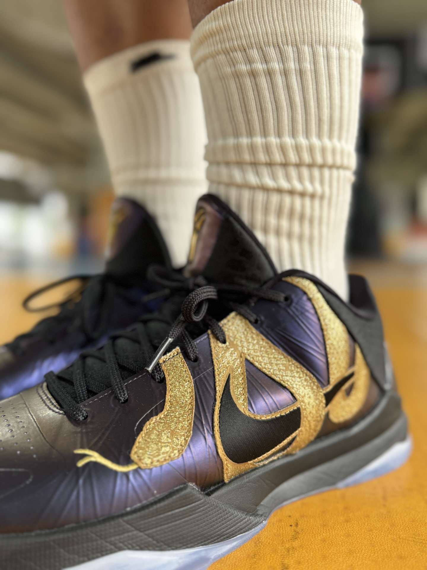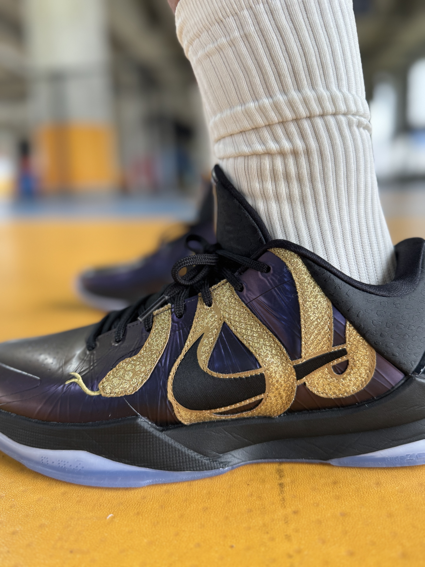 科5 蛇年限定颜值太高了!整体的外观设计也很吸睛,鞋子整体以渐变紫色为主,还带有金属光泽,非常有质感。鞋身有金色曼巴蛇缠绕在Swoosh上,立体感拉满! #球鞋实战派 #秀出我的篮球鞋 #爱了爱了这双球鞋 #打篮球当然要穿实战鞋 #经典球鞋不退场