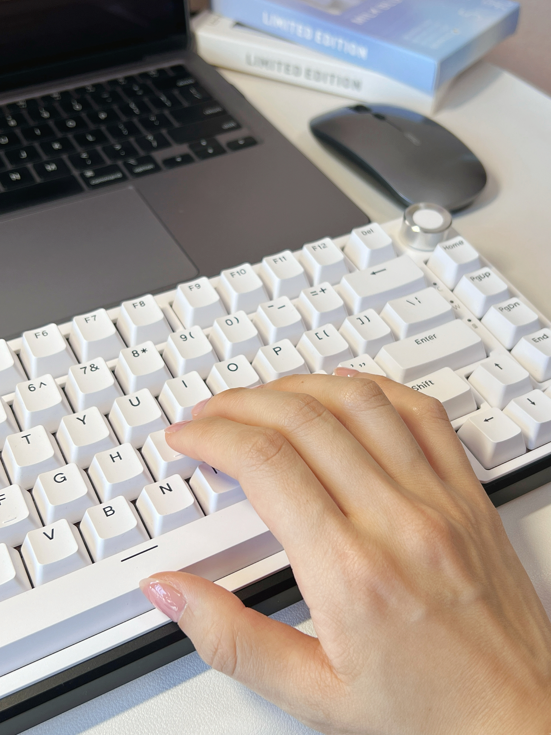家人们,介个蓝牙机械键盘真的敲绝,奶呼呼的白色干干净净的,真的高级耐看又百搭。而且这个键盘敲起来的手感真的太得劲了,码字的时候清晰的麻将音很治愈! 一个好的键盘真的是得又有颜又实用,日常配平板或者电脑都能用。