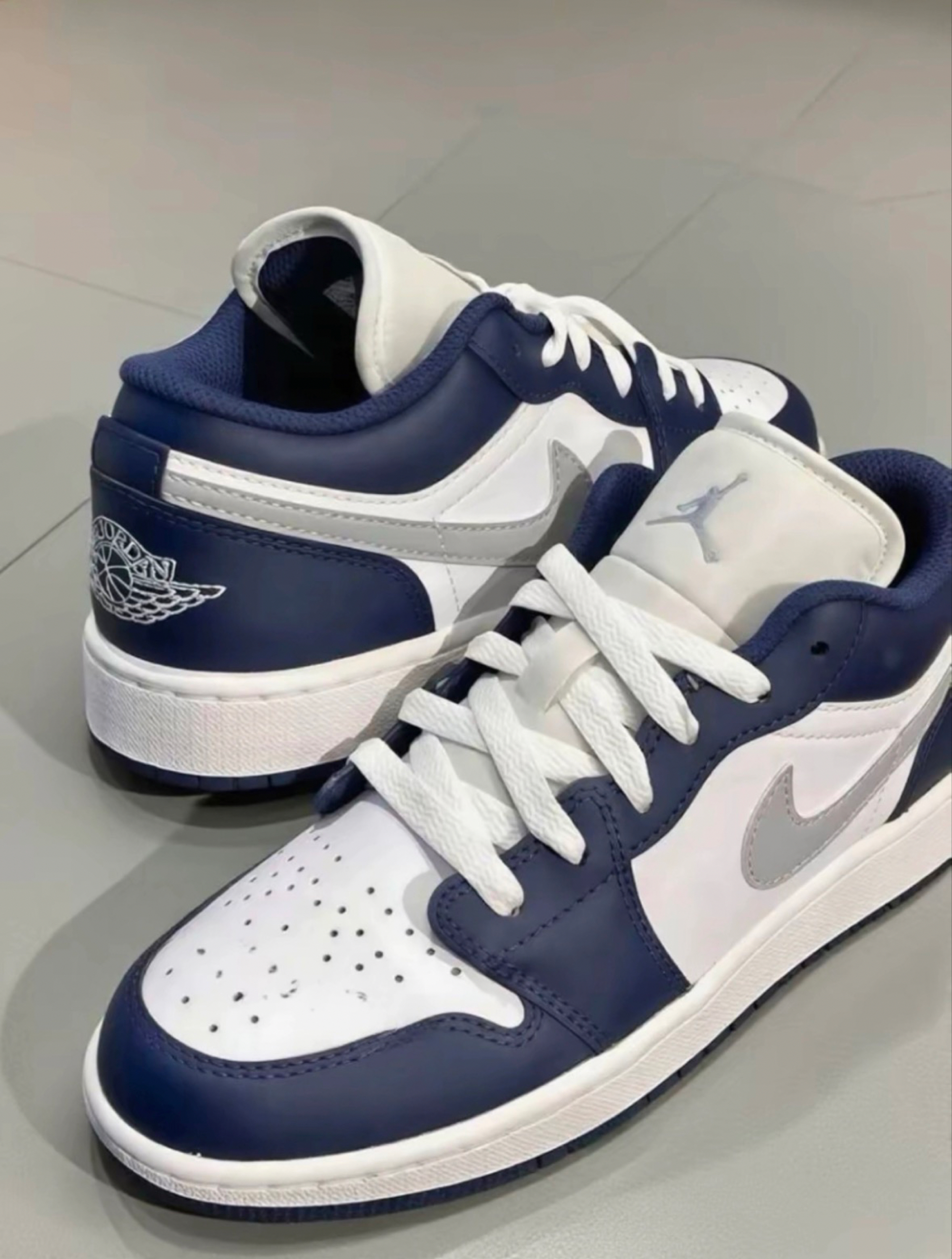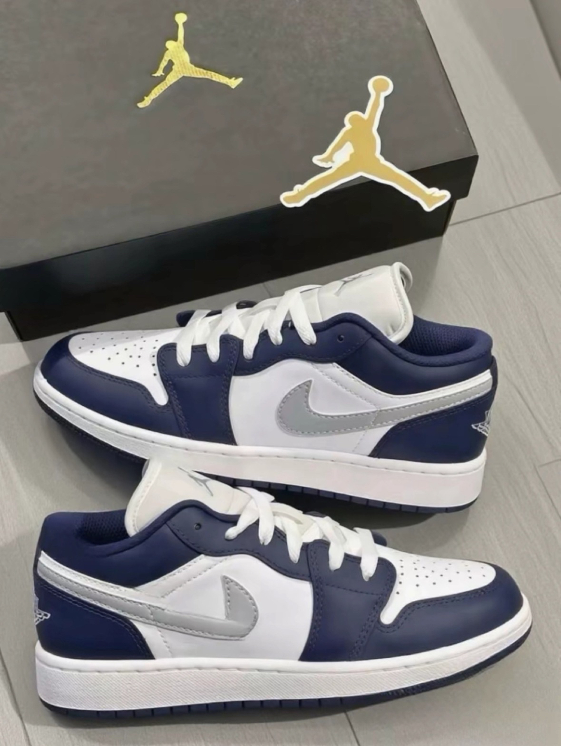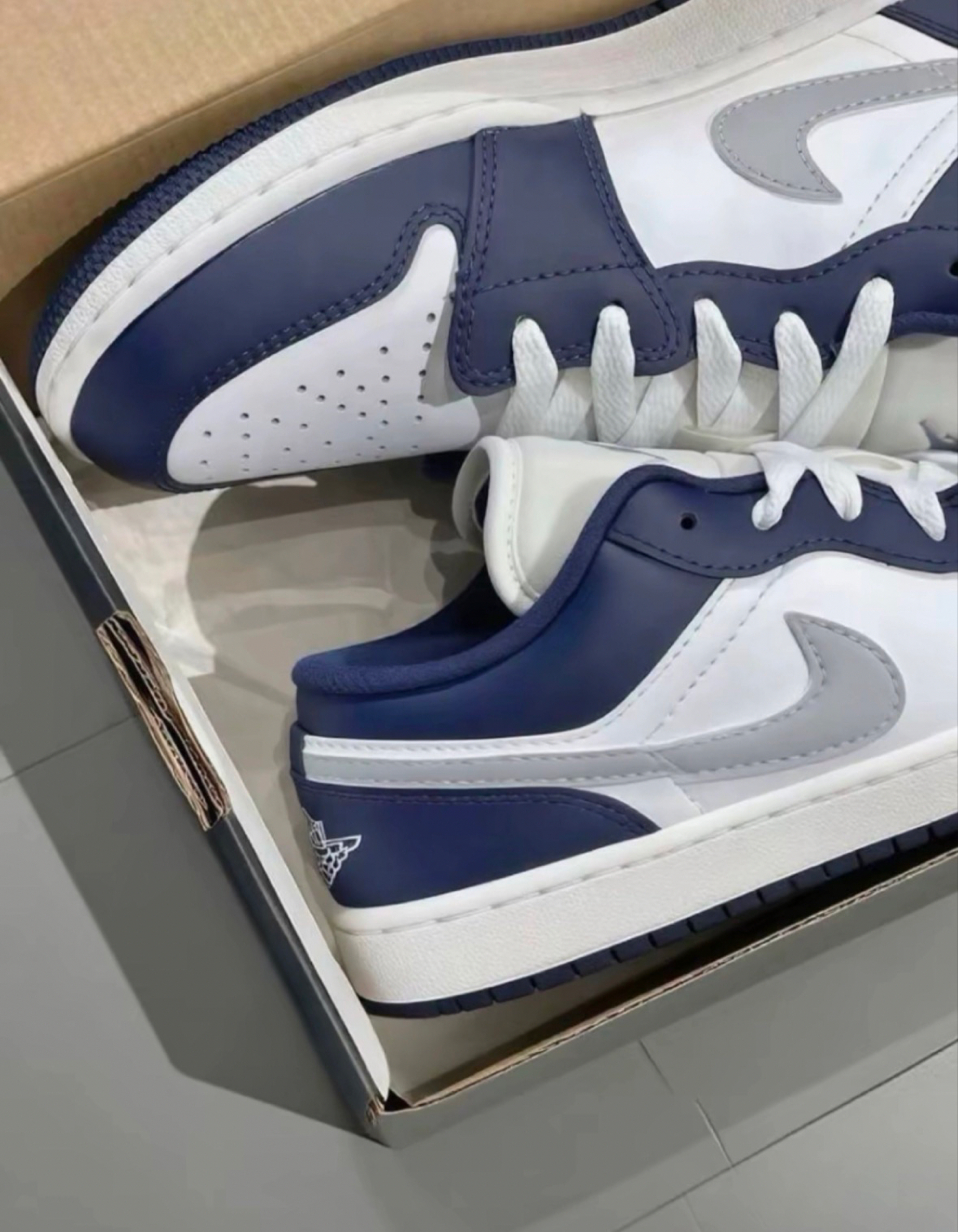 当经典AJ1低帮遇上藏蓝×灰白的高级撞色,每一步都是潮流宣言! 细腻皮质质感拉满,上脚舒适又吸睛,日常出街、运动休闲都能轻松驾驭。 无论是搭配工装裤耍酷,还是配牛仔裤走简约风,它都能让你在人群中脱颖而出。 别犹豫,穿上它,你就是街头最靓的仔,潮流玩家必备款,入手即赚!