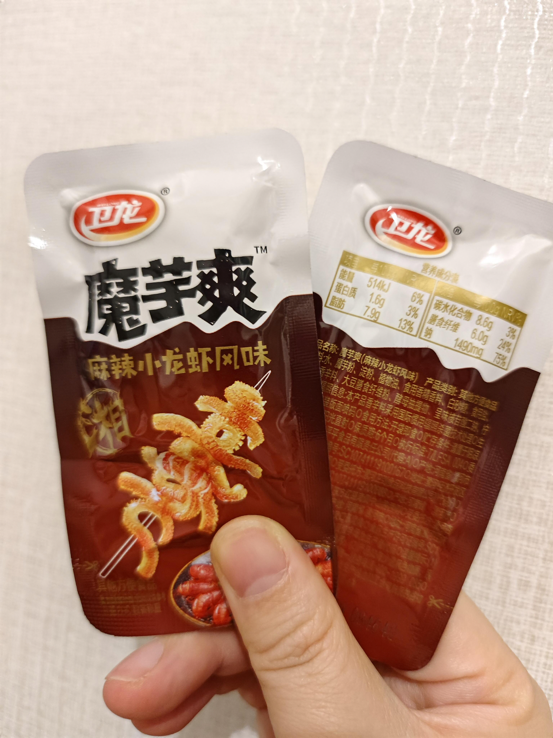 宝子们,卫龙这麻辣小龙虾味魔芋爽真的绝了!一撕开包装,麻辣鲜香直往鼻子里钻,那味儿跟现炒的小龙虾有得一拼~ 魔芋爽QQ弹弹的,嚼起来贼带劲,每一口都裹满了麻辣酱汁,又辣又过瘾,后劲还带着小龙虾的鲜香,越吃越上头。 追剧的时候来几包,嘴巴根本停不下来;上班摸鱼来一包,瞬间唤醒味蕾。而且热量还不高,吃着没负担,简直是快乐星球的入场券,囤货必须按箱来,不然根本不够吃~