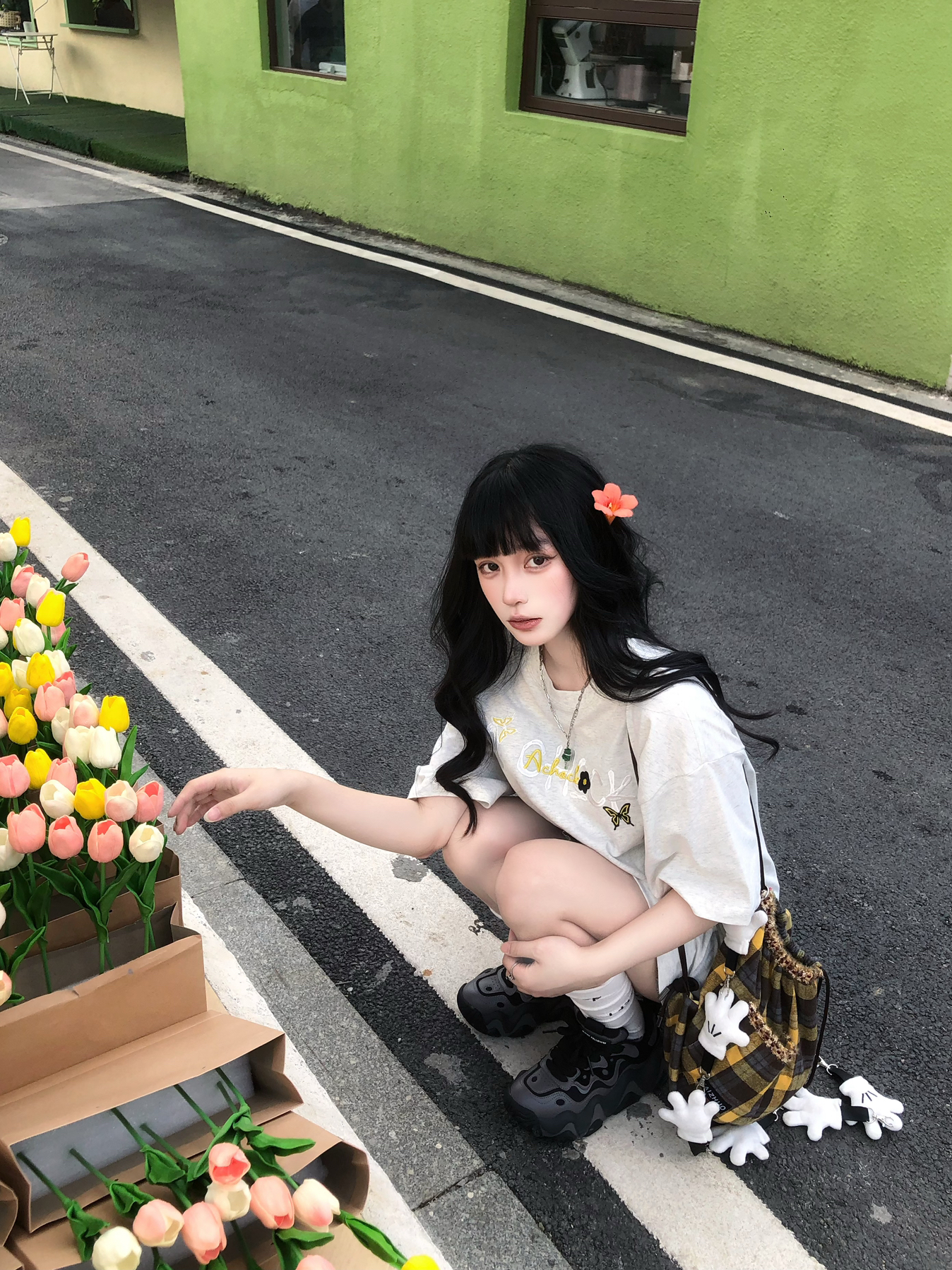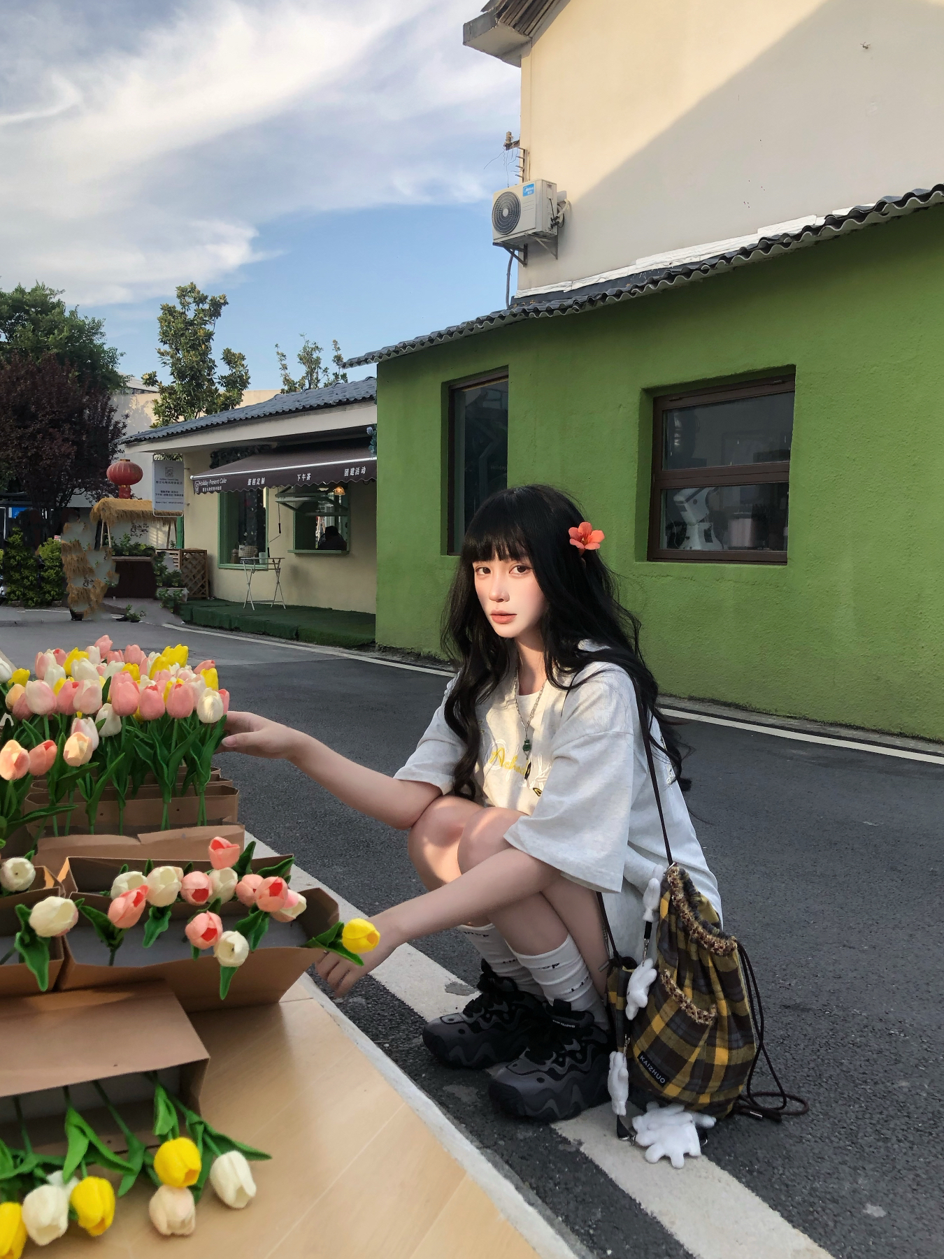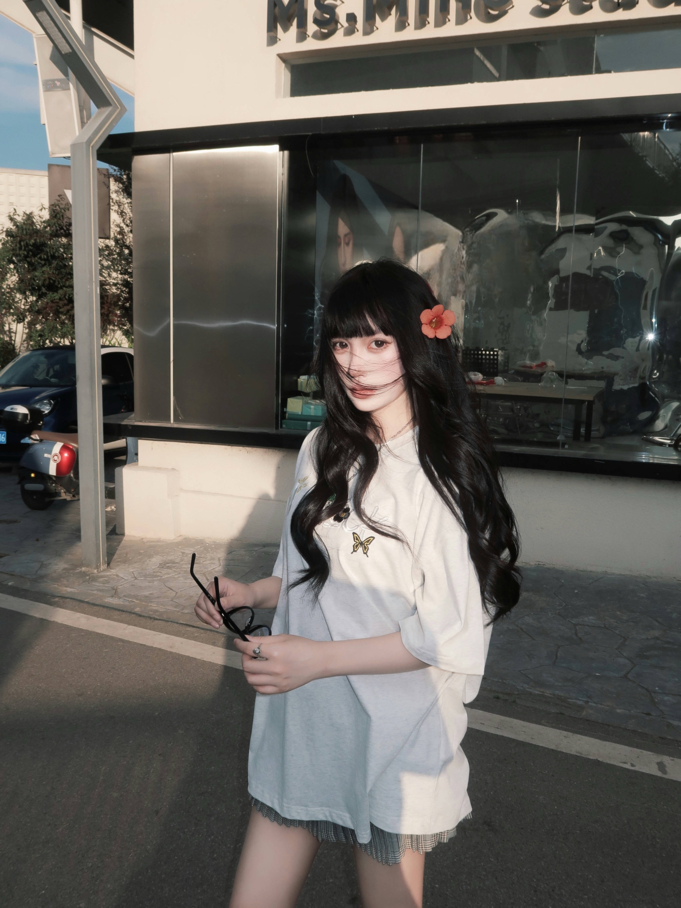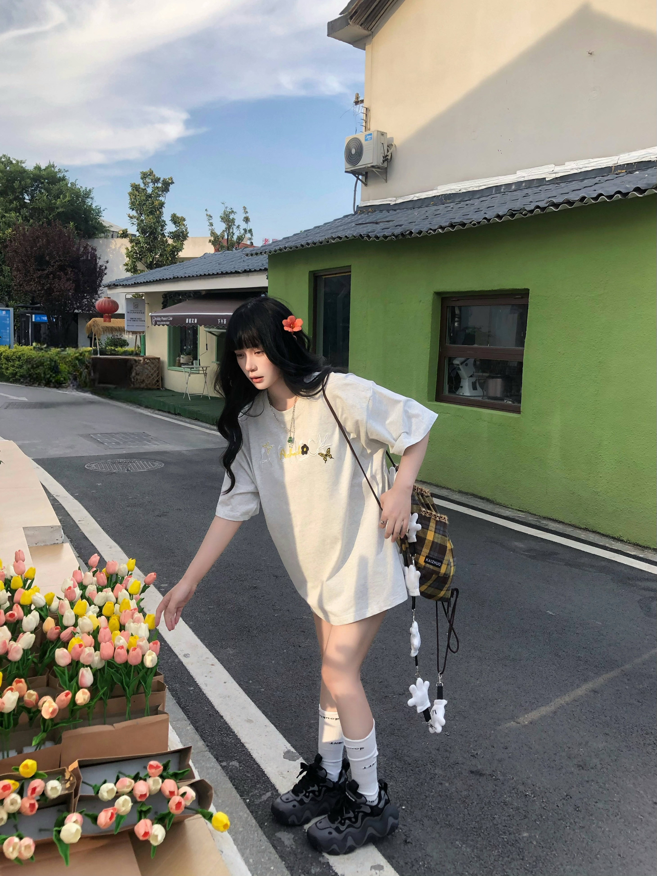 纯穿搭不吃建模版来咯🥹 简约的A chock美式灰T搭配百褶裙 我162穿L挺宽松的 满满的松弛感🥰 搭配格子包配饰很加分