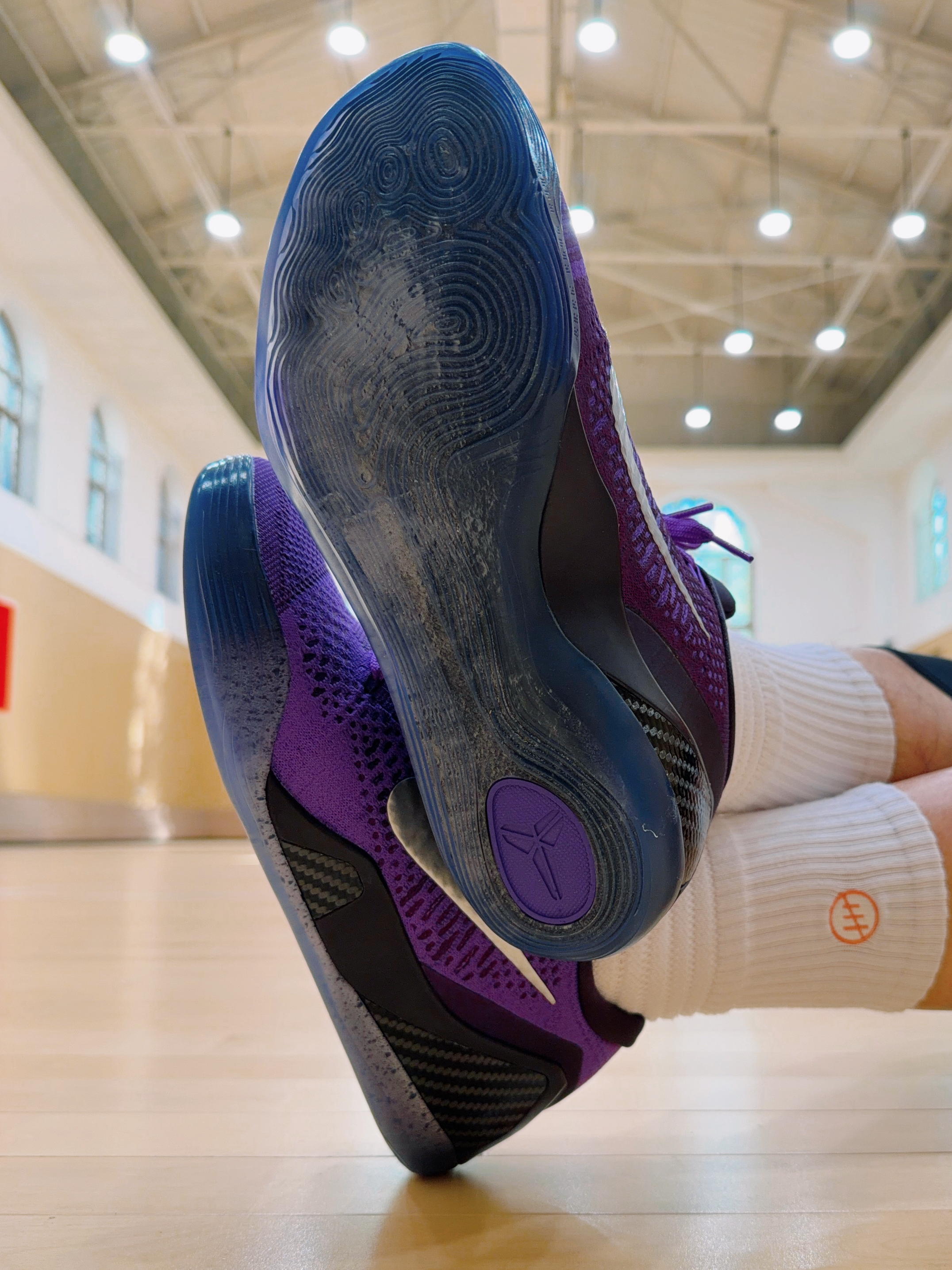 科比9的经典配色-月球漫步❗️就是我的宝藏复古球鞋 也是我今年最期待的复刻的科比球鞋 很有质感的紫色 最棒的就是月球一样的鞋底 透明水晶底在室内防滑还可以 包裹前段不错 后段比较一般 后跟有点刚性过剩 尺码正常