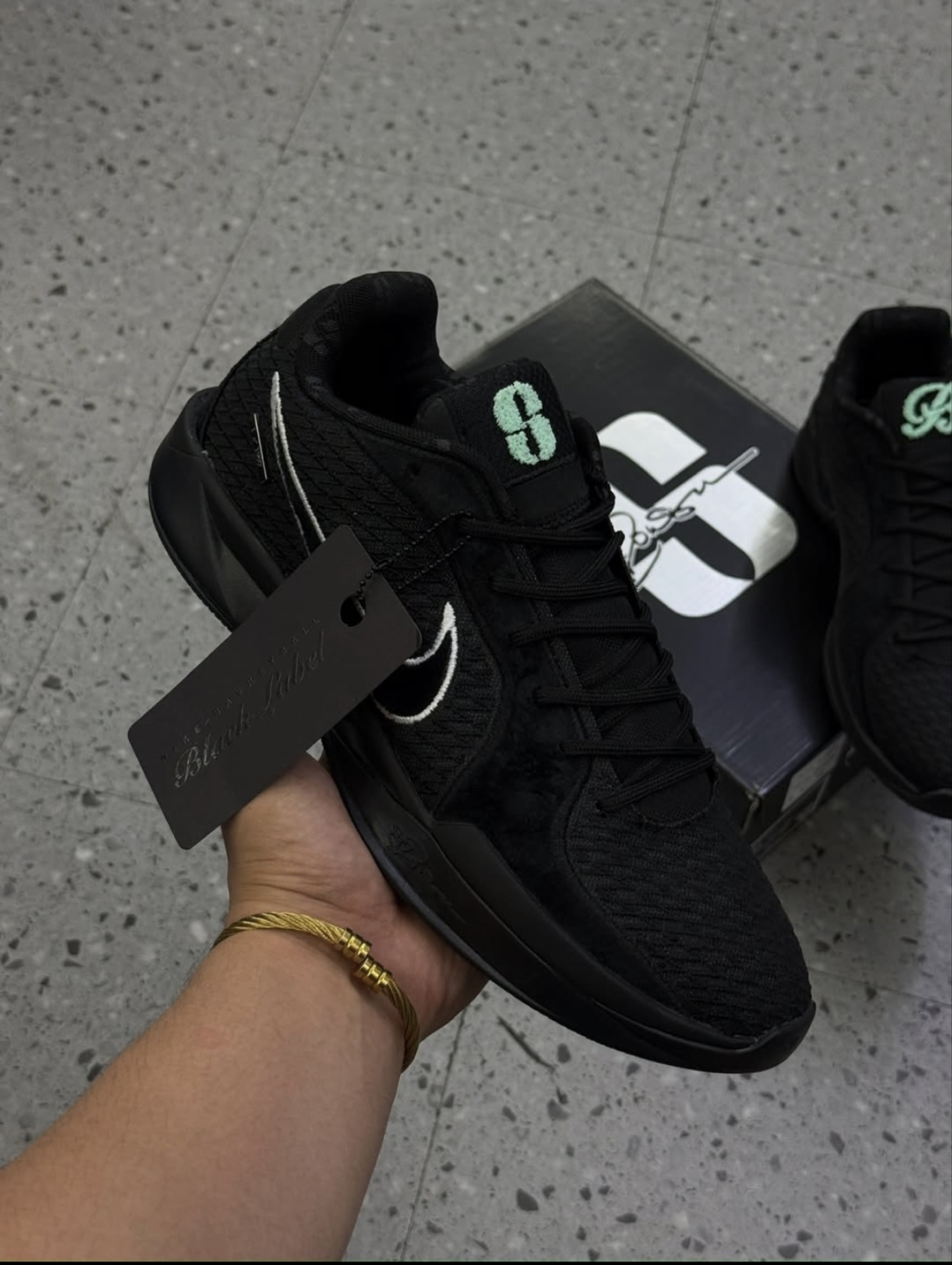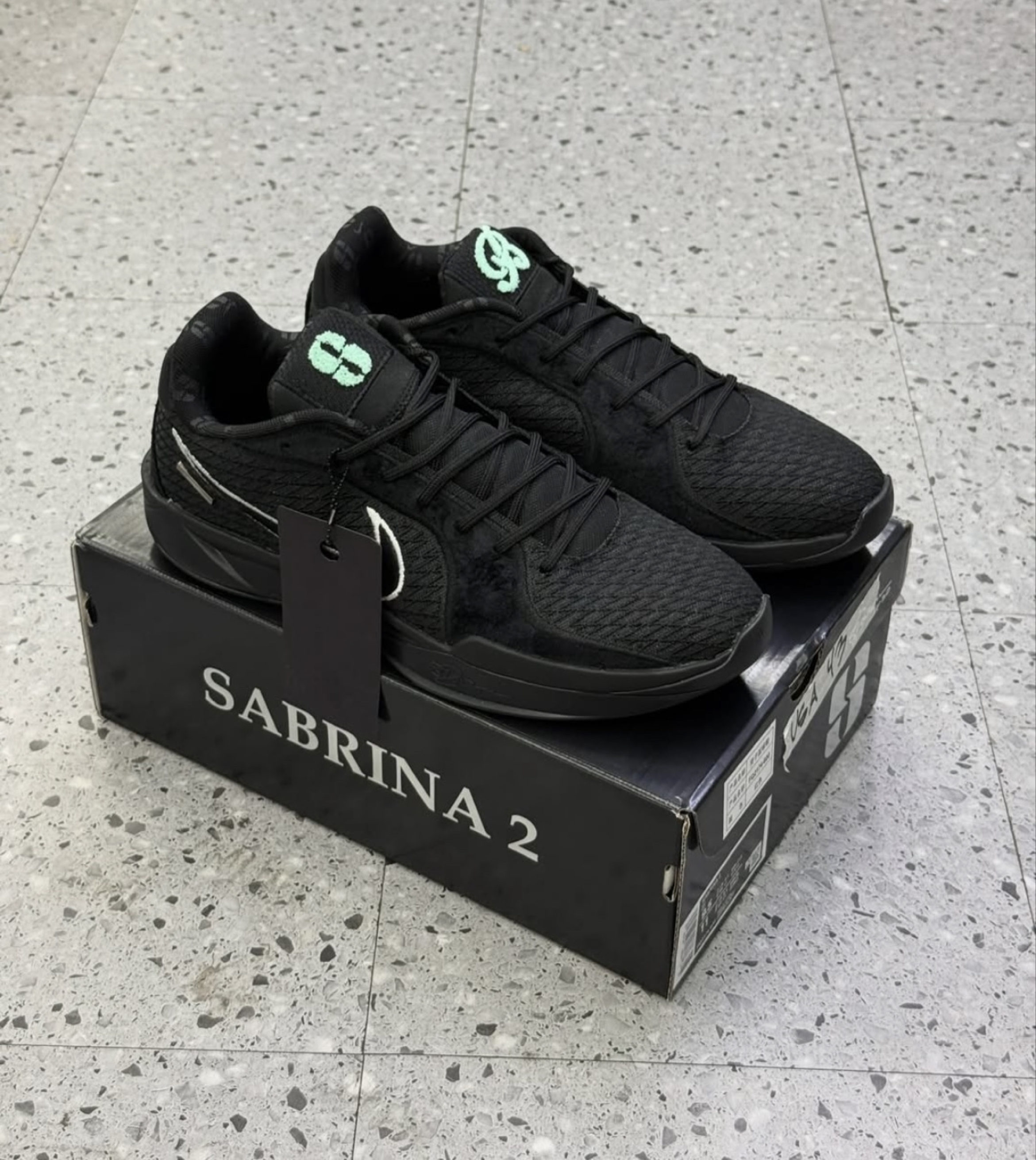 新入手的这双鞋太酷啦,纯黑主调高级感拉满,鞋舌上的薄荷绿标志还很吸睛,不管是搭配休闲装还是运动风,都能轻松出彩,爱了爱了~