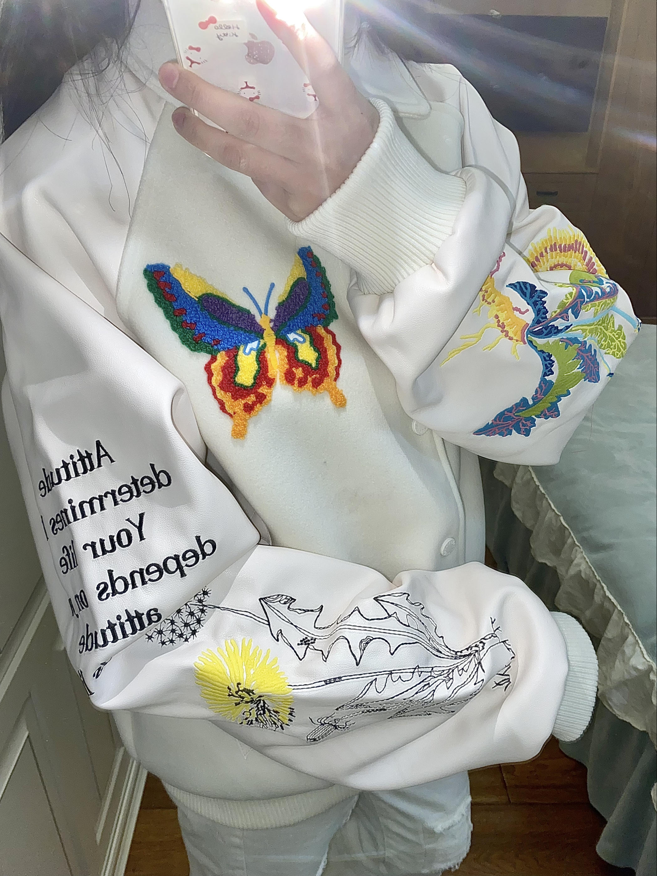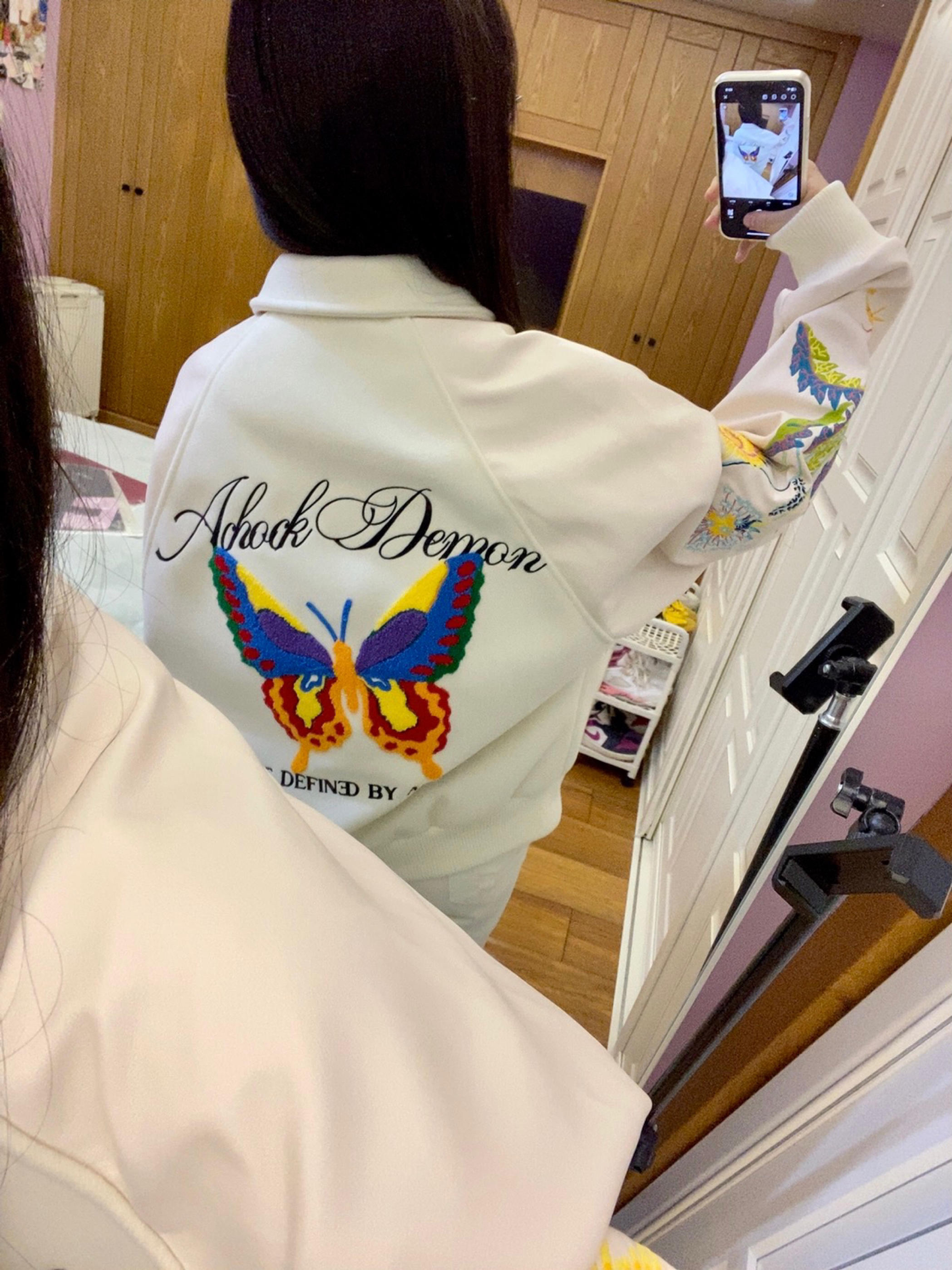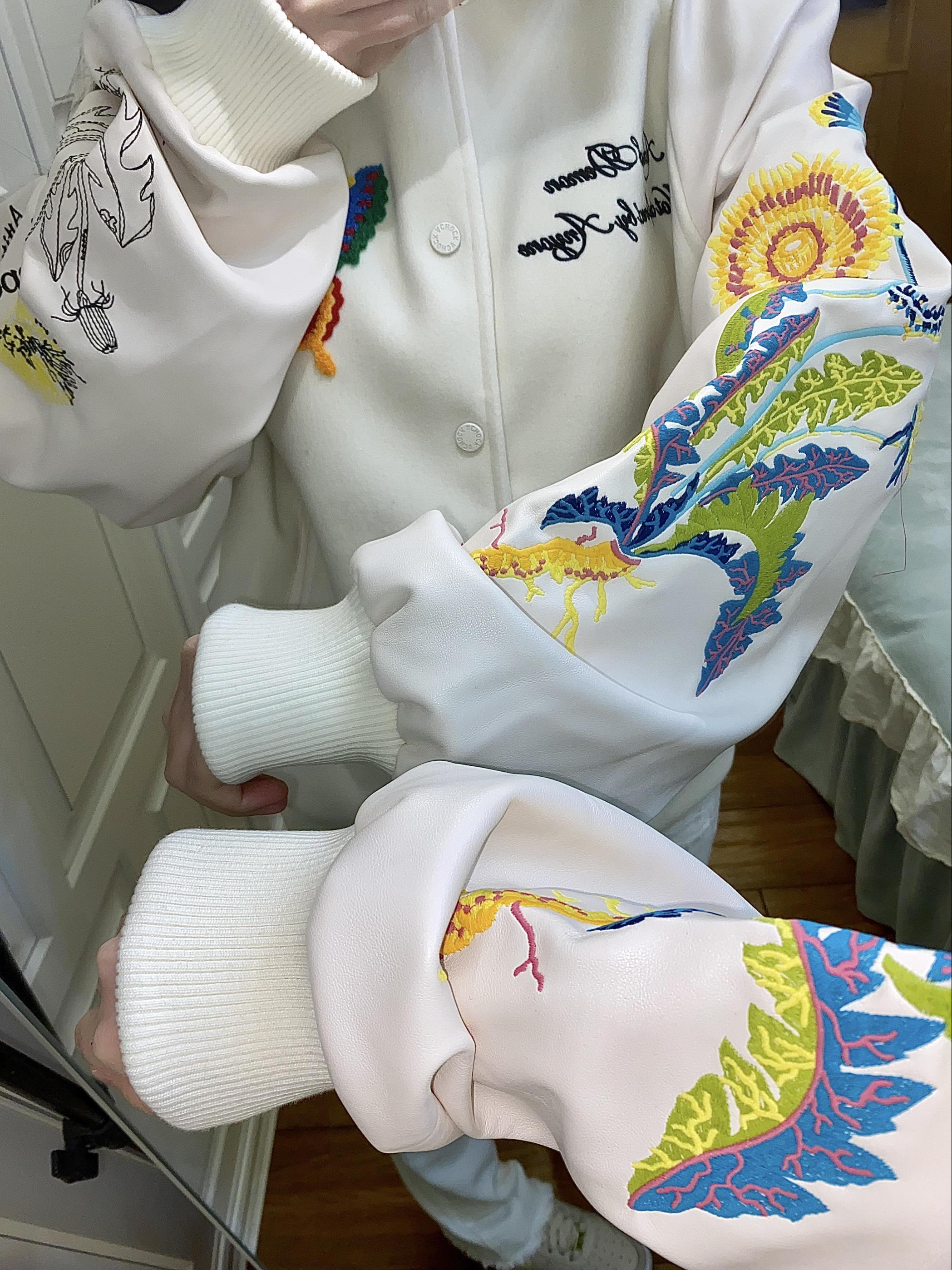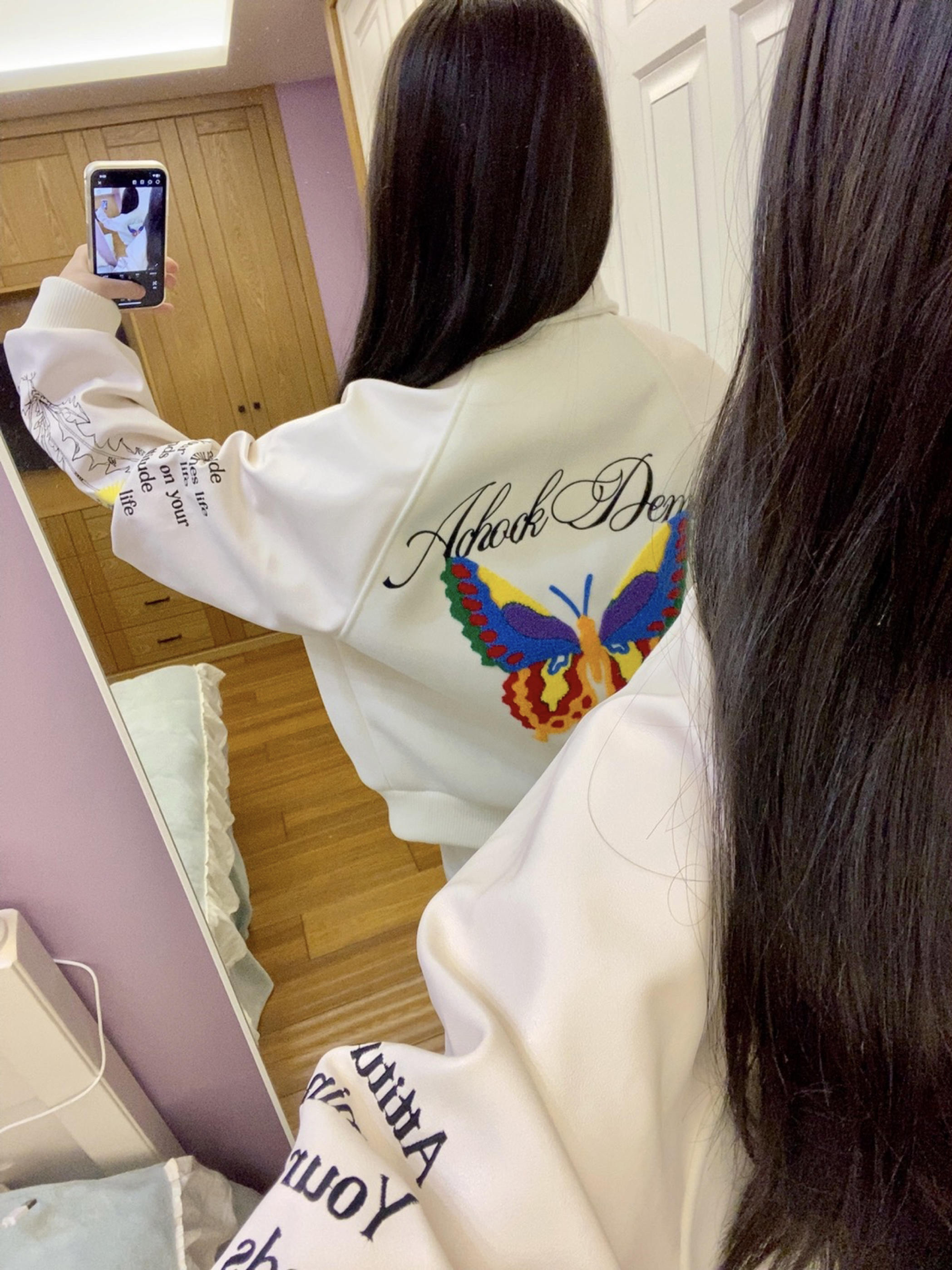 今日份穿搭分享来啦! 又是一套米白色系穿搭 这件棒球服真的很好看! 刺绣做的都很高级 色彩搭配也很好看 我就随便搭配了一条白色牛仔裤! 根本盖不住棒球服的风采哈哈哈