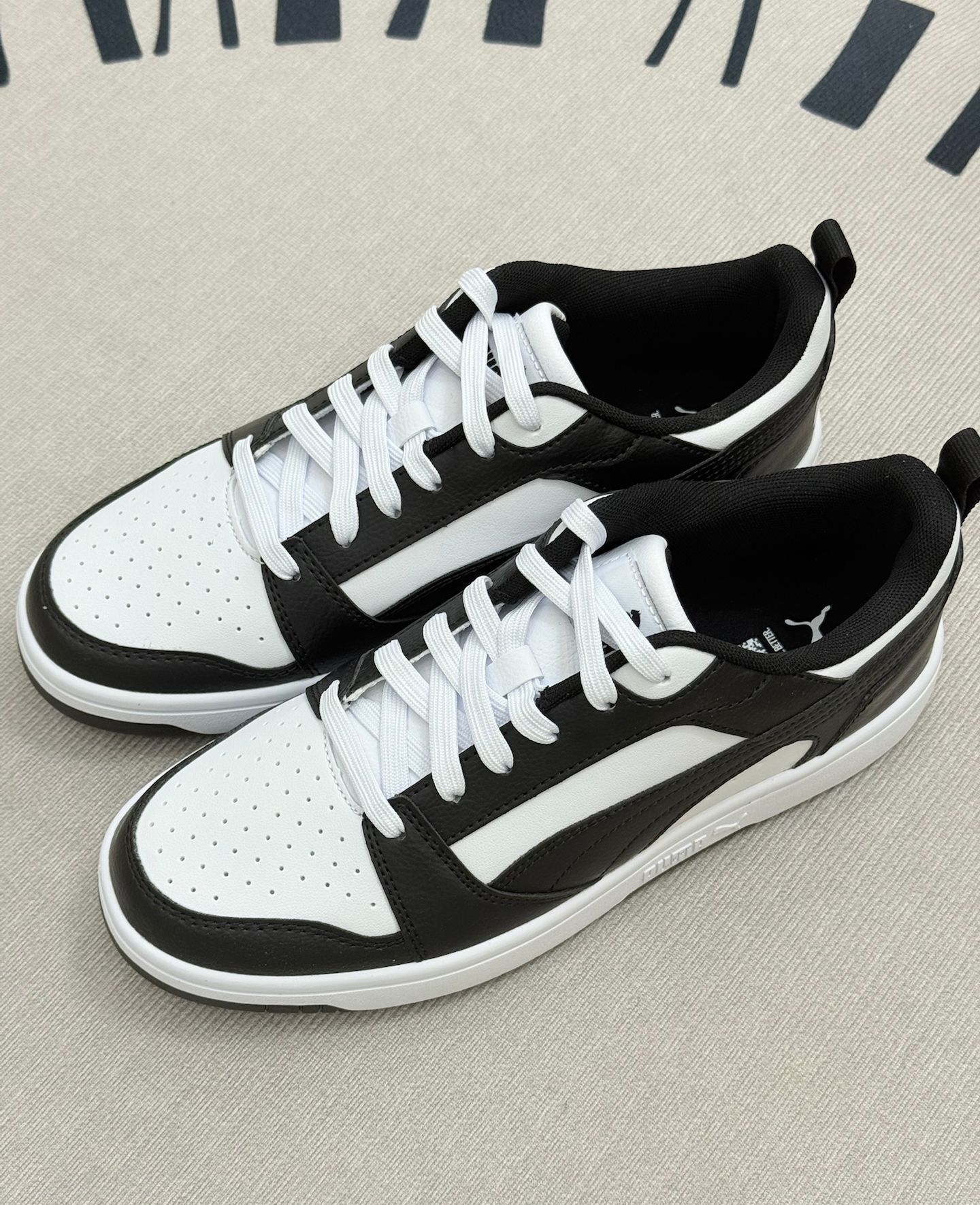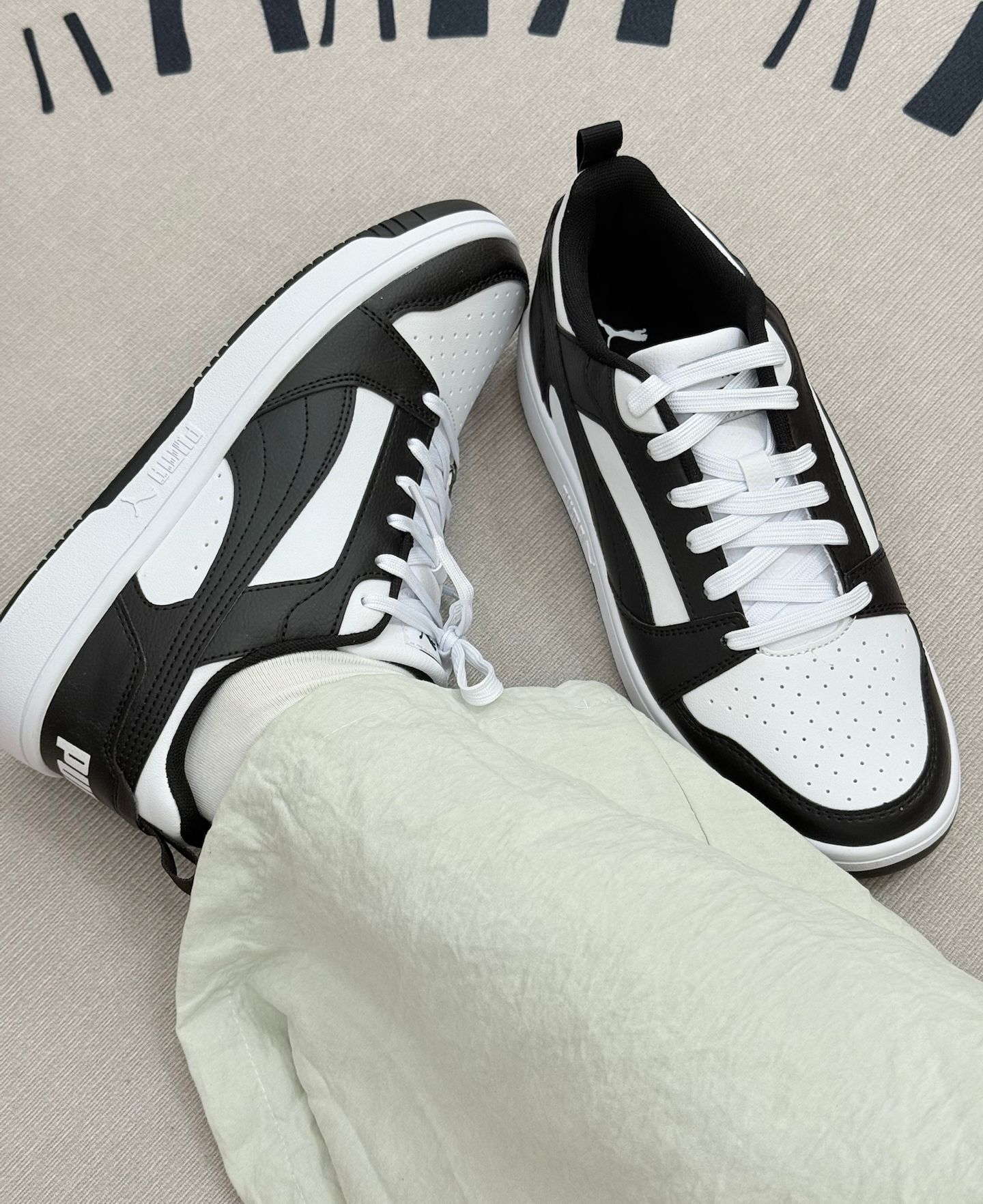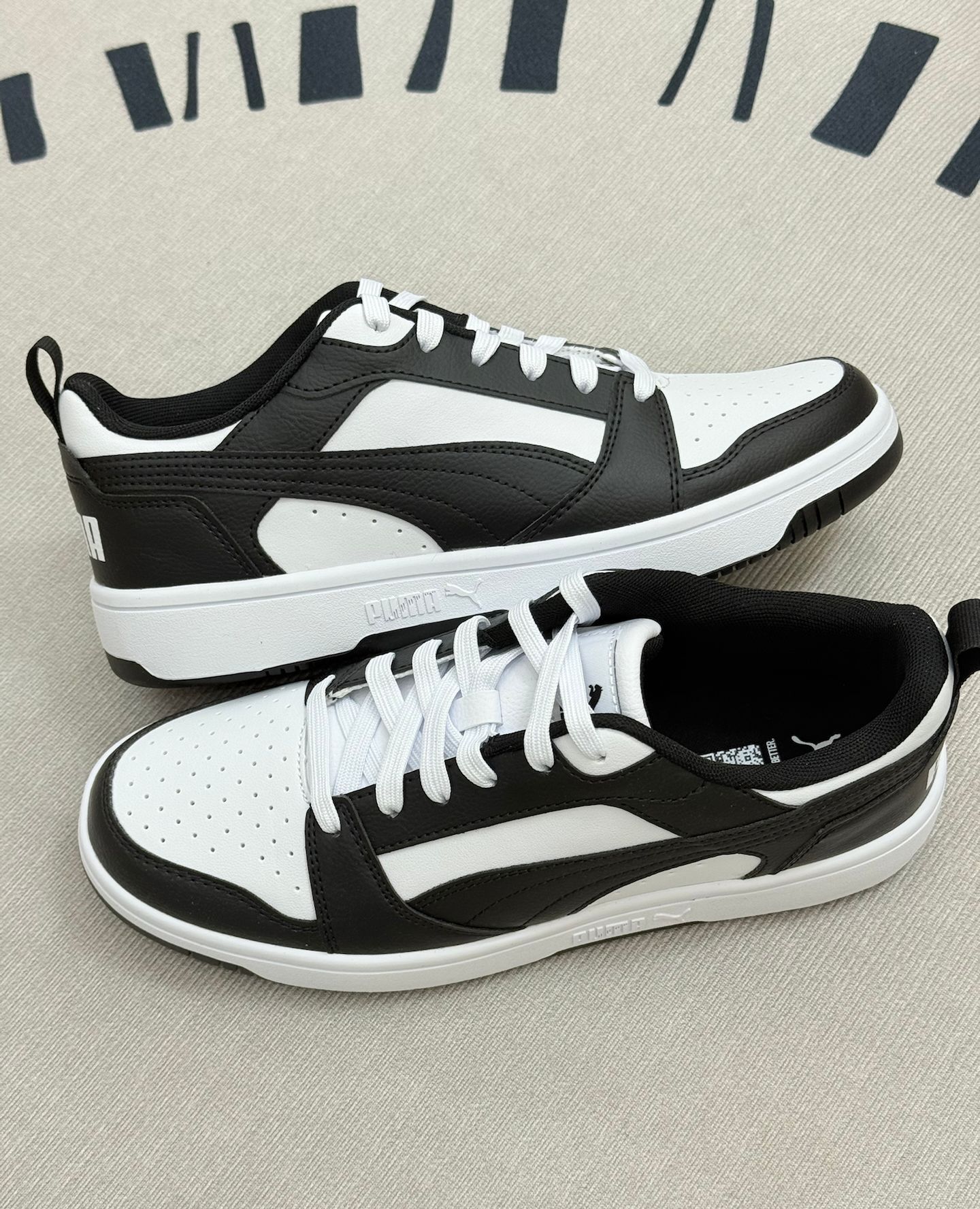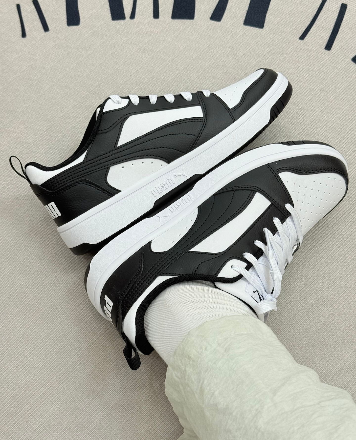 这双PUMA板鞋,黑白配色挺经典的,日常搭配休闲裤、牛仔裤都还不错👖 穿了一段时间,说说真实感受。它的皮质鞋面看着挺利落,透气性一般,夏天穿久了会有点闷脚,建议搭配薄袜子或者春秋季穿会舒服些。鞋底的脚感,算不上软弹,日常走路还行,长时间逛街或者快走,会觉得有点硬,对舒适度有高要求的可能得考虑下。 鞋型比较百搭,但是尺码有点迷,我平时穿其他鞋的码数,这双得选小半码,建议大家买的时候最好试试或者咨询...