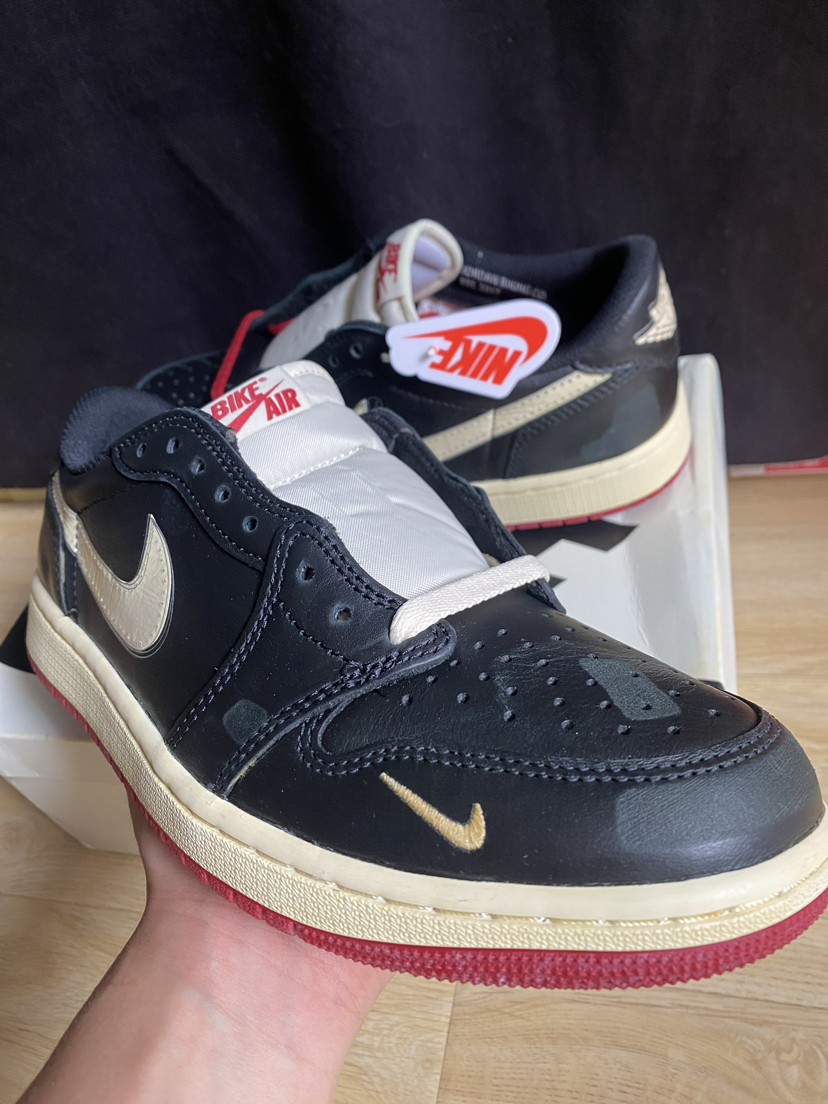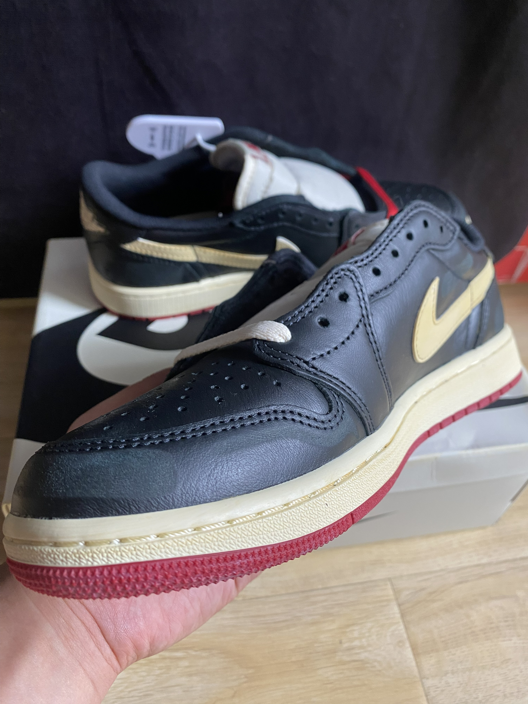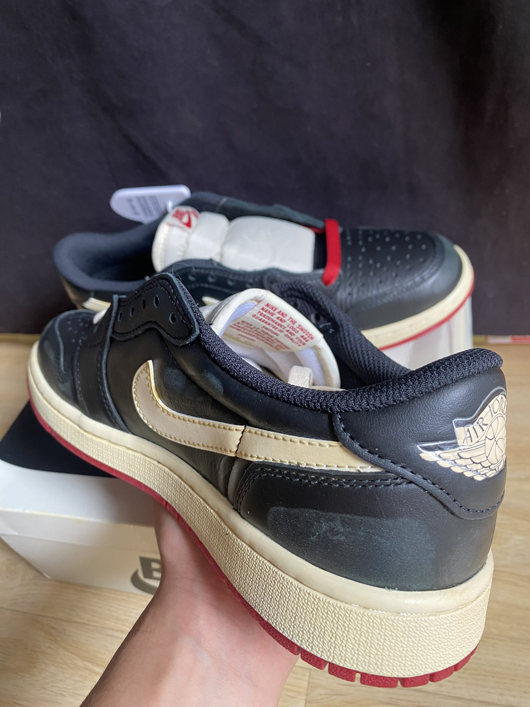 Nigel Sylvester x Jordan Air Jordan 1 Low OG Nitro "Better With Time" 低帮 复古篮球鞋 白黑红 鞋面材质:采用黑色翻毛皮搭配做旧效果,表面带有自然磨损痕迹,呈现复古风格。 细节设计:鞋舌和鞋垫处印有"Bike Air"标识,内侧印有"Jordan Biking Co., Est.2017"字样;鞋盒盖印有小轮车图案。 ...