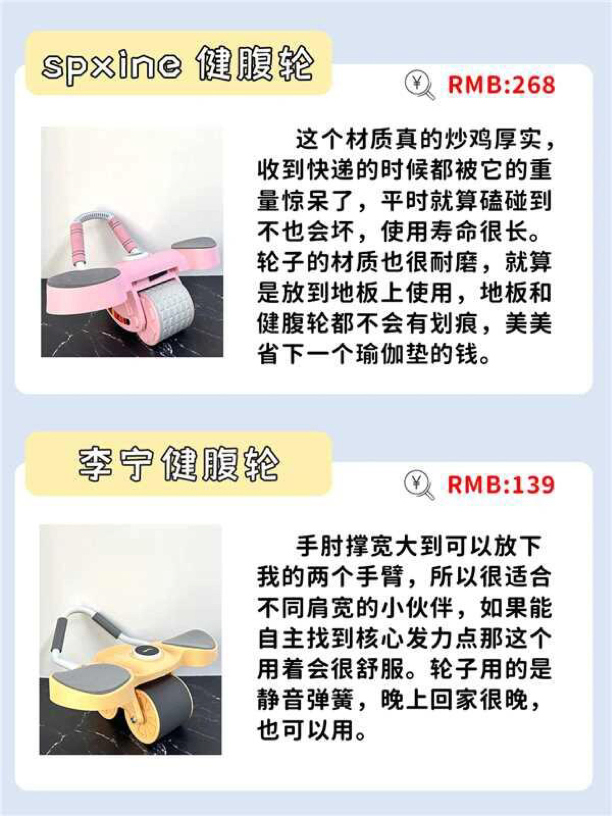 本篇笔记关联了李宁 自动回弹 卷腹 瘦肚子 健腹轮 LJSQ559 淡灰色、SPXINE 肘撑 全刹车 健身 健腹轮 高级黑智能计数、机能 自动回弹 卷腹 四轮 减肥 瘦身 暴汗 健腹轮 SSL-5S-A 樱花粉 智能计数等商品,为用户提供真实的使用体验和购买参考。