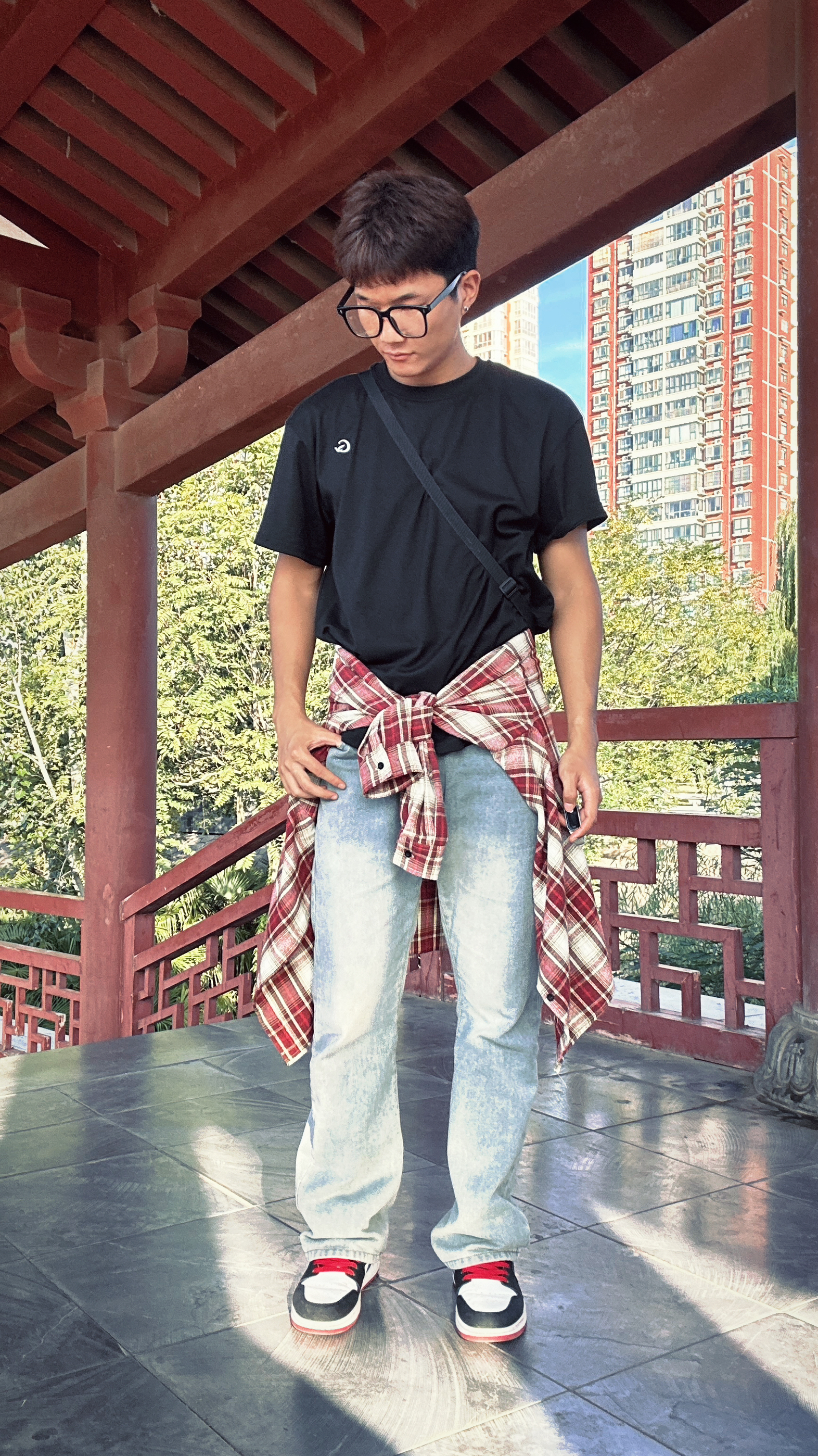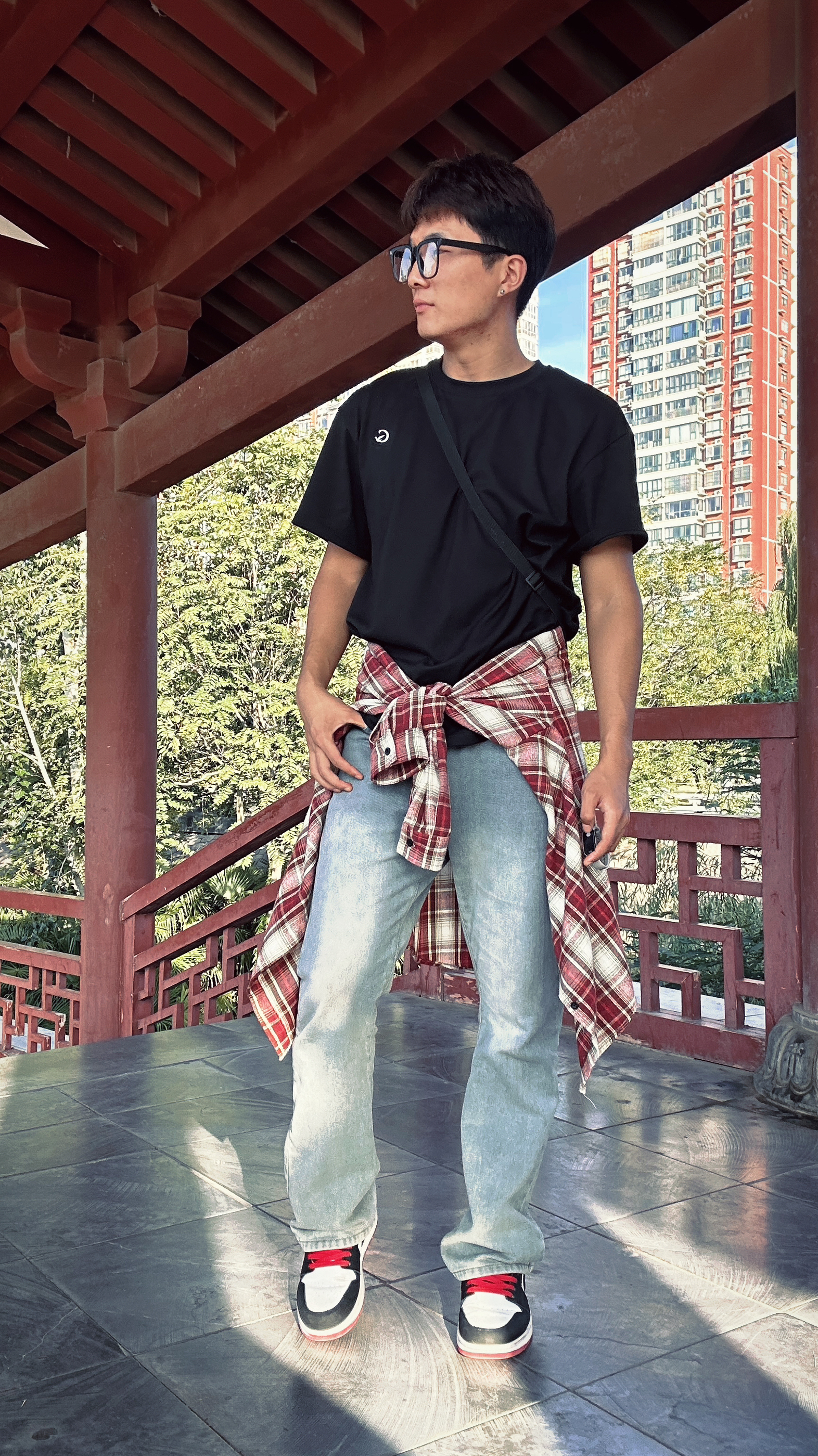秋季出游穿搭分享来了,牛仔裤配上红格子衬衫简约百搭看起来非常干净舒服,内搭可以是白色也可以是黑色,出游天太热可以将衬衫系到腰间也可以披在肩上看起来都是很帅的,再搭配一个黑色小挎包装一些日常物品整体搭配起来更加简单自然干净清爽