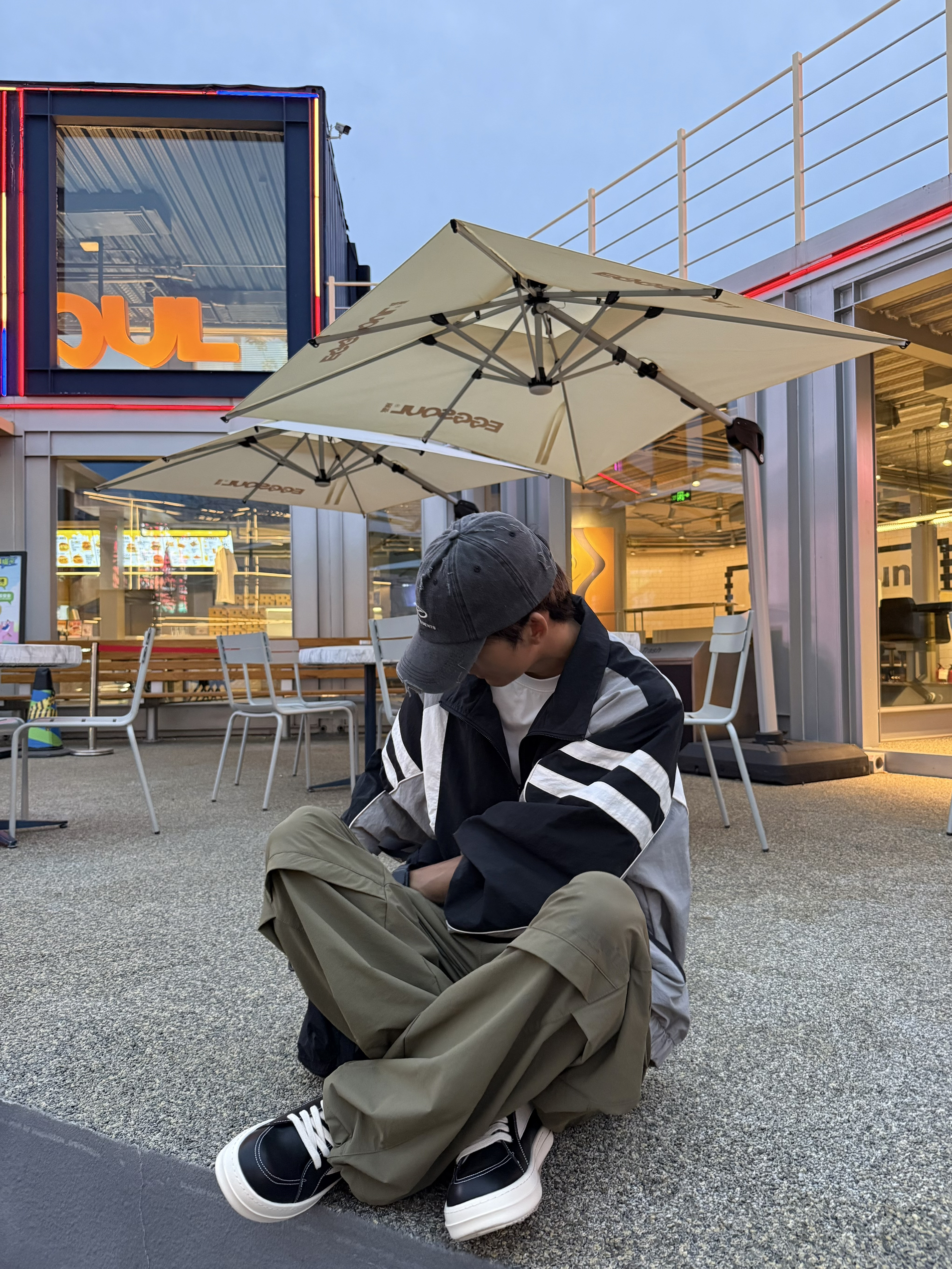喜欢这种惬意又悠闲的街道氛围😌 下午放了个小假 跑出来逛逛那种小物件的三金店 今天黑灰拼接上衣搭配上绿色伞兵裤🆒 好久没穿这种拼接的衣服了 远看上去还蛮有设计层次的 临走时抓了双黑白的板鞋 喜欢这种百搭又不费力的选择 发现偶尔来这种小来小趣的店逛一逛 还蛮治愈人的💌