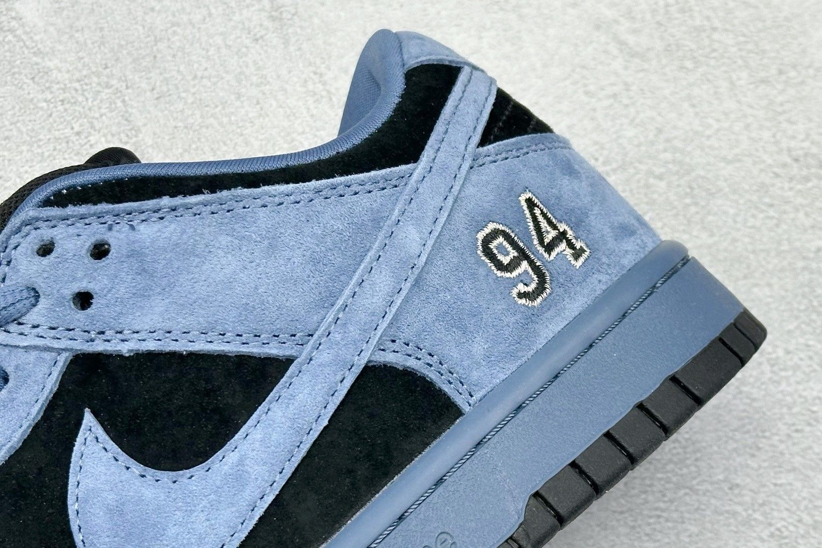 当Supreme的街头锋芒遇上Nike Dunk Low的复古底蕴,这双联名鞋款以蓝黑麂皮重构潮流表达。细腻麂皮材质赋予鞋身高级质感,黑蓝撞色迸发视觉张力;鞋侧“94”刺绣暗藏年份巧思,后跟Nike标识经典回溯,鞋底Supreme字样彰显联名身份。从滑板文化的根源到街头穿搭的前沿,它凭借复古轮廓与先锋细节,成为潮流爱好者的风格密钥,每一处针脚都在演绎街头文化的传承与突破。