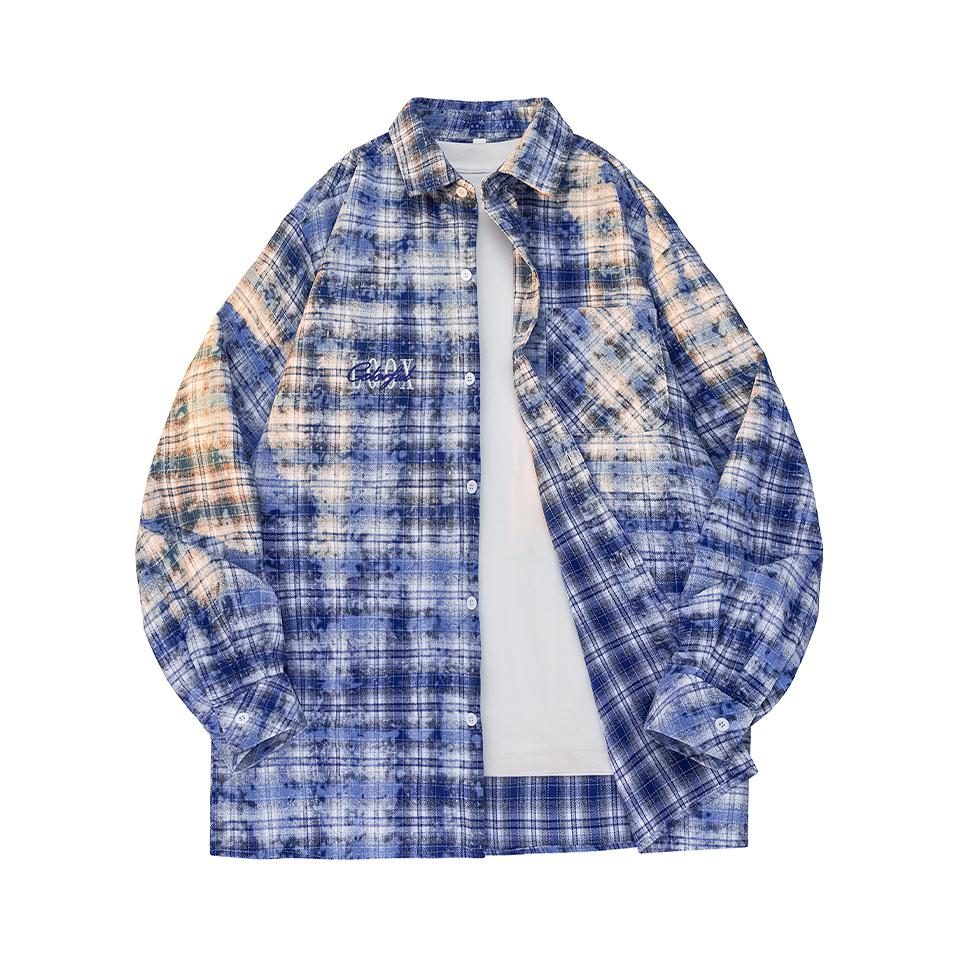 这件衬衫好酷 蓝格拼接的元素炒鸡适配版型挺硬挺的 我是搭配了一条牛仔裤 这样一身 休闲又时尚