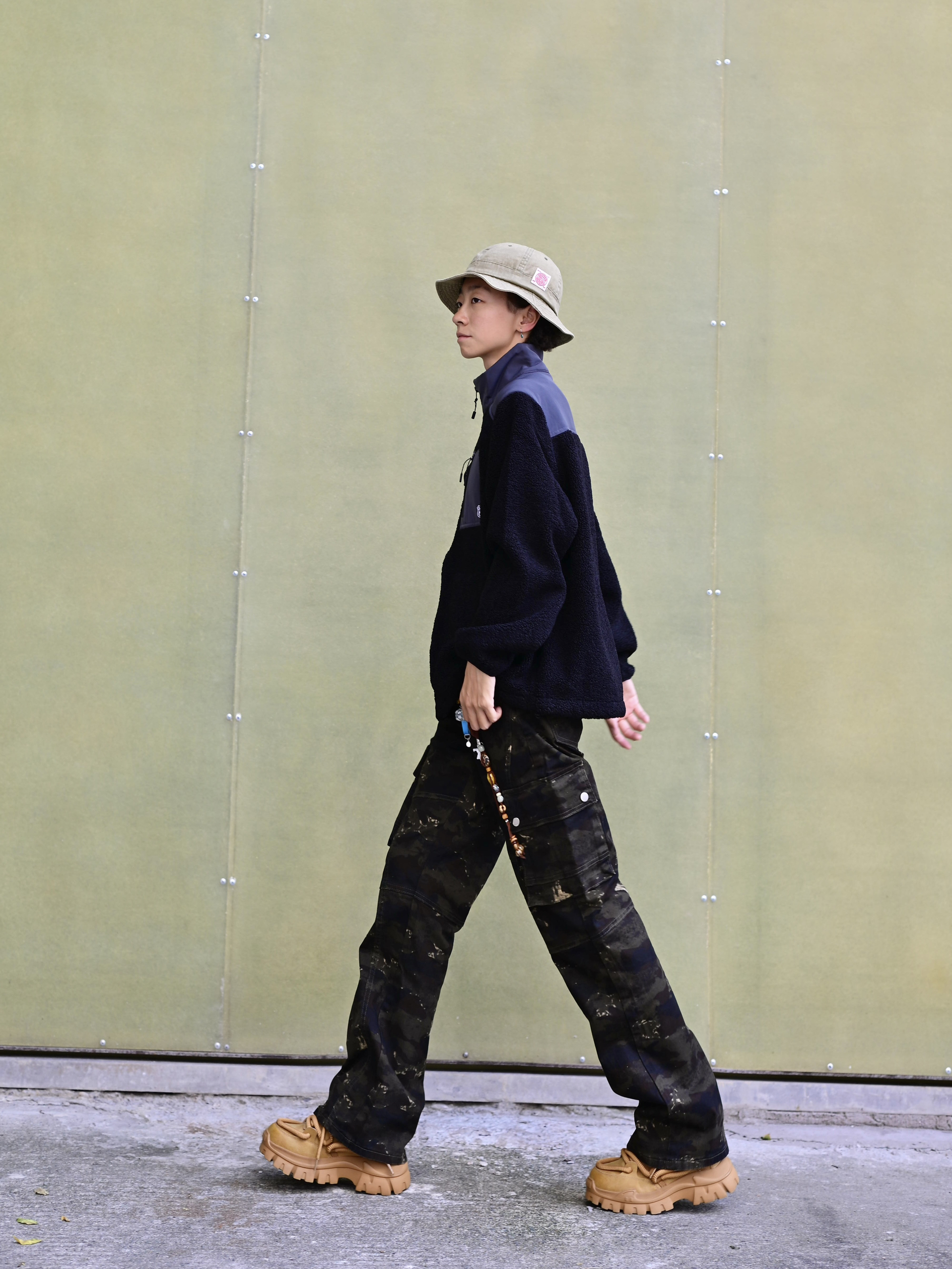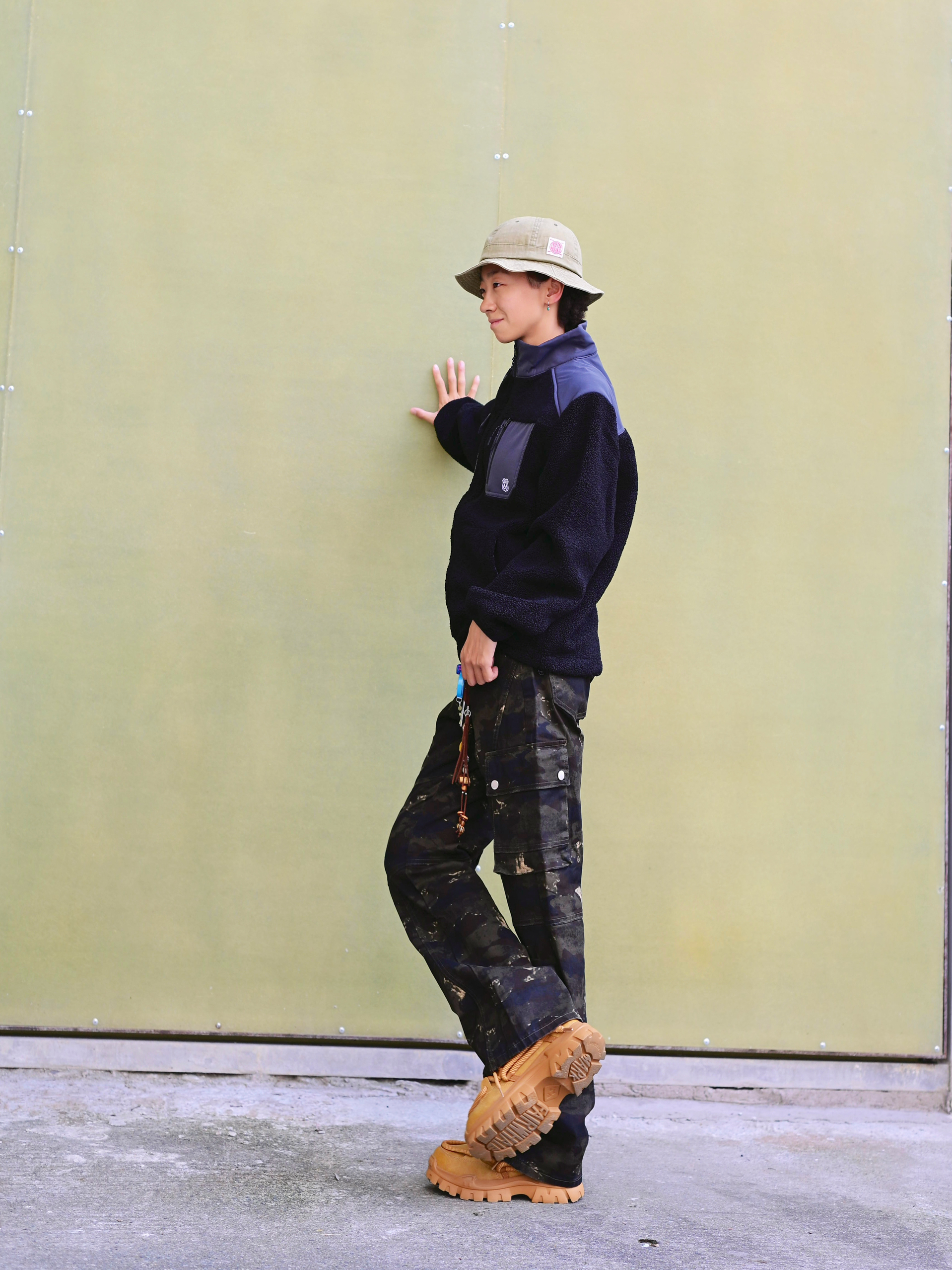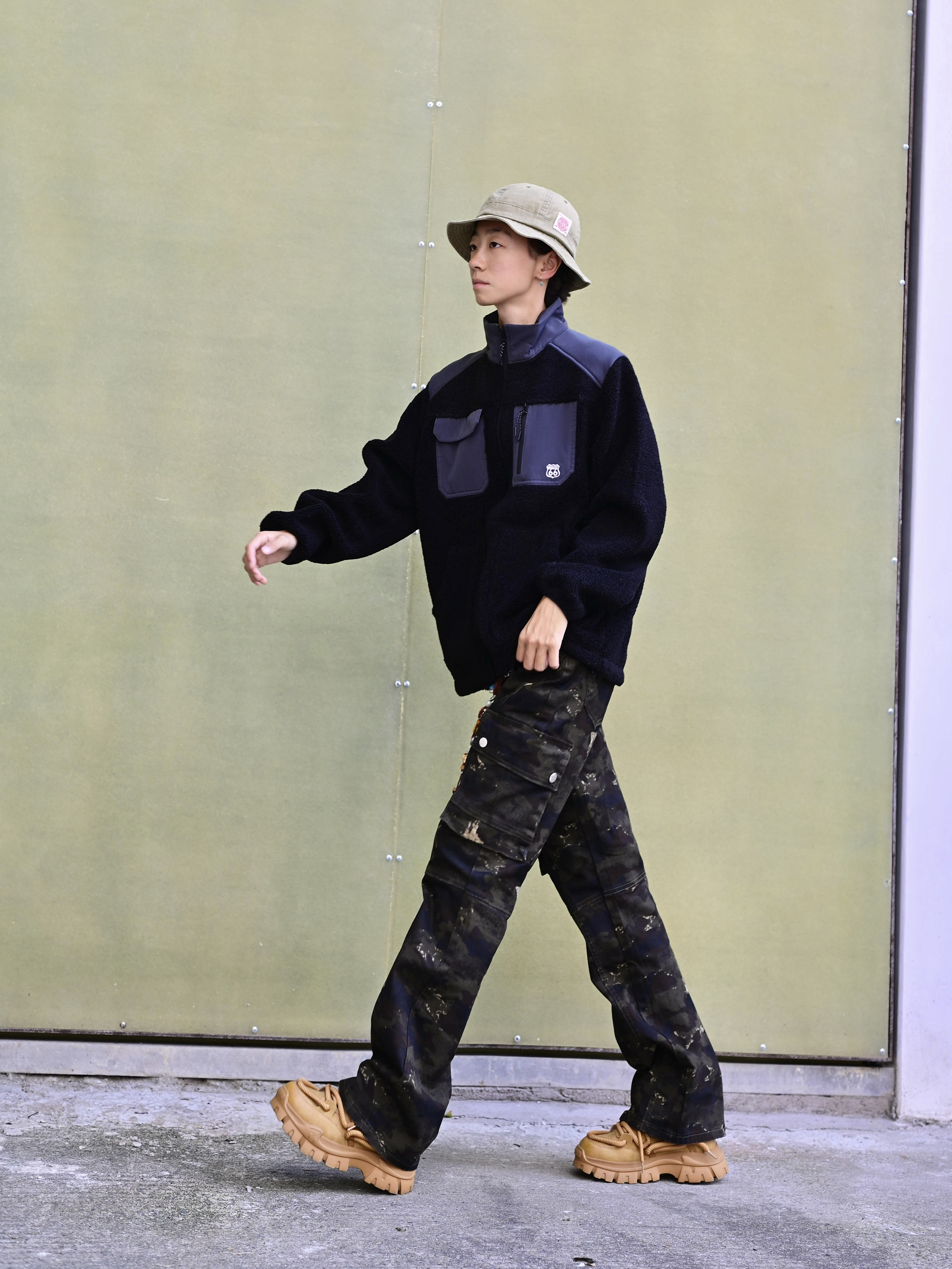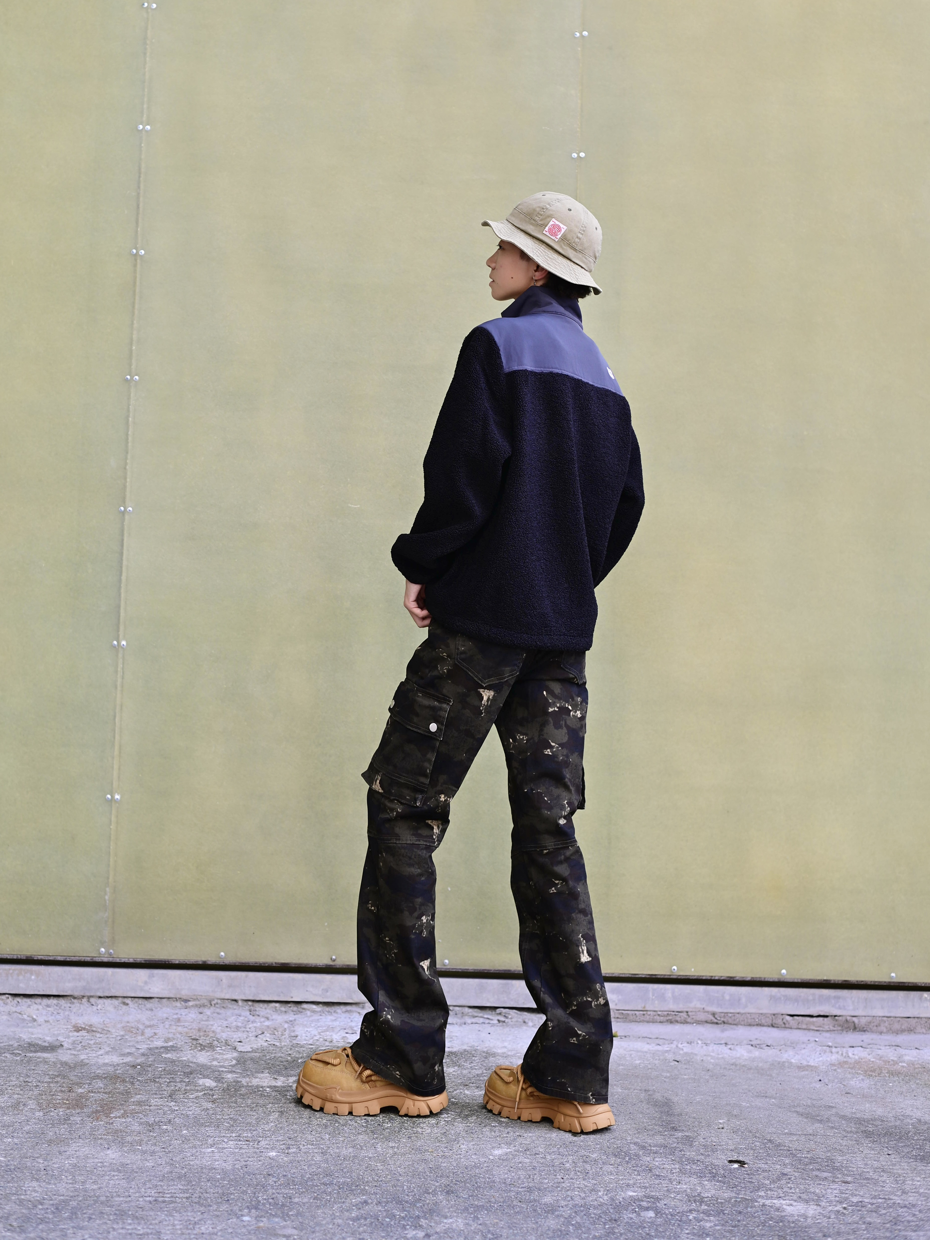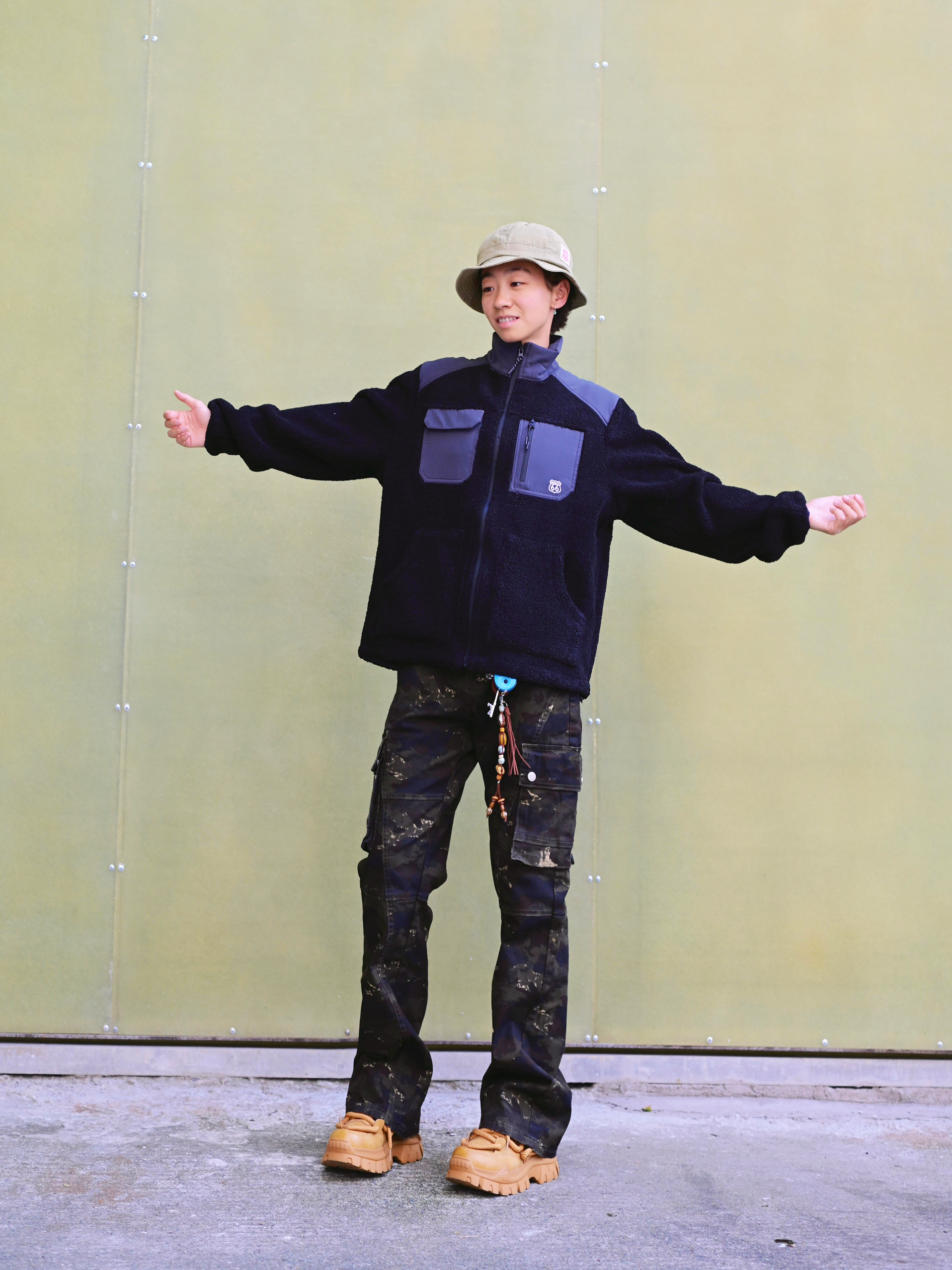 欢迎进入哇哇哇的穿搭分享频道 172CM|55KG 👔:m👖:m|👟:39码 福州终于是降温啦~ 潮酷出街 今日份上身新因素XINYINSU SS25弯刀牛仔裤 将森系军事风与美式高街复古巧妙融合 宽松微喇的剪裁对身材友好耶✌️ 迷彩图案自带户外属性 搭配黑色毛绒外套与卡其色厚底工装靴 Gogogo出街!