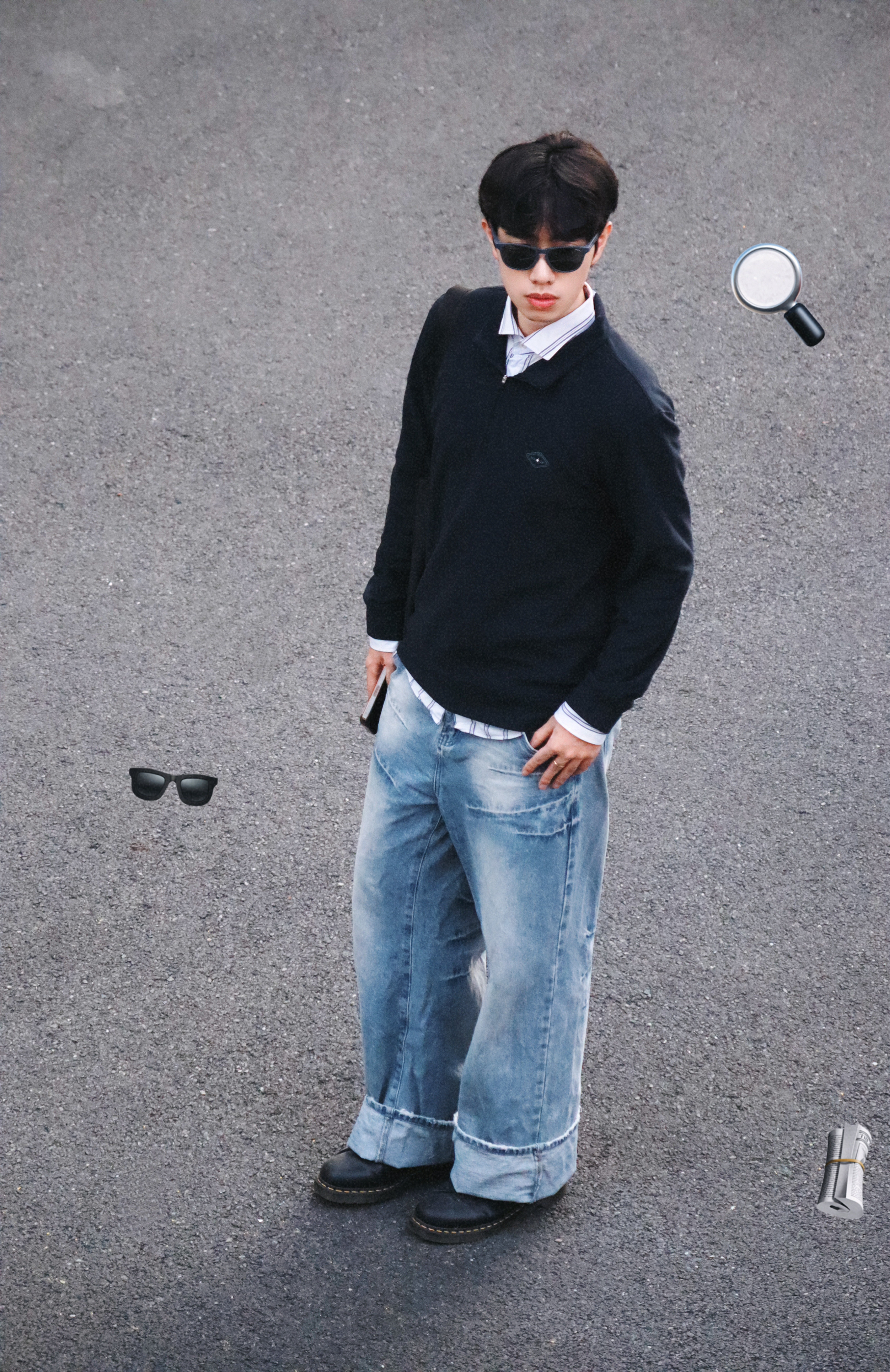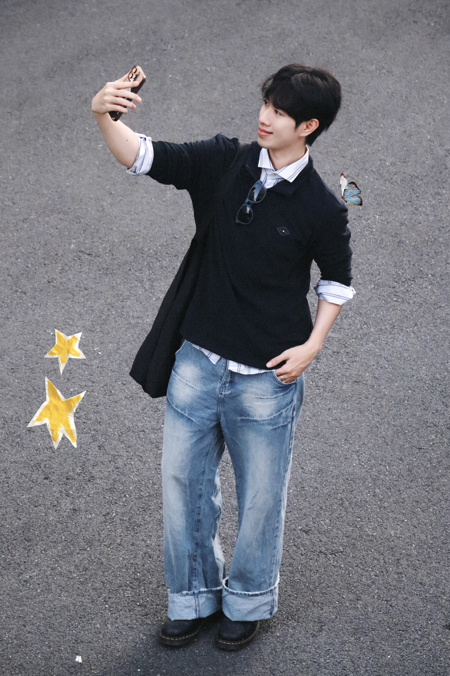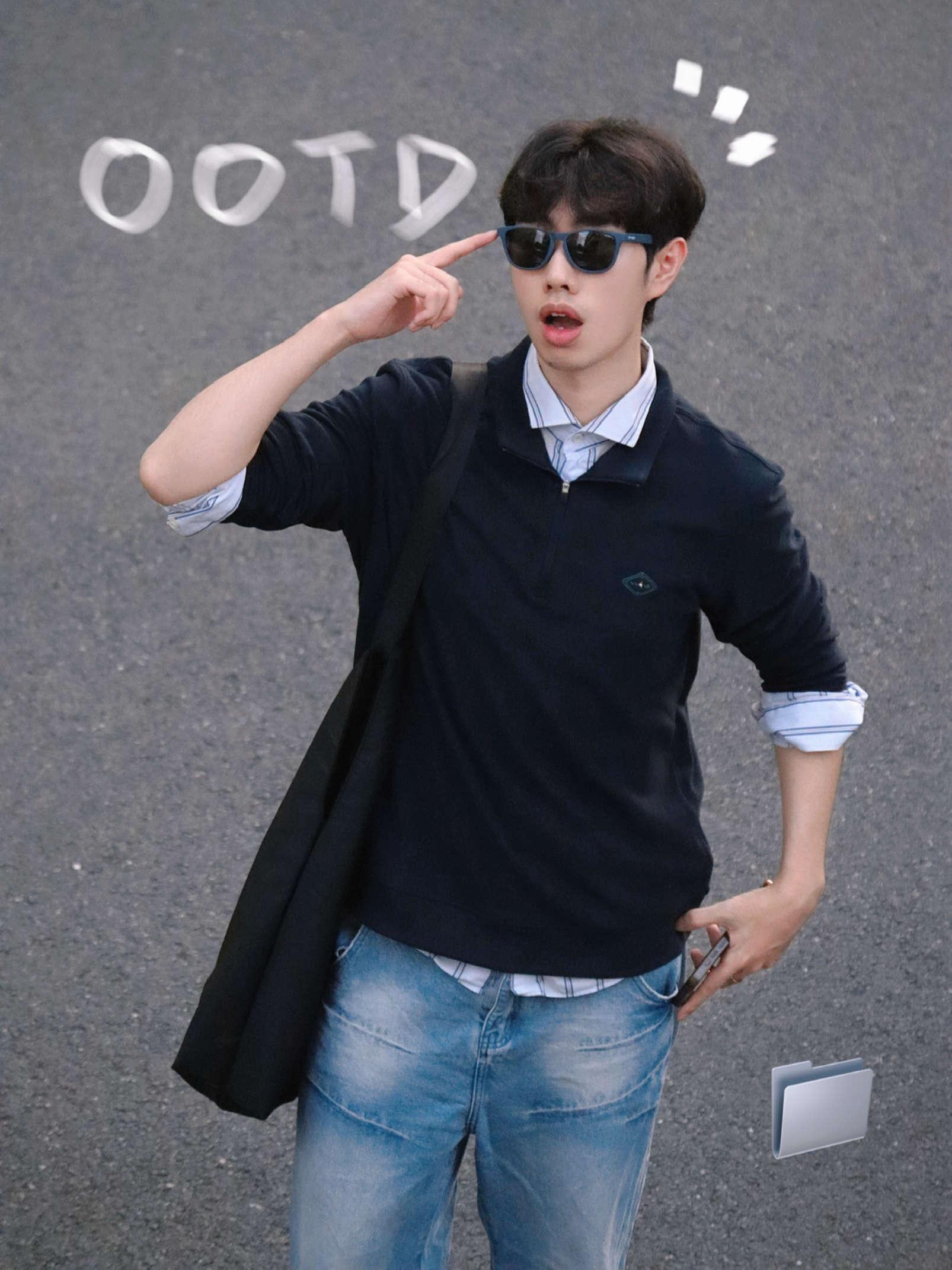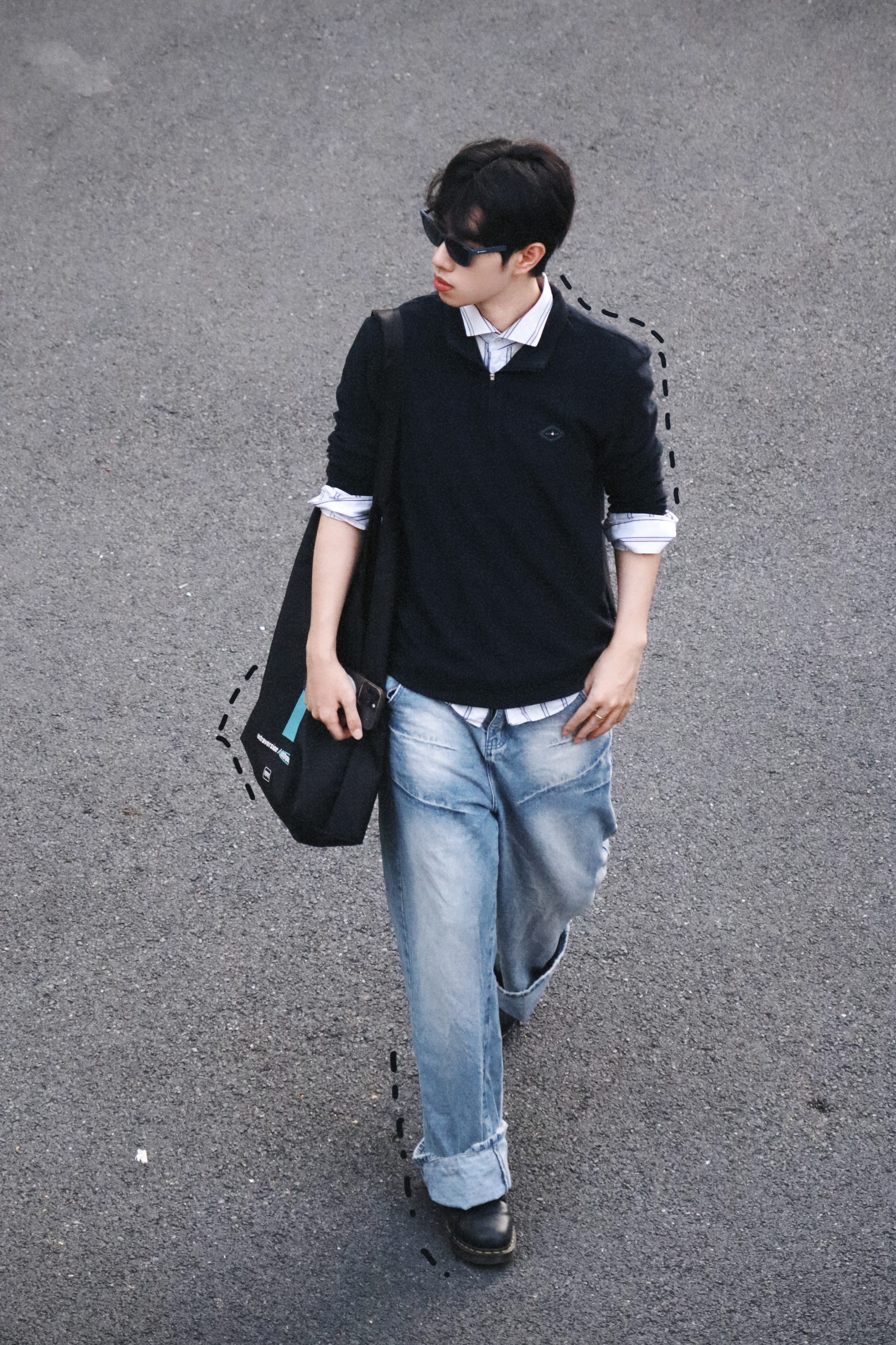 🧍♂️拿捏主场的街头vibe✅明星既视感焊在身上,出游炸街全靠它!😎 👔上衣:黑色半拉链翻领卫衣叠穿条纹衬衫,层次感UP UP‼️卫衣的复古感和衬衫的斯文感碰撞💥墨镜一挂,点缀再加韩风📷 👖下装:做旧阔腿牛仔裤裤脚可以卷起来,复古味儿蹭蹭冒🔥这种宽松版型对腿型还蛮友好的👌 👞鞋子:马丁靴硬朗带感,和整体风格适配度MAX‼️复古男孩的标配单品🖤 💼配饰:i人包,装得下穿搭小心机,也装得下出...