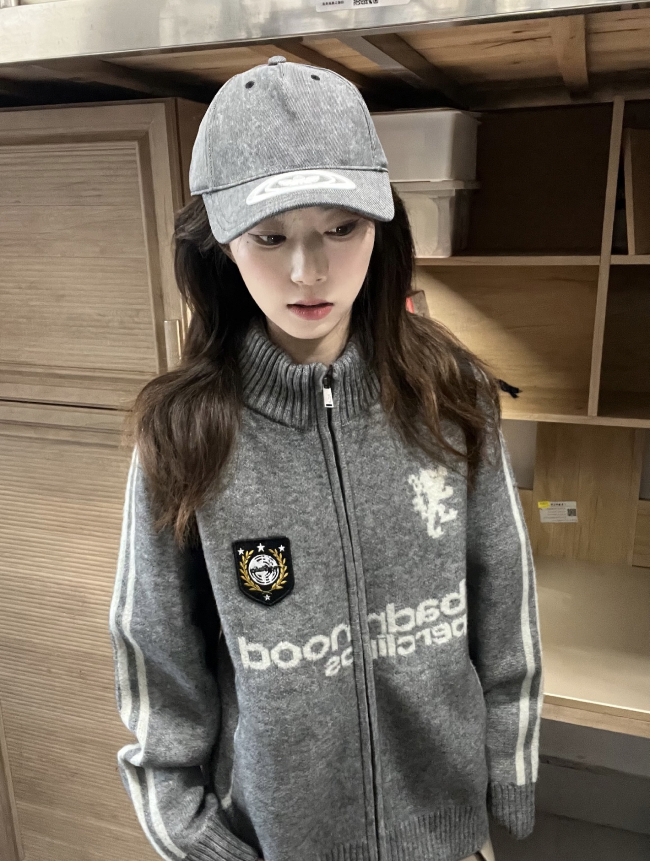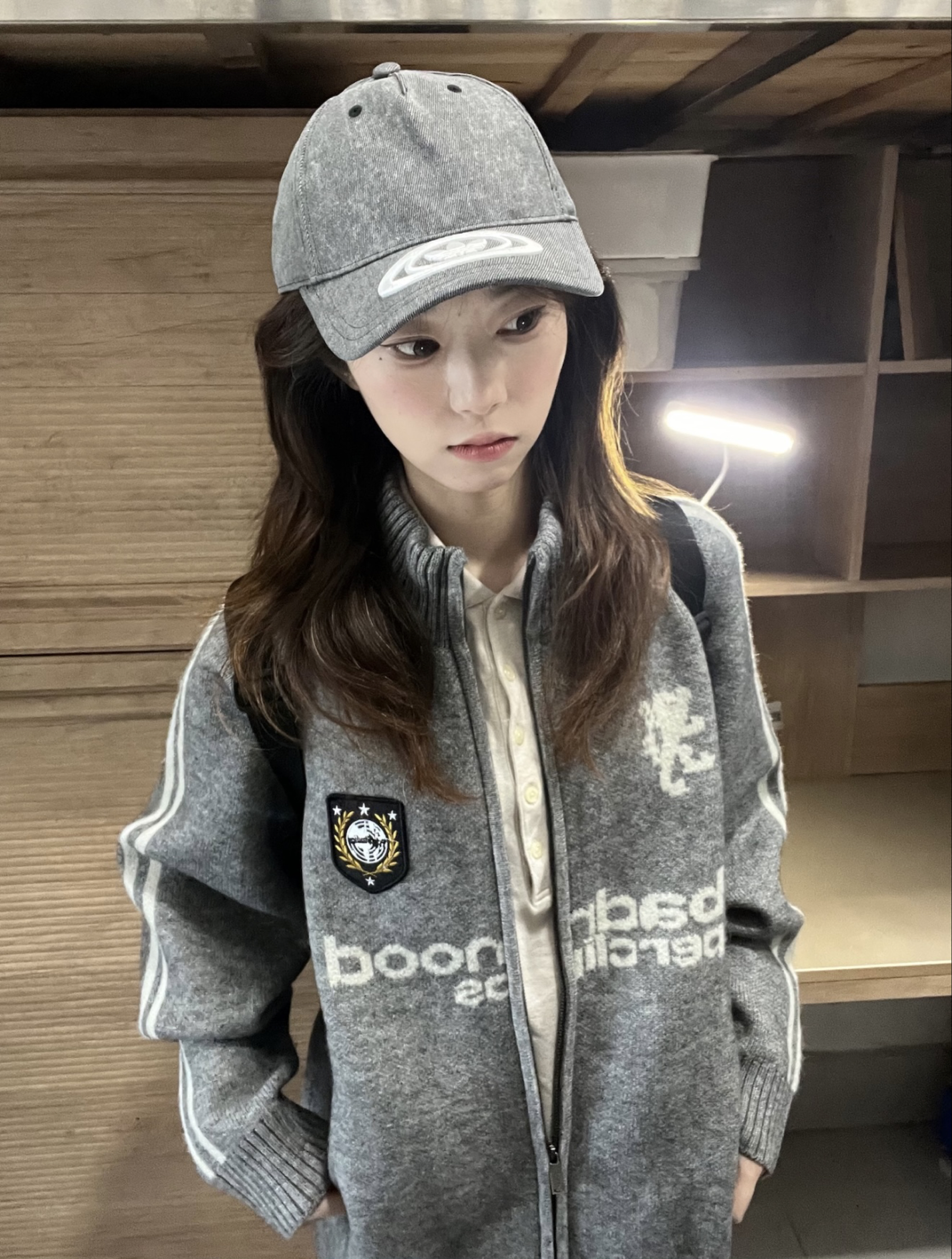 灰色针织衫尊嘟好有学院风的感觉呀 衣衣hin厚实~里面内搭几件阔以过冬啦 弹力也嘎嘎滴宽松滴尊嘟藏肉捏 搭配灰色阿迪🧢韩韩滴! ##秋冬穿搭#宝藏卫衣#潮流club##卫衣ootd