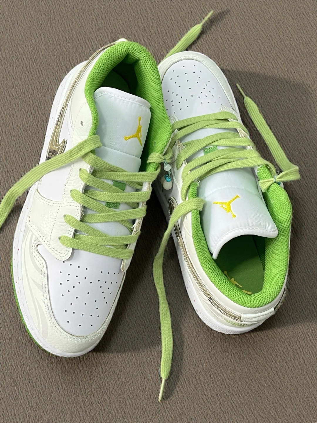 每次上脚都觉得整个人都清爽了。鞋面是那种带点细腻纹理的白色网布,配上饱和度刚好的草木绿,实物比图片更有层次感。最惊喜的是鞋舌的亮黄色小标,提亮了整体,我穿它逛公园 网眼透气性确实不错,春夏交接的时候穿完全不会闷脚。鞋带和鞋口内衬用了同色系的绿,侧面看线条流畅,搭配浅色袜子会更好 后跟包裹感适中,我这种瘦脚穿不会空荡荡,鞋底属于偏软弹的类型,走久了膝盖不会酸,不过如果是剧烈跑步的话,支撑性可能稍弱一...