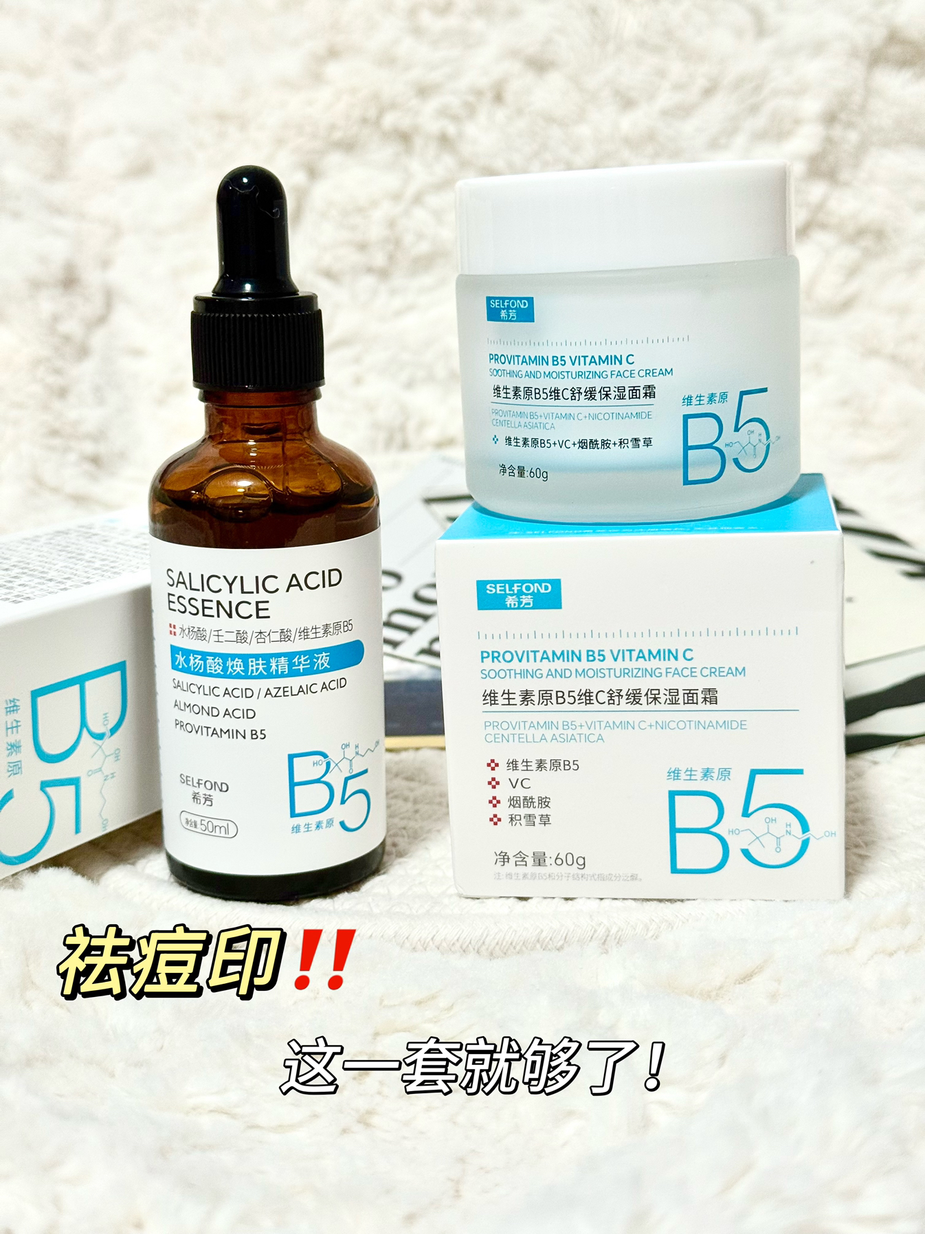 熬夜打工人的救🌟来咯!最近公司老是加班,加上姨妈期,脸上冒了好几个痘痘😭 然后我刷到有姐妹说希芳祛痘套装蛮好用的,我也买来试了试🆗买的一套是水杨酸祛痘精华➕维生素B5面霜 使用频率在开始一个星期左右的时间,因为想追求高效,早上和晚上都会用🧸 刚开始使用几天,主要点涂在痘痘上,感觉大痘痘明显就蔫巴了,消得超快!后悔以前手欠挤痘留印,后面也会全脸涂到,维稳效果很不错! 更绝的是,红黑痘印它也能淡,坚持...