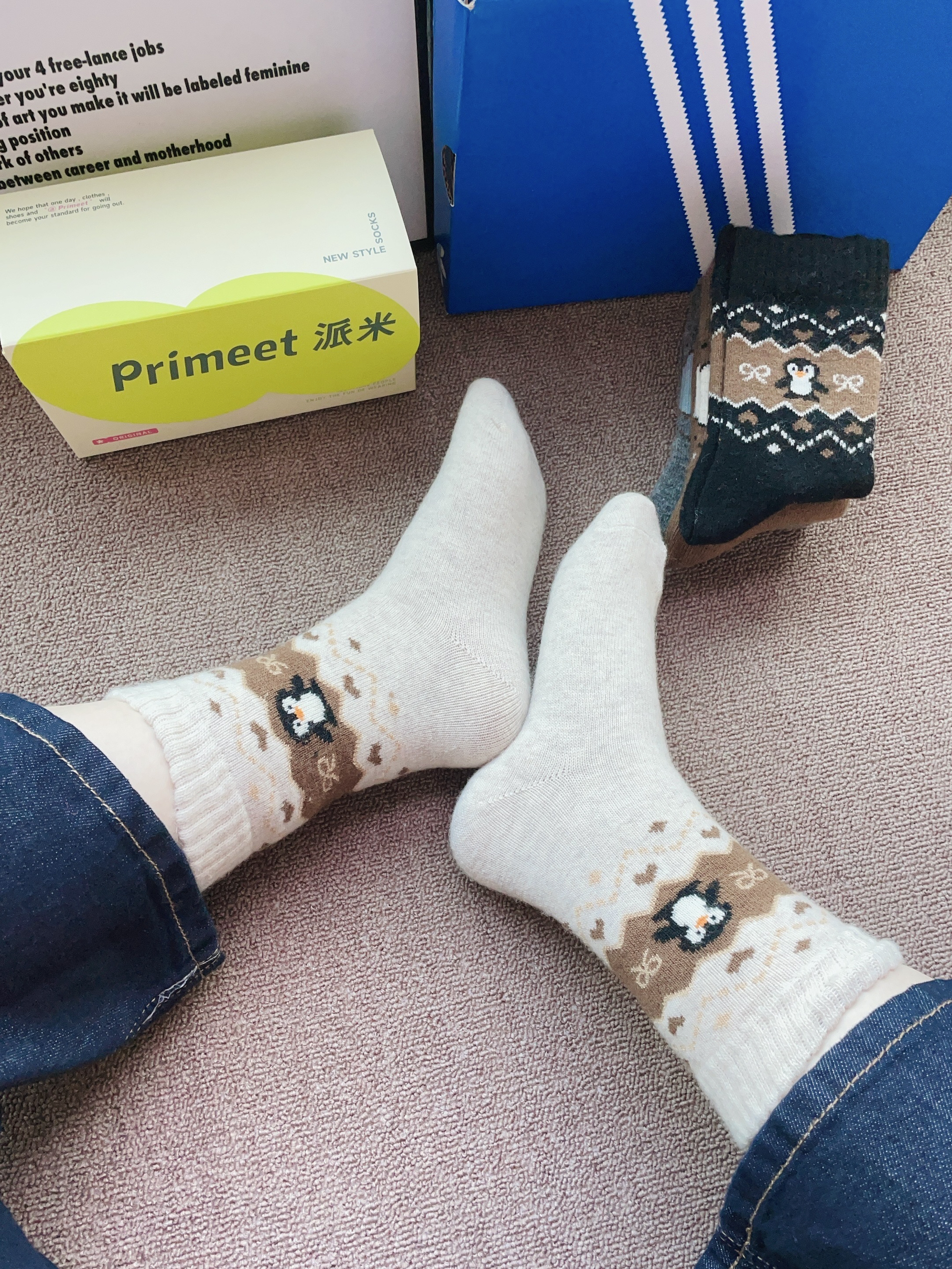 这不十月份北方比较冷了 这个时候已经渐渐入冬啦 当然要准备好新的袜子穿咯 派米这款袜子配色蛮好看的 我摸着面料软fu又厚实 细节做的感觉蛮好的 不会有多余线头 上脚穿我觉得舒服又hin暖和也不会勒脚 秋冬天随便搭板鞋都可以