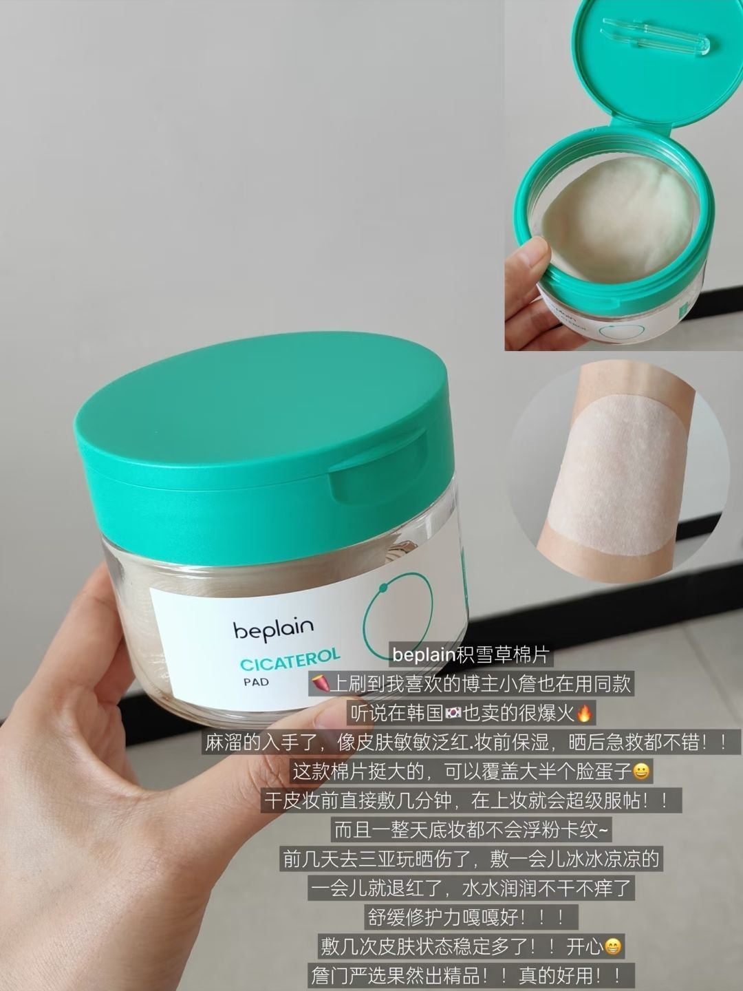 本篇笔记关联了beplain 积雪草淄醇净透舒缓棉片 痘肌敏肌退红 深层舒缓等商品,为用户提供真实的使用体验和购买参考。