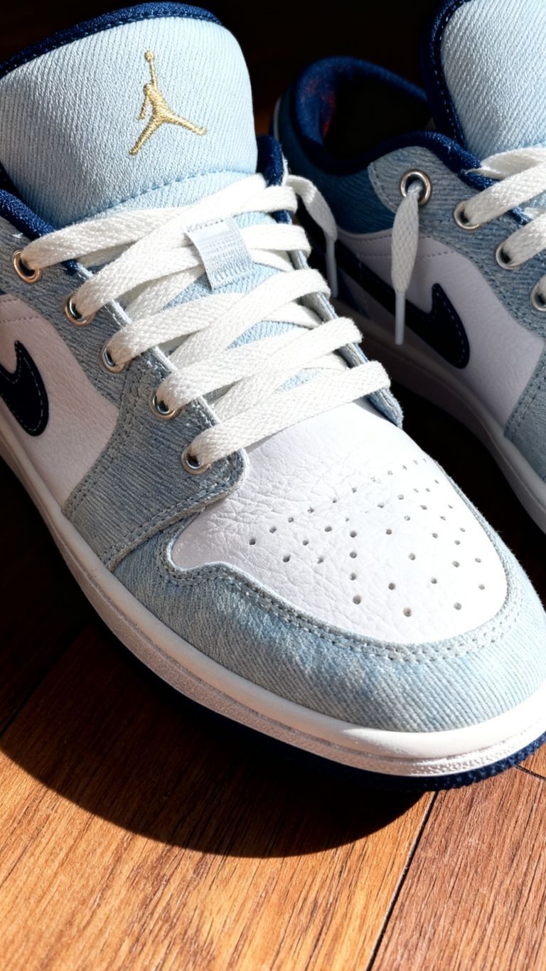 宝子们!这双AJ1 Low SE白蓝牛仔款真的是男女同款宝藏鞋鞋✨ 男生穿潮酷随性,女生穿甜飒又显腿长~ 牛仔布拼接复古感拉满,不管是配情侣装、闺蜜装还是兄弟装都很绝😎 上脚舒服还防滑,日常出街、约会、打球都能hold住,快拉上你的他/她/闺蜜兄弟一起冲,做街上最吸睛的搭配组合呀~